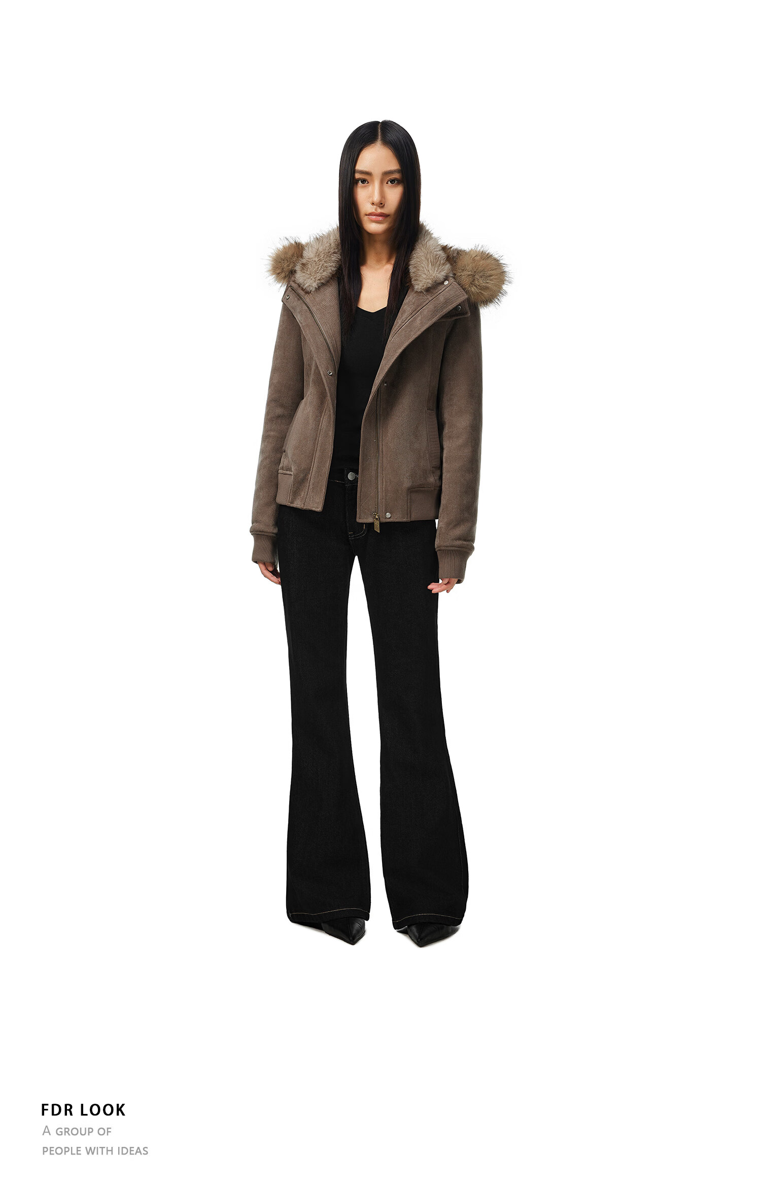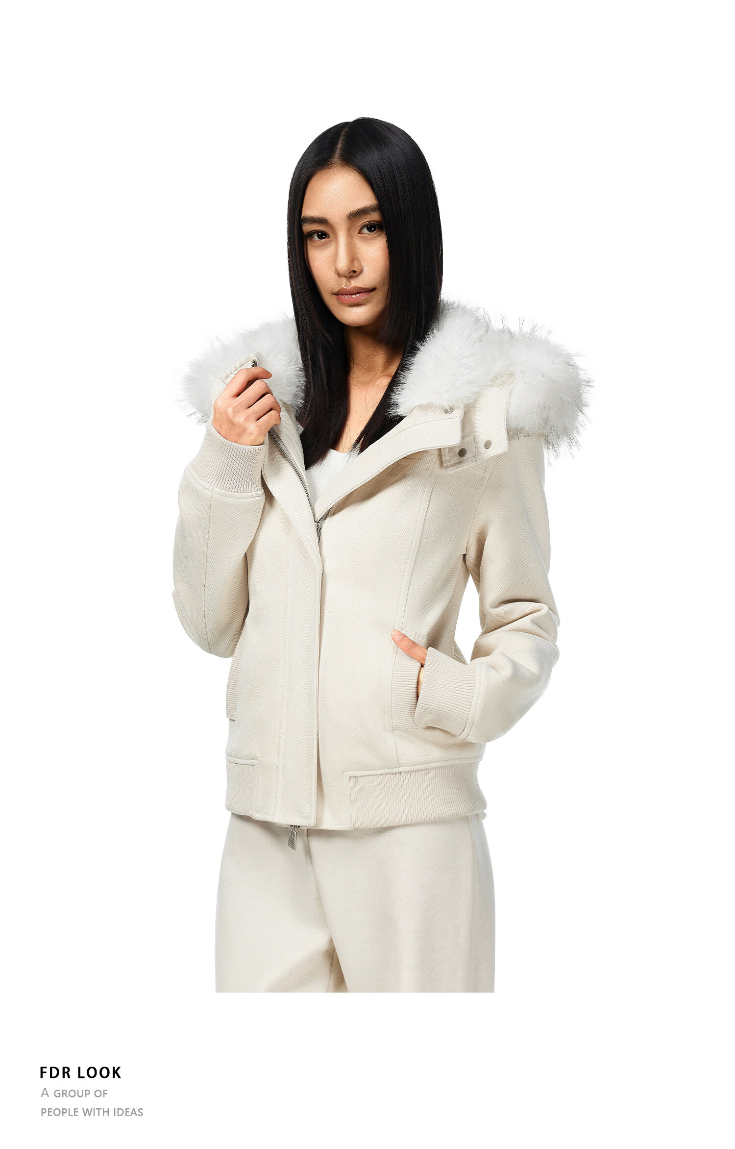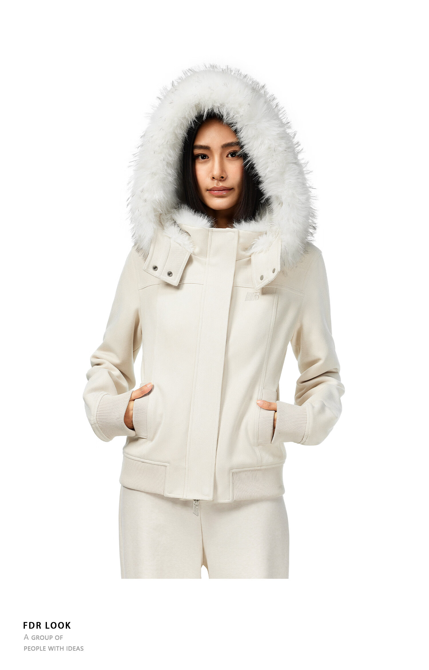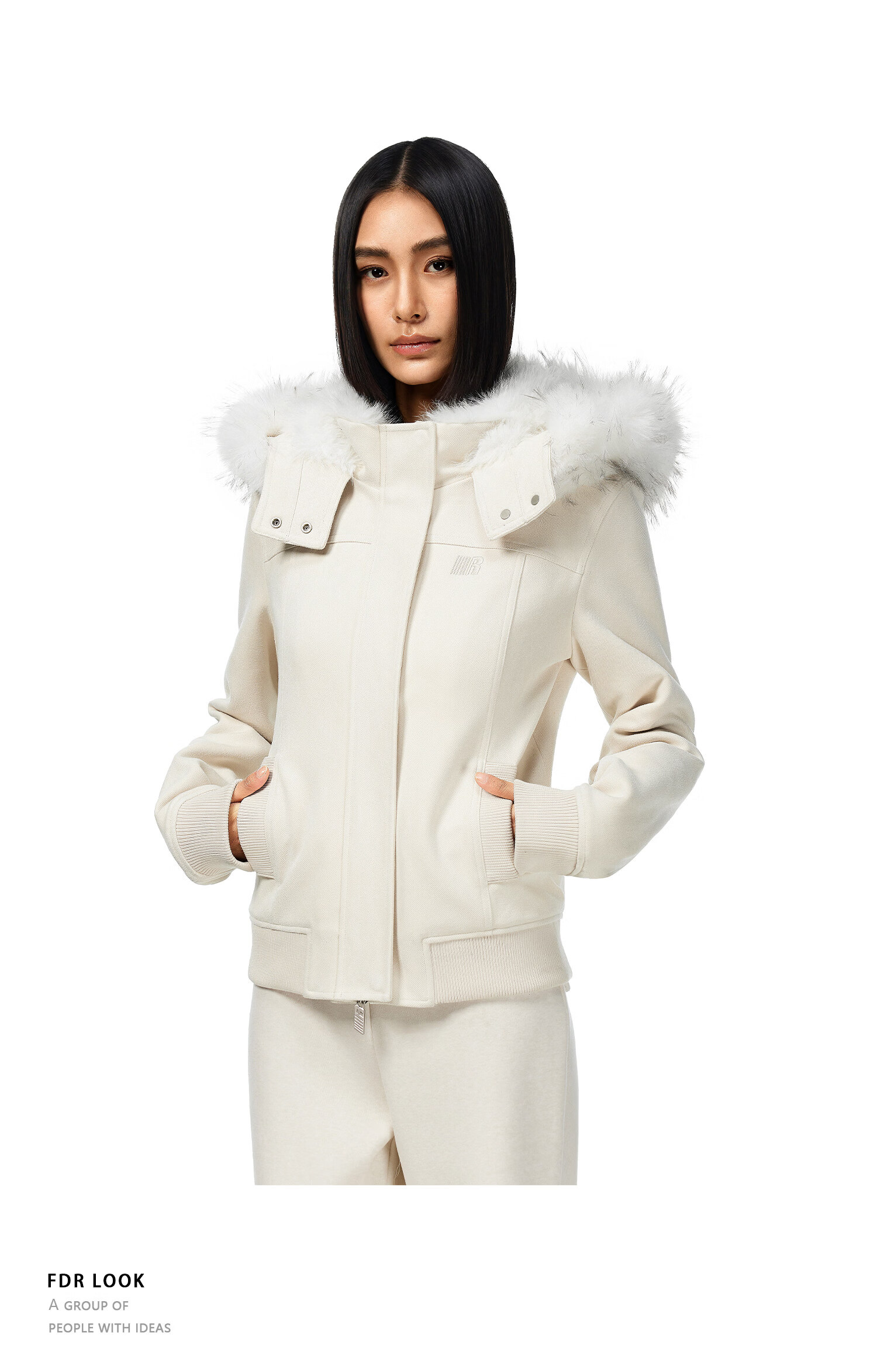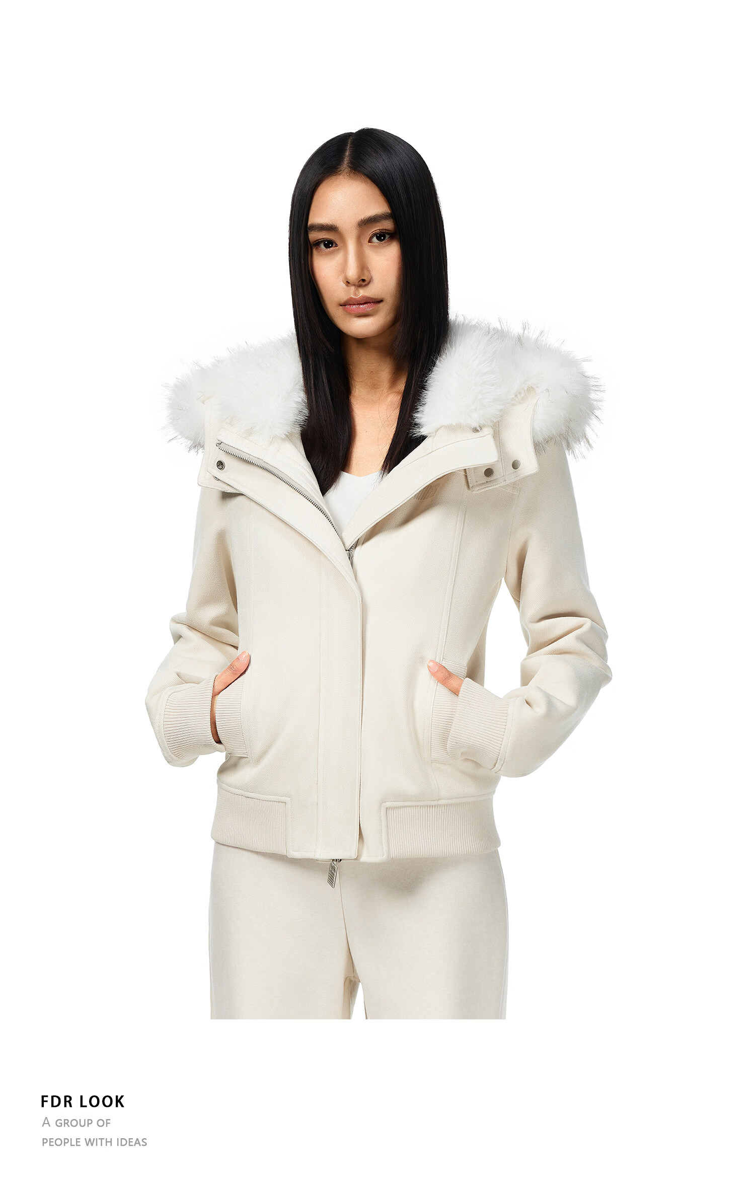 FDR flagship store Fiona Slim Short Fur Collar Jacket 2025 New High-end Jacket Women's Autumn and Winter Beige S