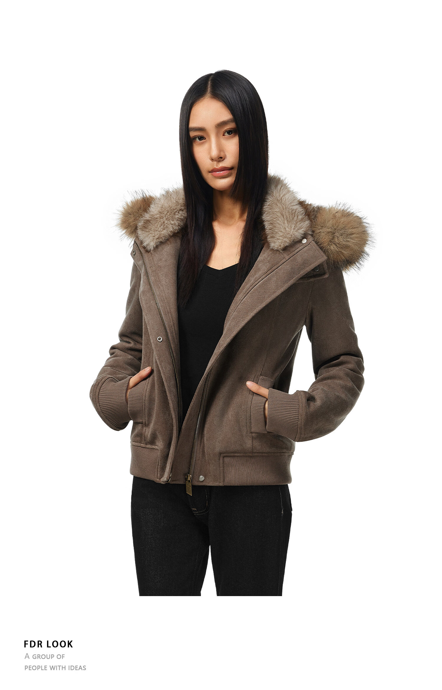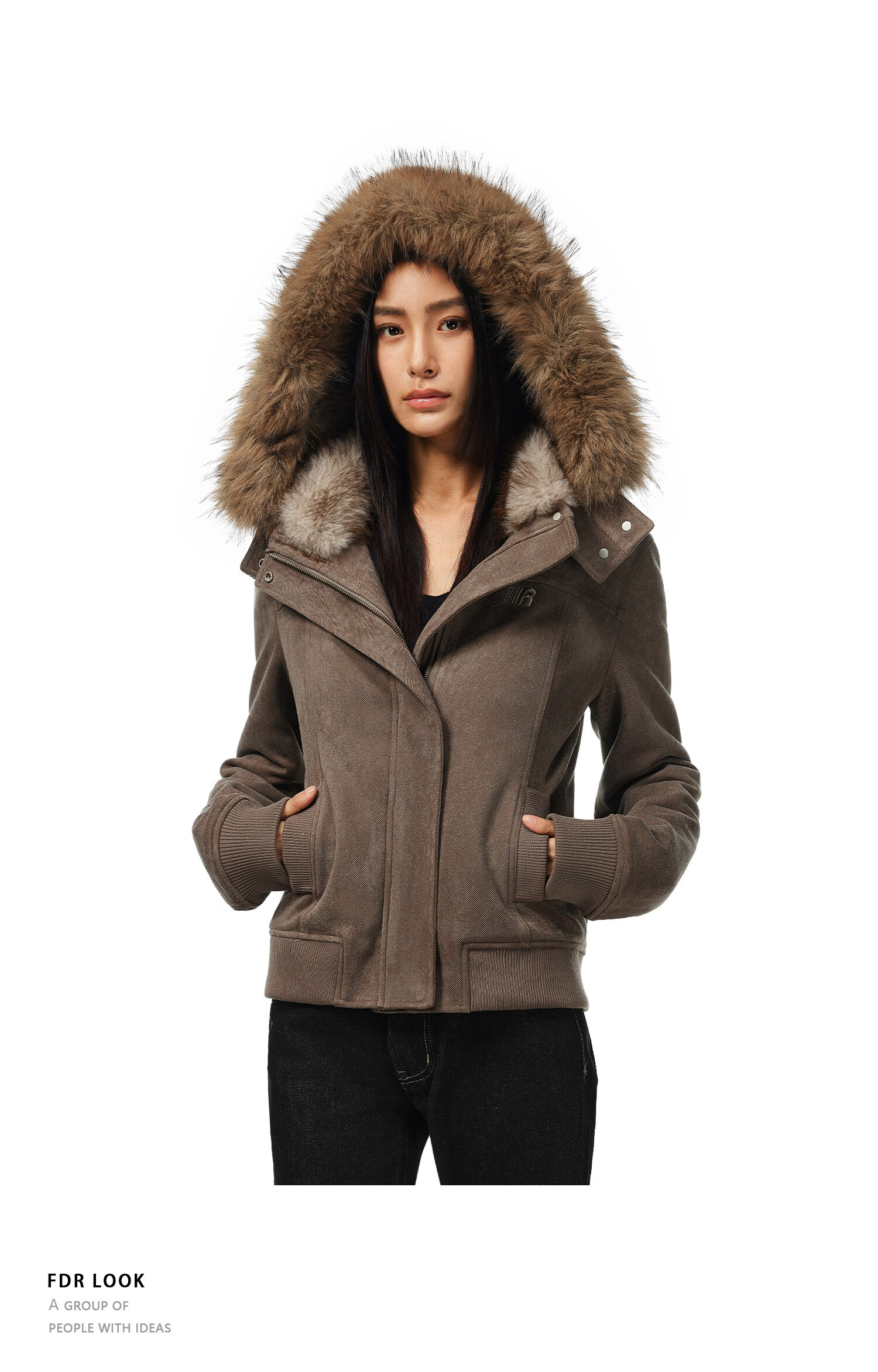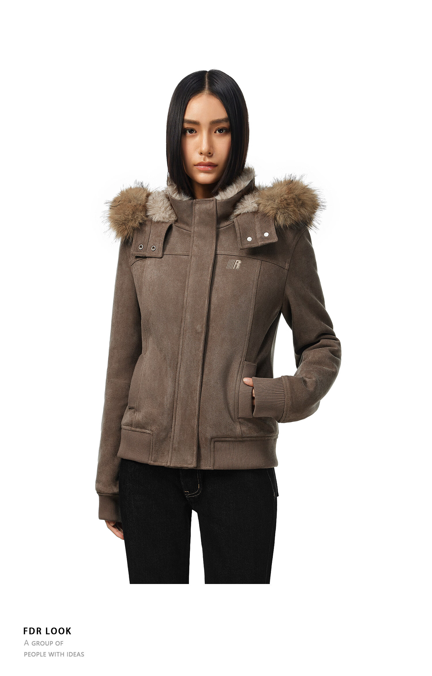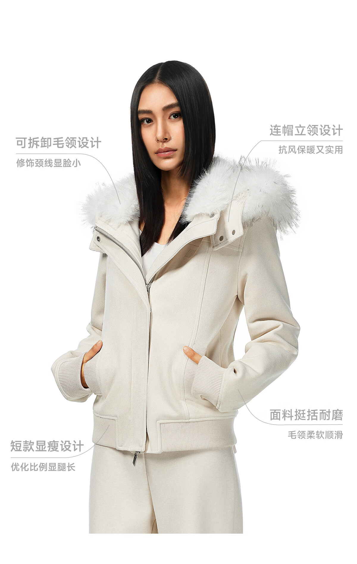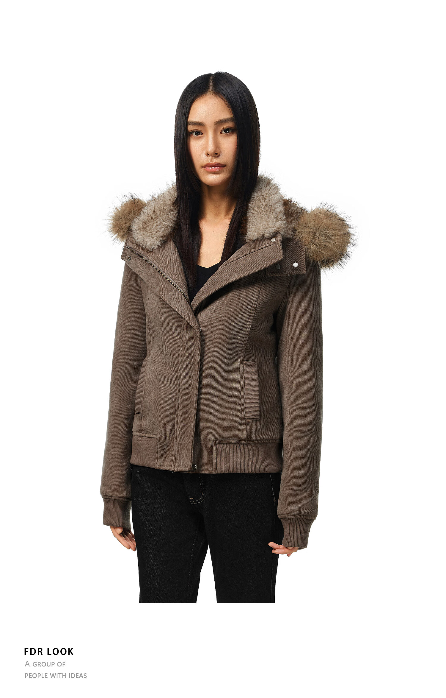 FDR flagship store Fiona Slim Short Fur Collar Jacket 2025 New High-end Jacket Women's Autumn and Winter Beige S