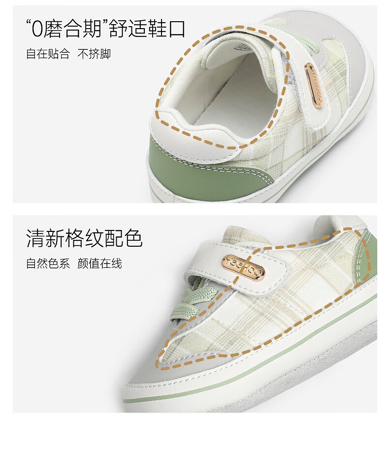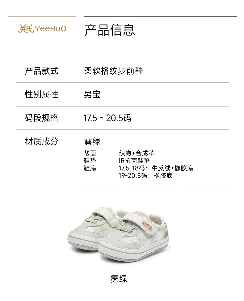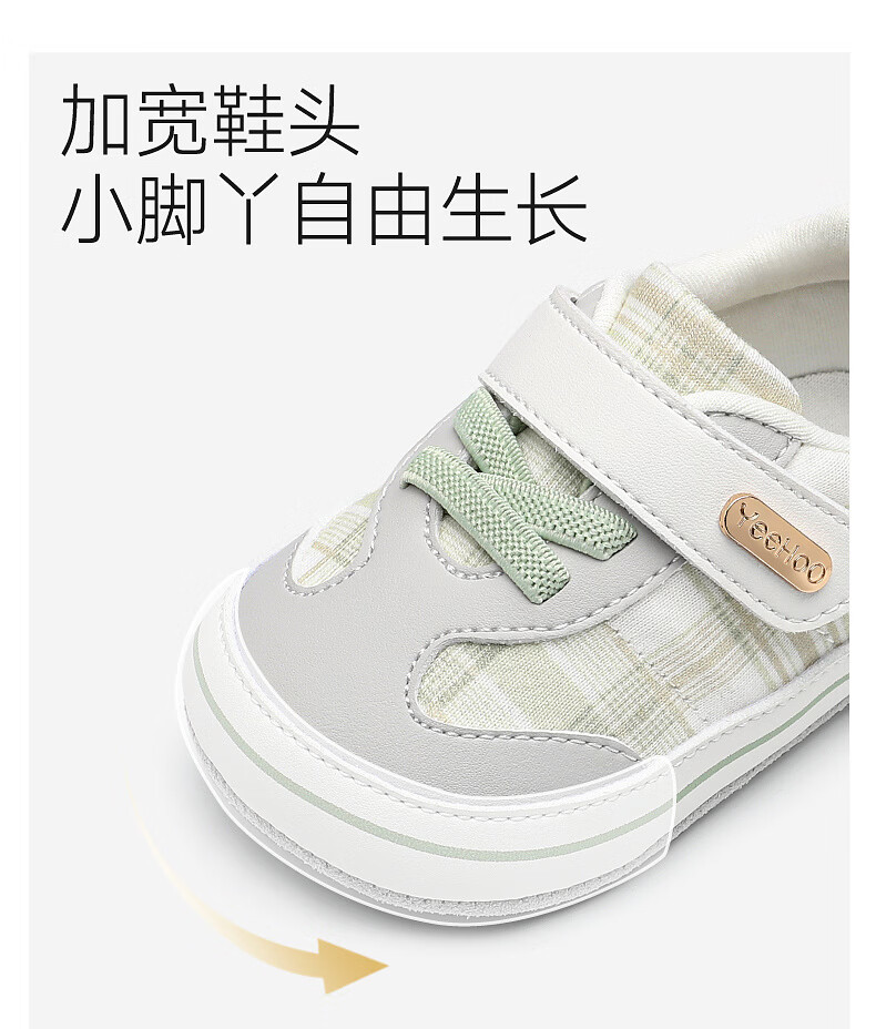YEEHOO shopping mall same style baby boy soft-soled casual shoes plaid spring and autumn new toddler shoes versatile matt green 18 inner length 11.2/foot length 10-11