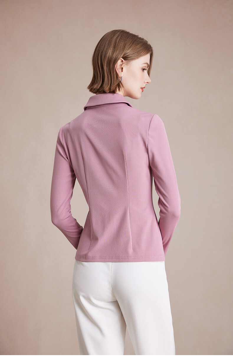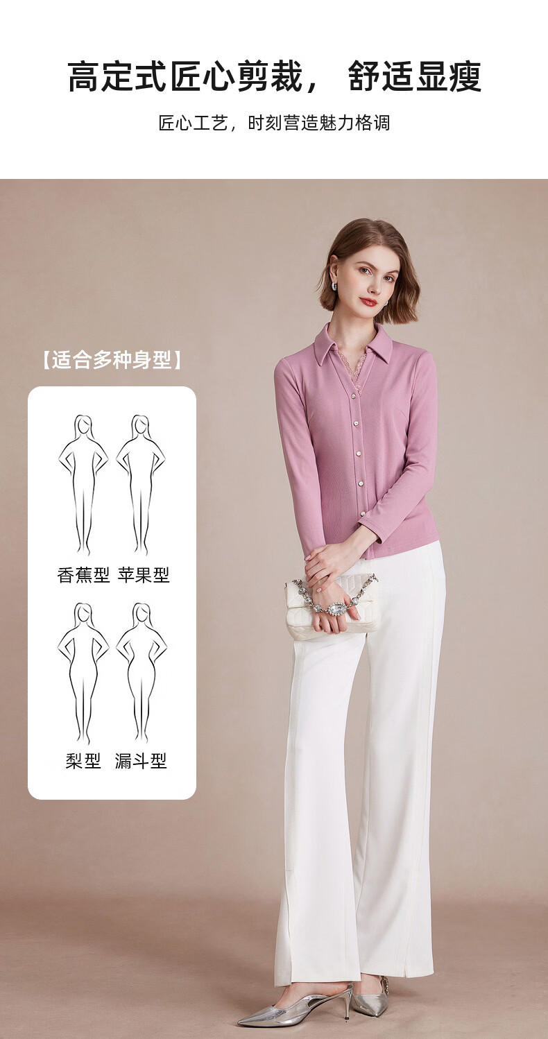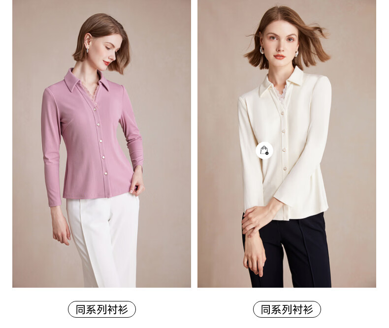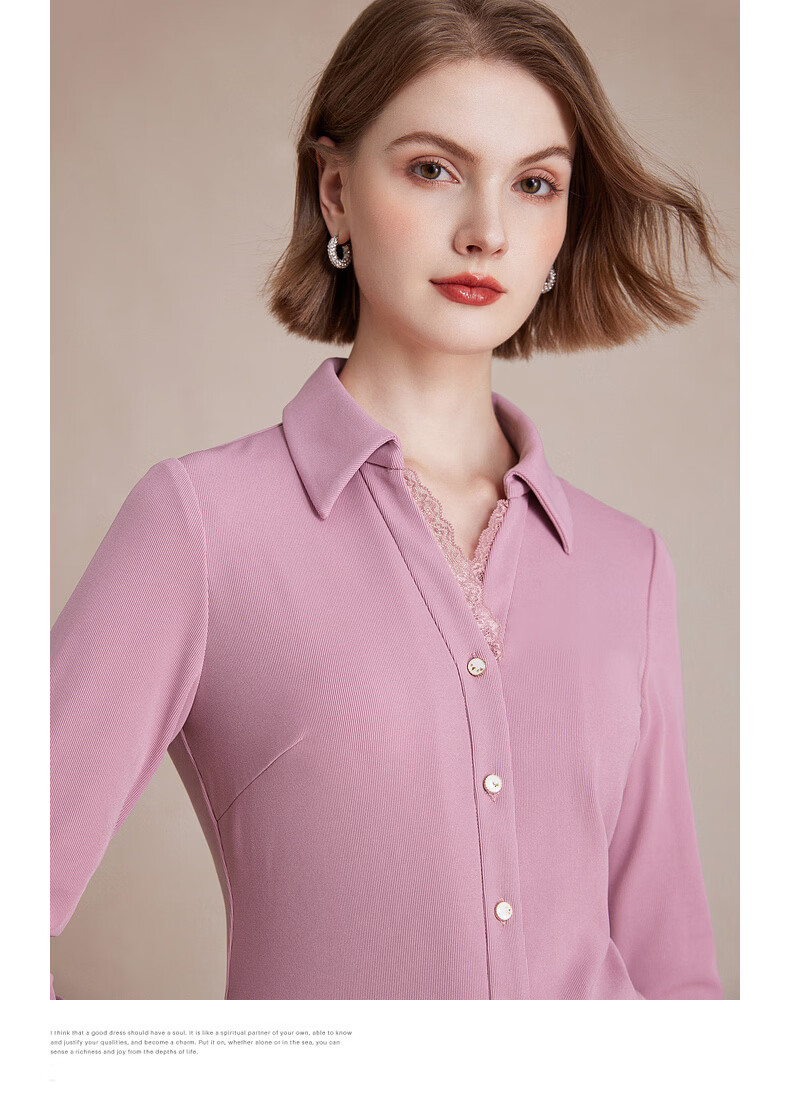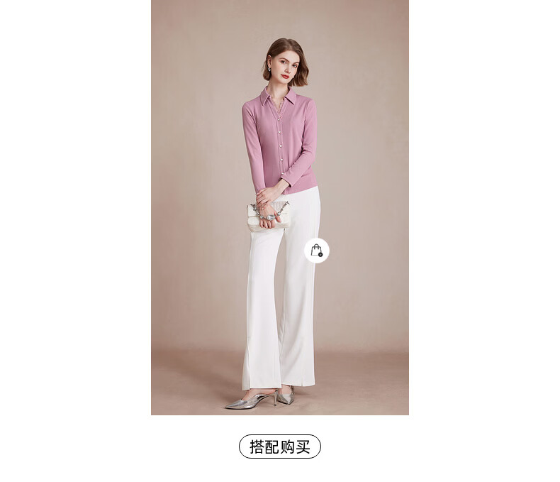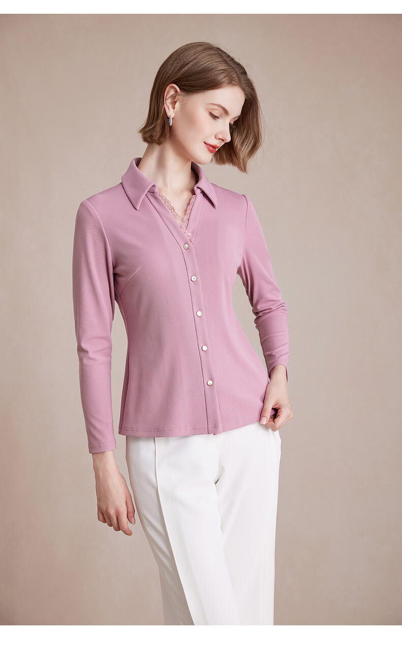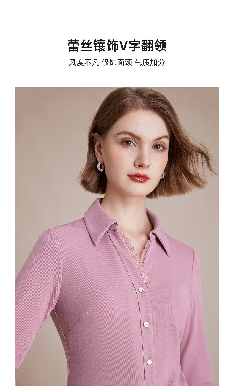 MORELINE Mulan French Elegant V-neck Long Sleeve Shirt Women's 2026 Spring New Simple Age-Reducing Slimming Shirt Mousse Lotus Root Powder M