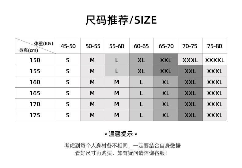 China (cm) 160-165/84-86 165-170 / 88-90 167-172 / 92-96 168-173 / 98-102 170-176 / 106-110