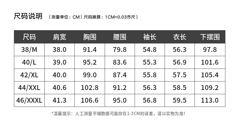 China (cm) 165 / 88-90 170 / 96-98 175 / 108-110 180 / 118-122 185 / 126-130