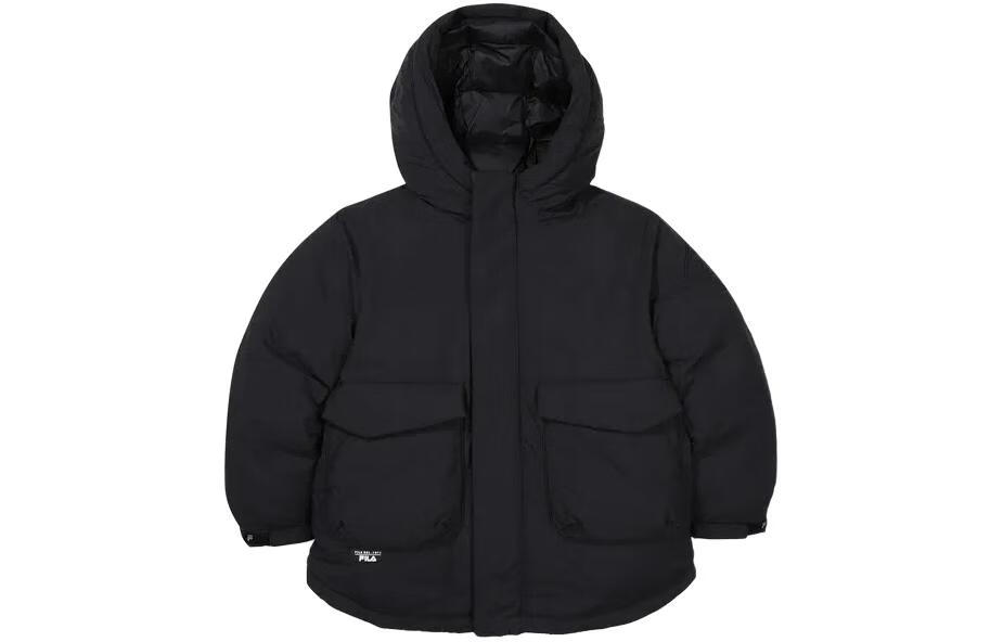 FILA Logo letter printed solid color hooded jacket, black children's style, black 145, about 20 days