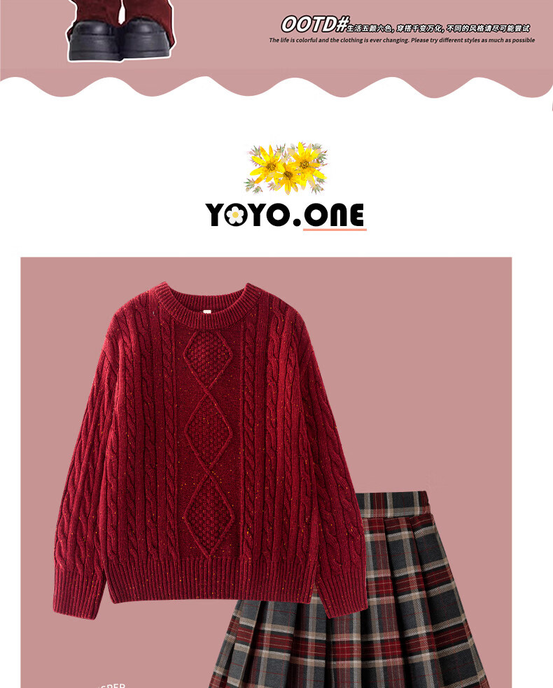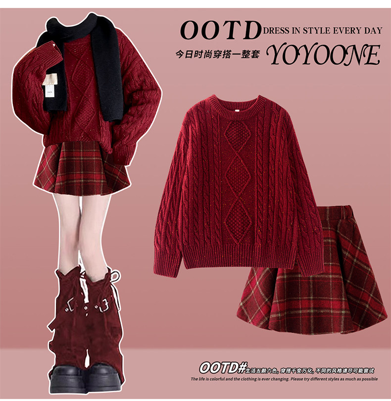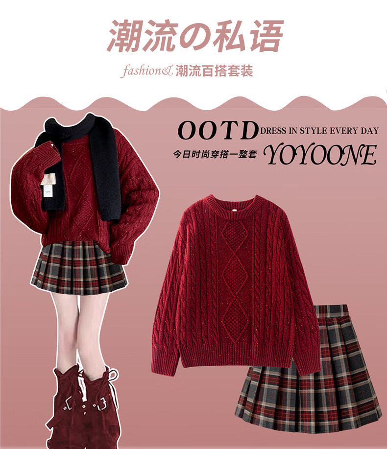 Yoyo one New Year's greetings girl's winter suit children's 2025 New Year's clothes autumn and winter sweater red dress Christmas 19741 red + 4512 red not including scarf 170 cm