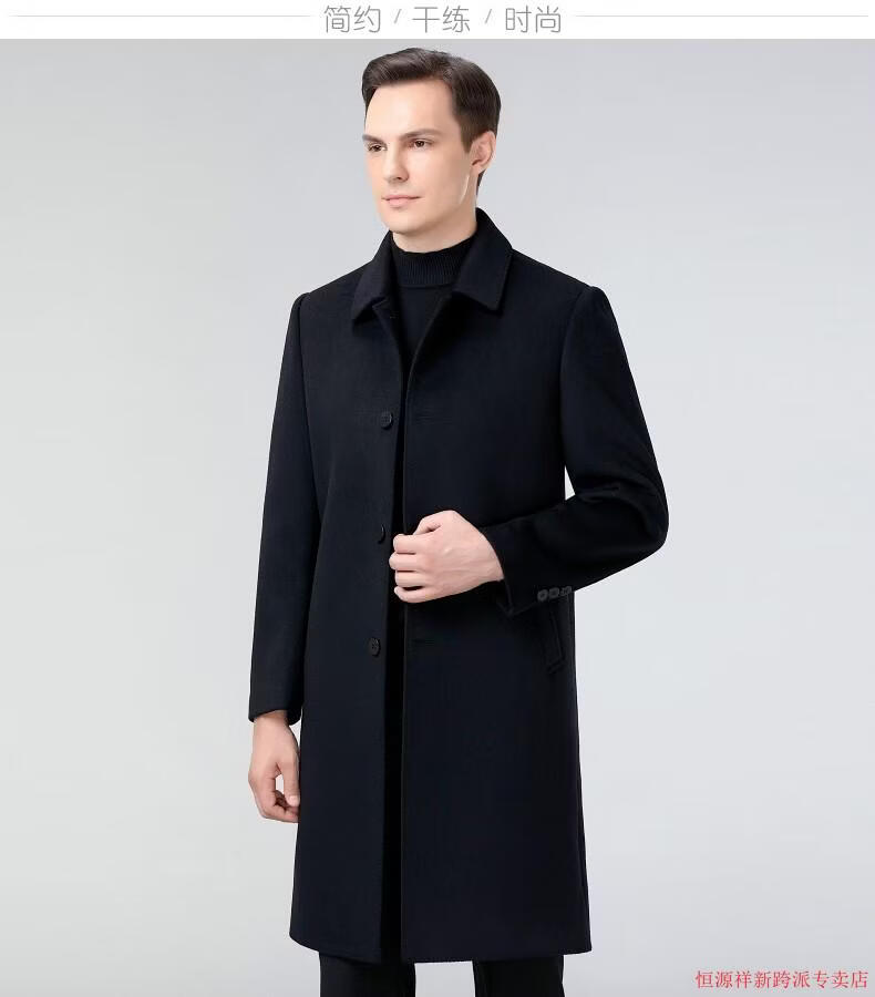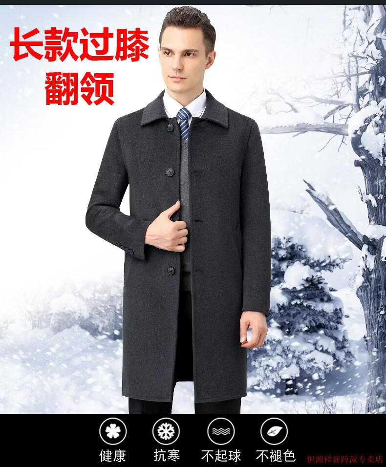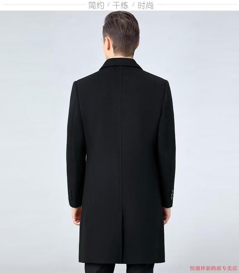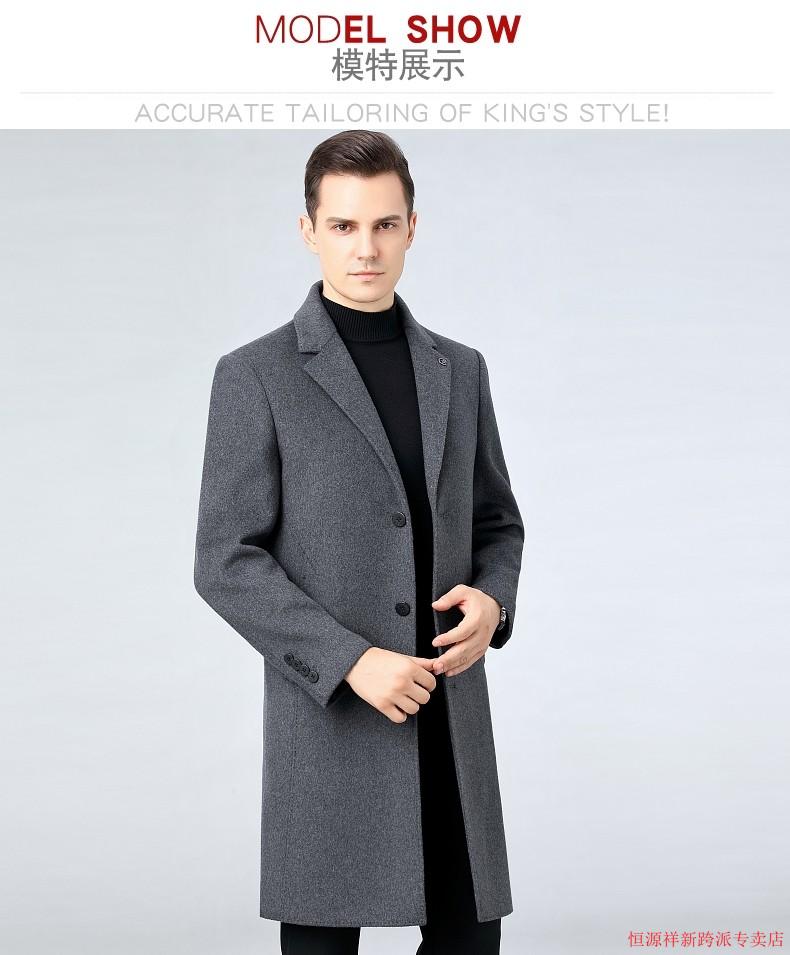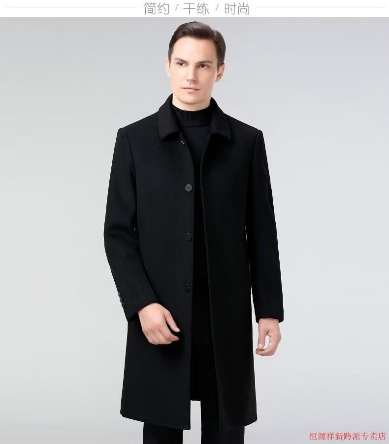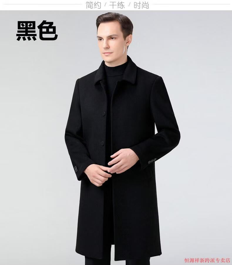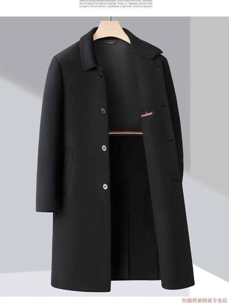 Hengyuanxiang double-sided wool coat for middle-aged men, mid-length, over the knee, middle-aged and elderly wool wool dad thickened coat, black (medium-length suit collar) L 175