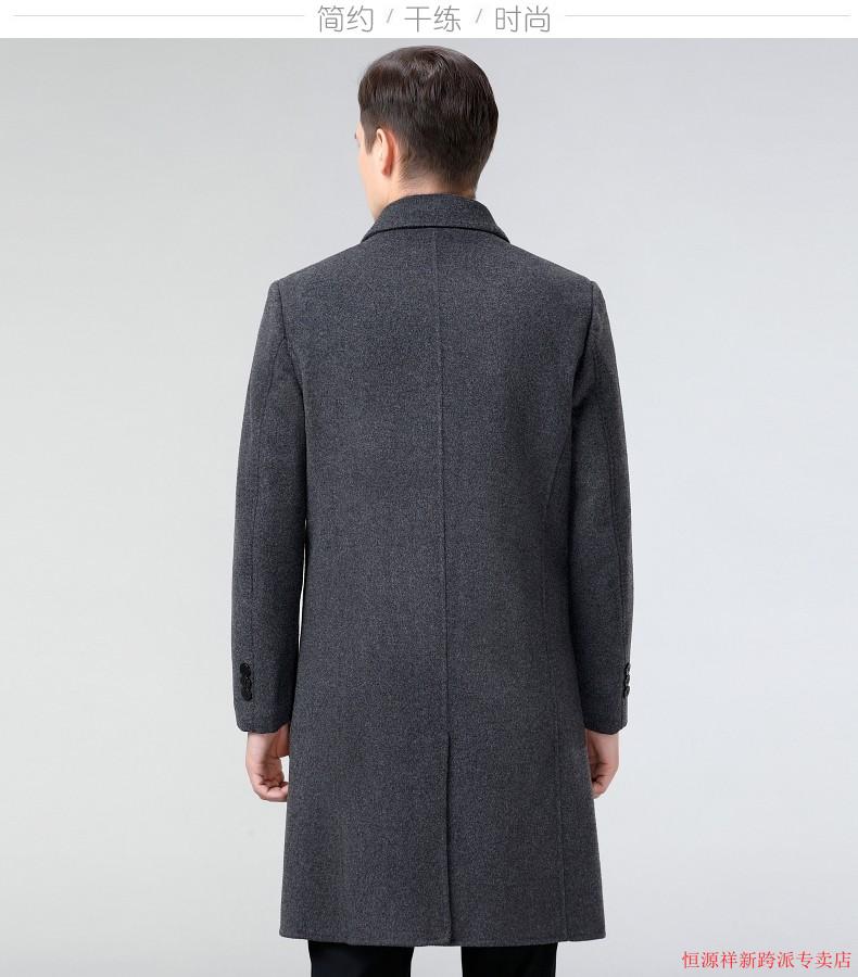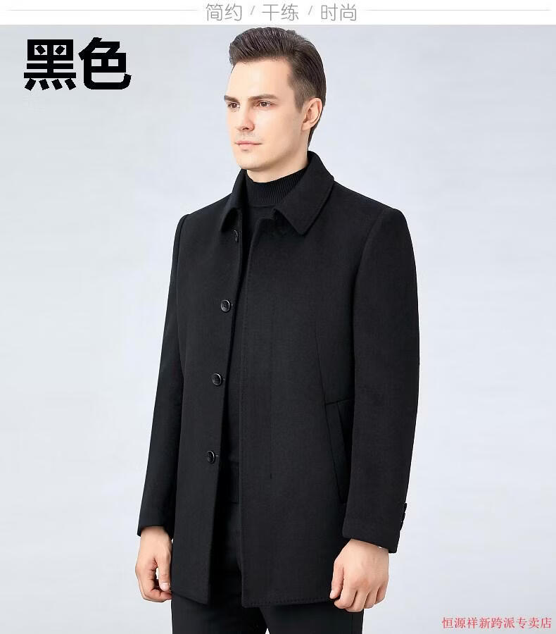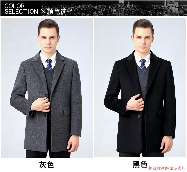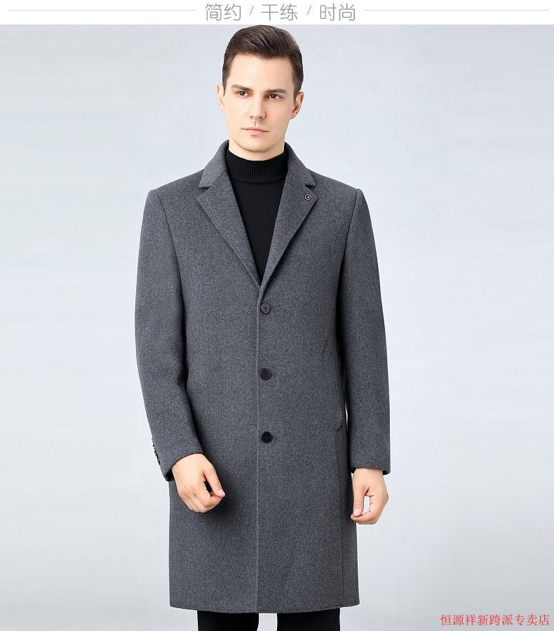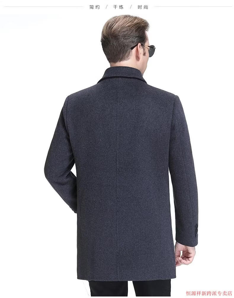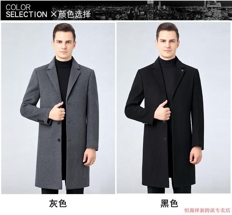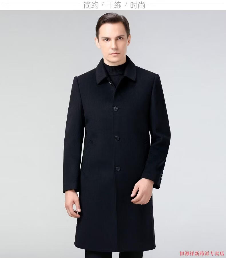 Hengyuanxiang double-sided wool coat for middle-aged men, mid-length, over the knee, middle-aged and elderly wool wool dad thickened coat, black (medium-length suit collar) L 175