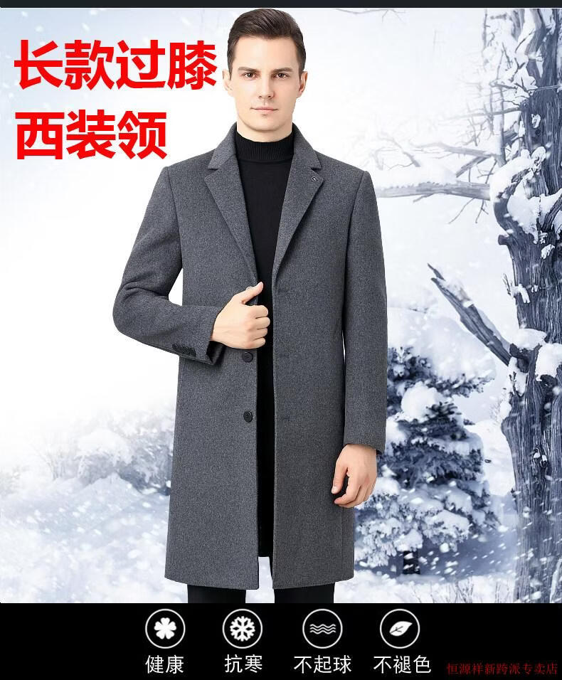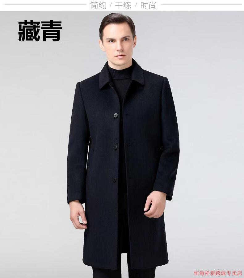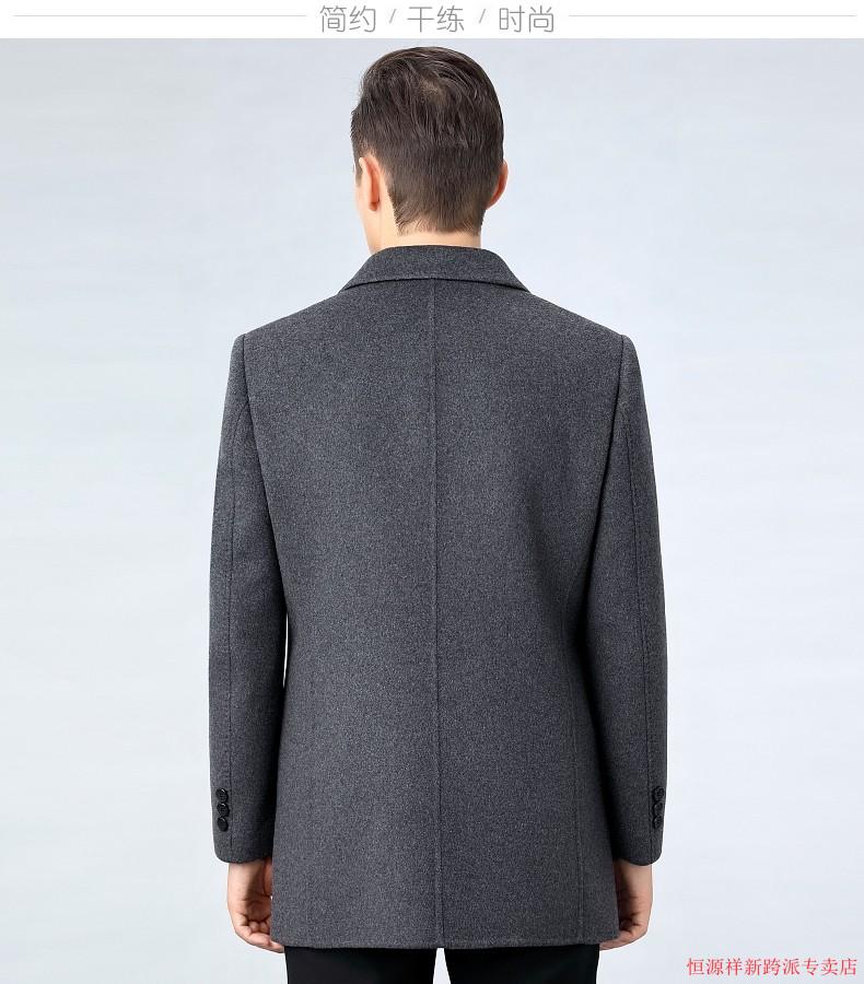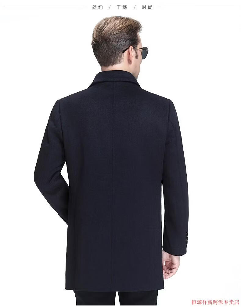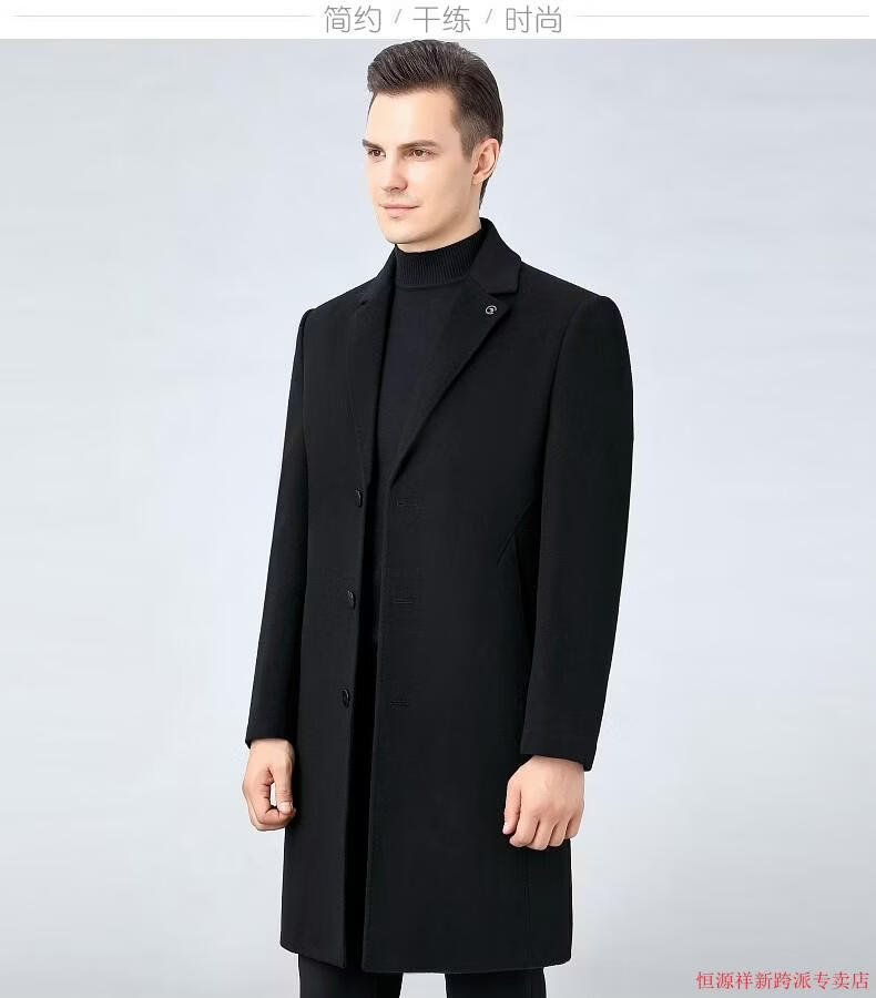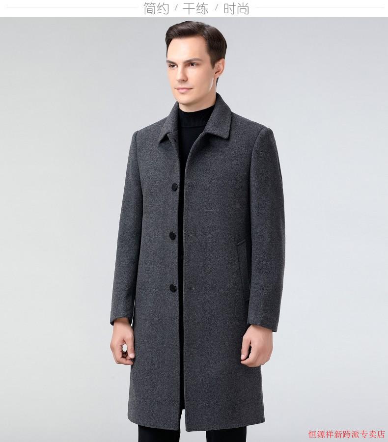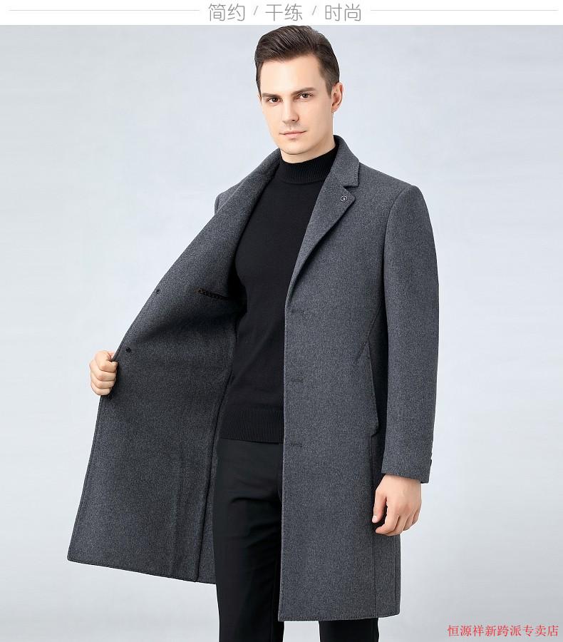 Hengyuanxiang double-sided wool coat for middle-aged men, mid-length, over the knee, middle-aged and elderly wool wool dad thickened coat, black (medium-length suit collar) L 175