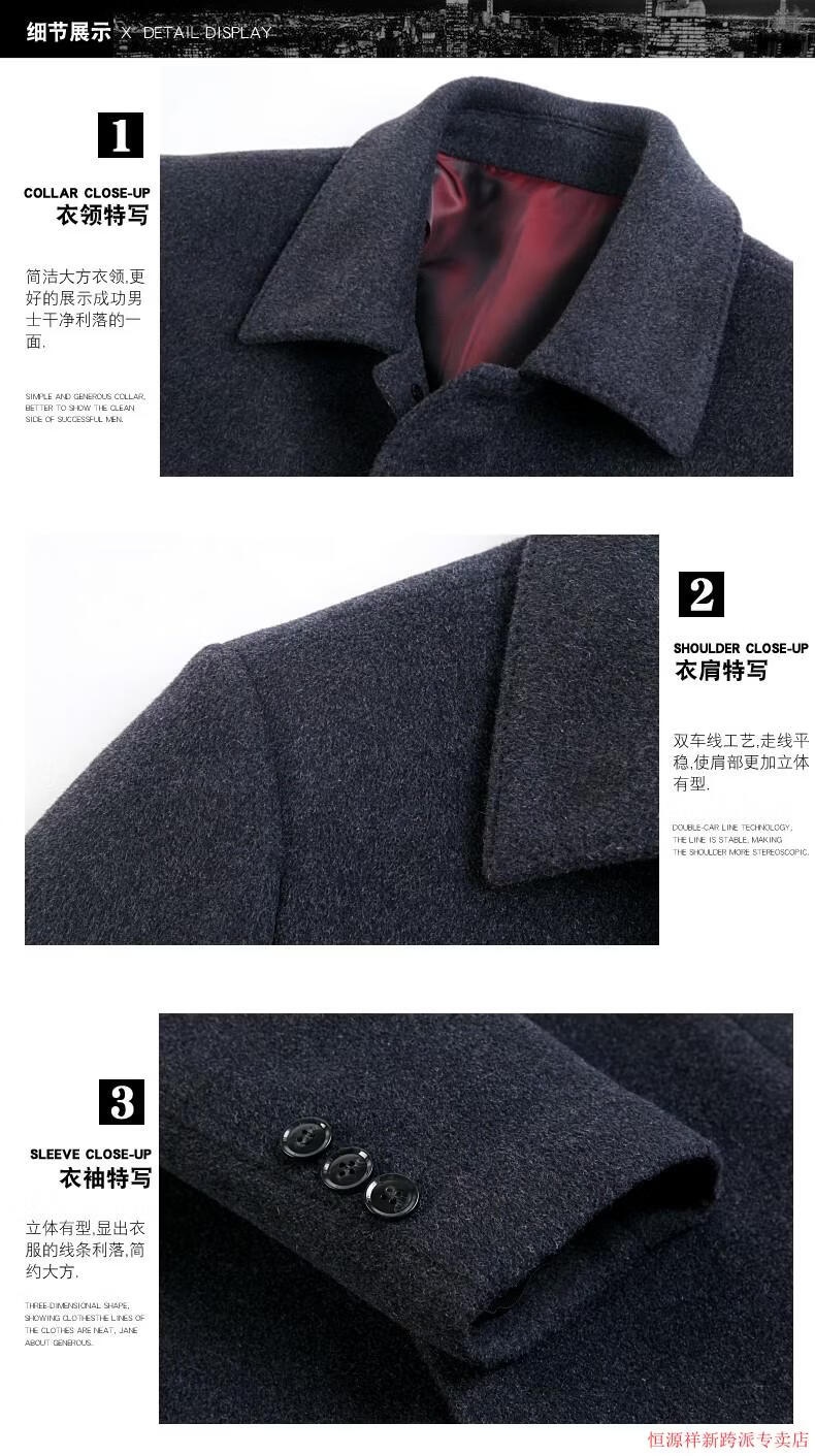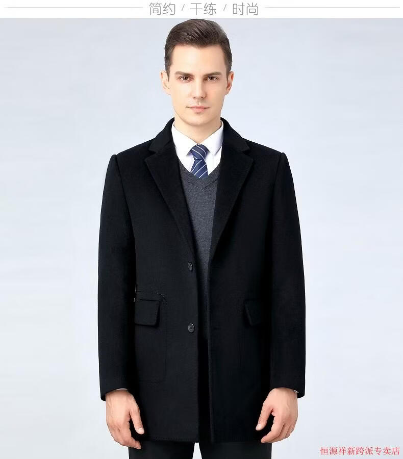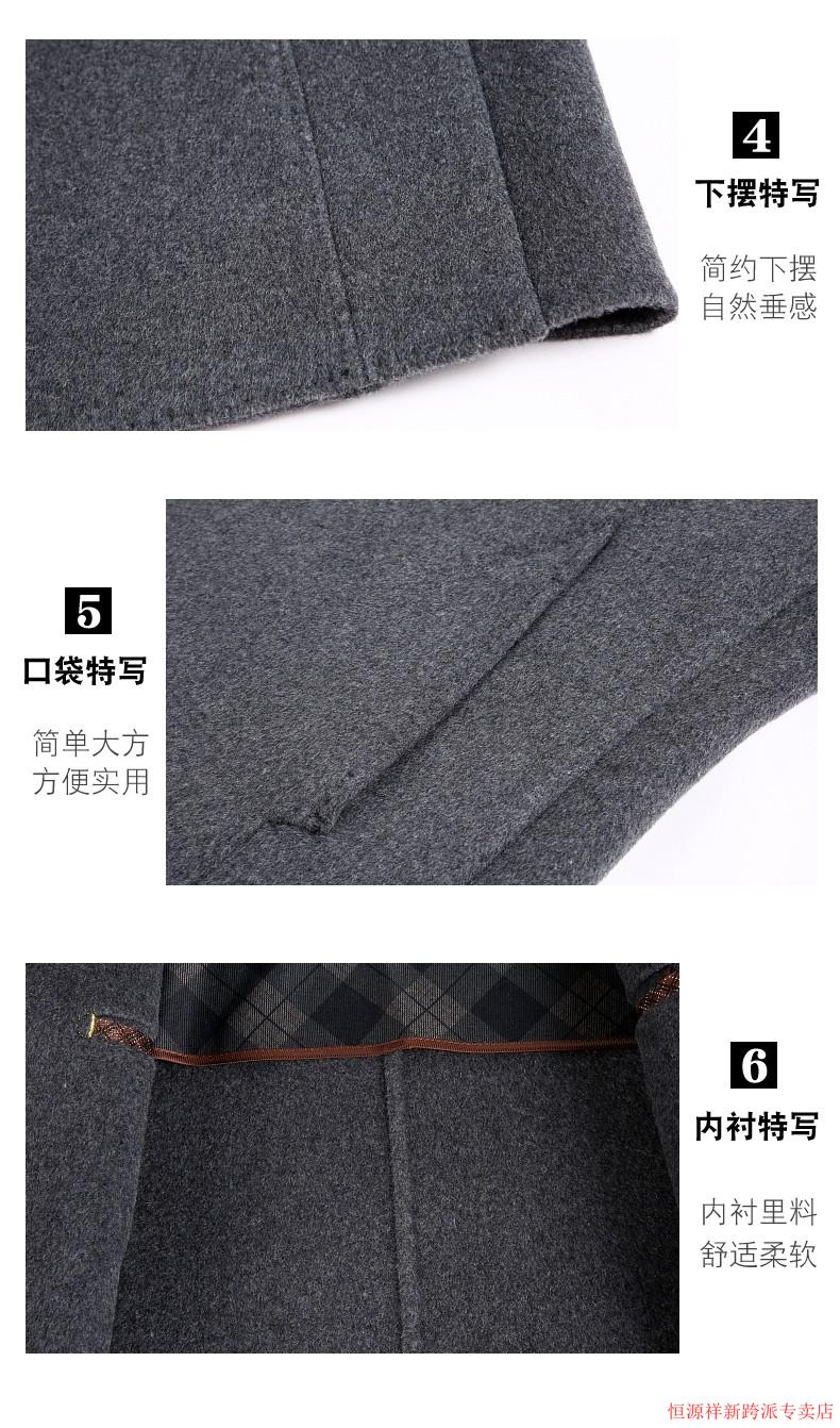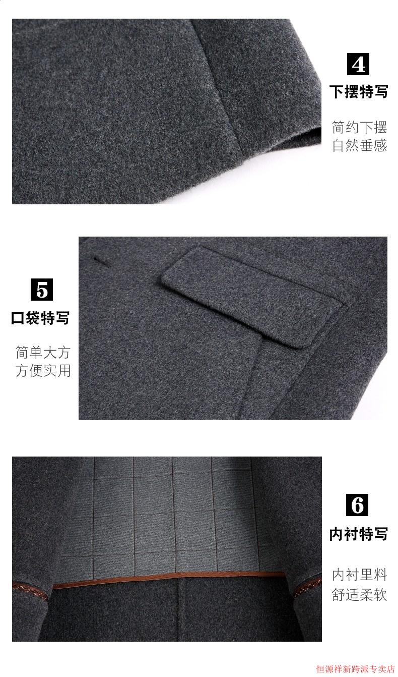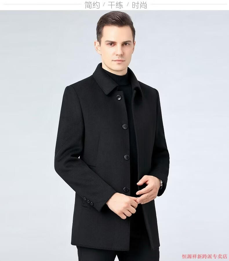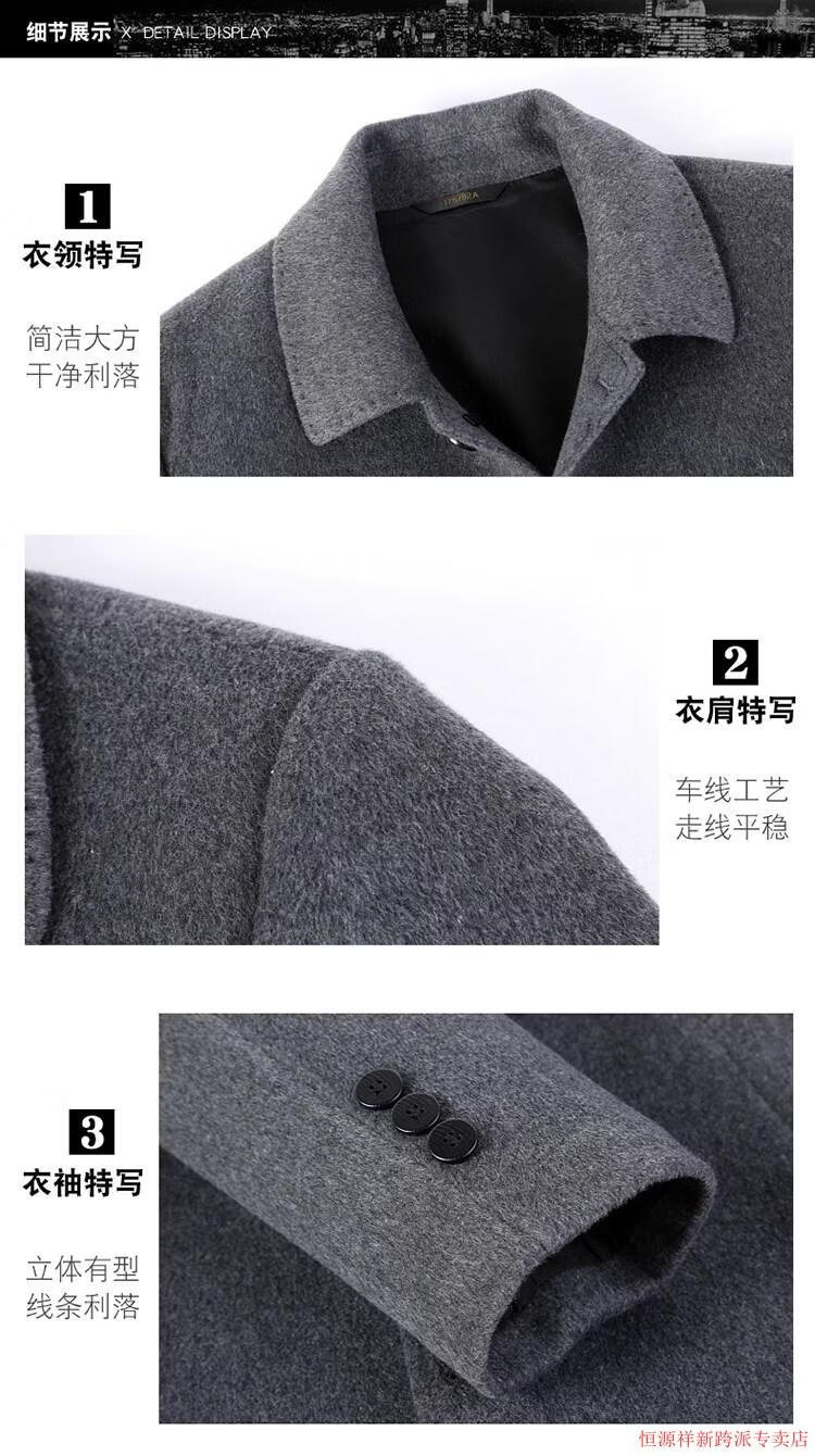 Hengyuanxiang double-sided wool coat for middle-aged men, mid-length, over the knee, middle-aged and elderly wool wool dad thickened coat, black (medium-length suit collar) L 175