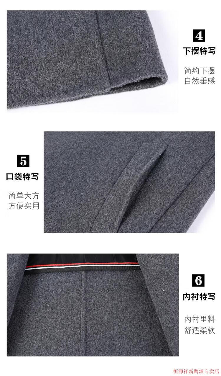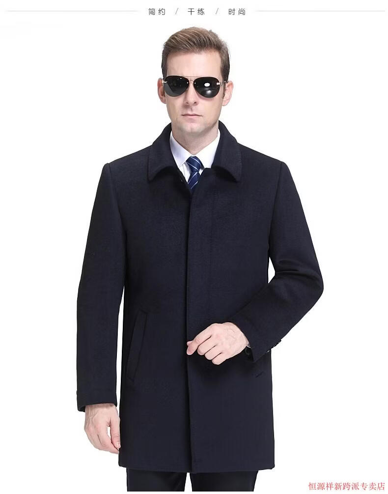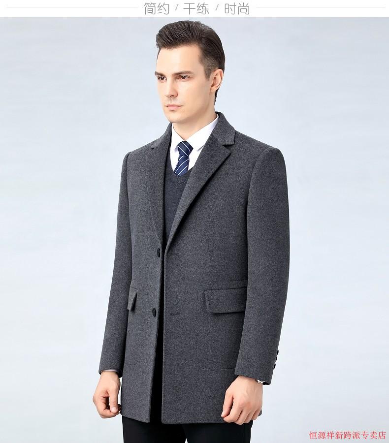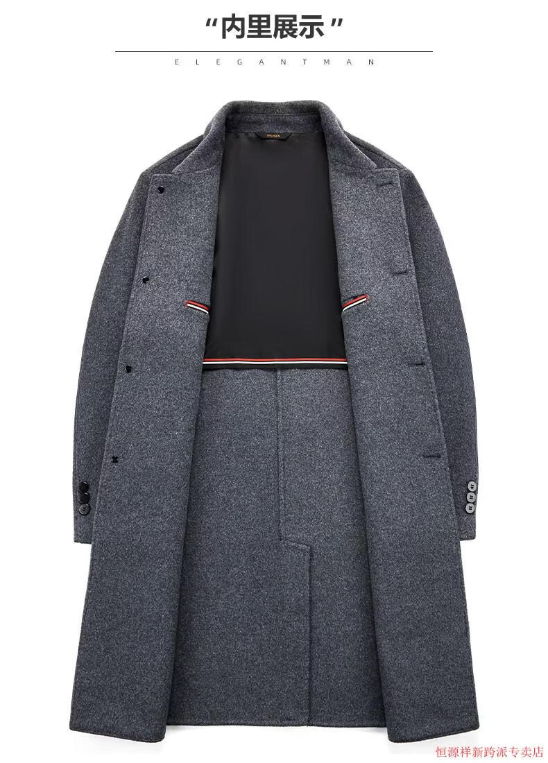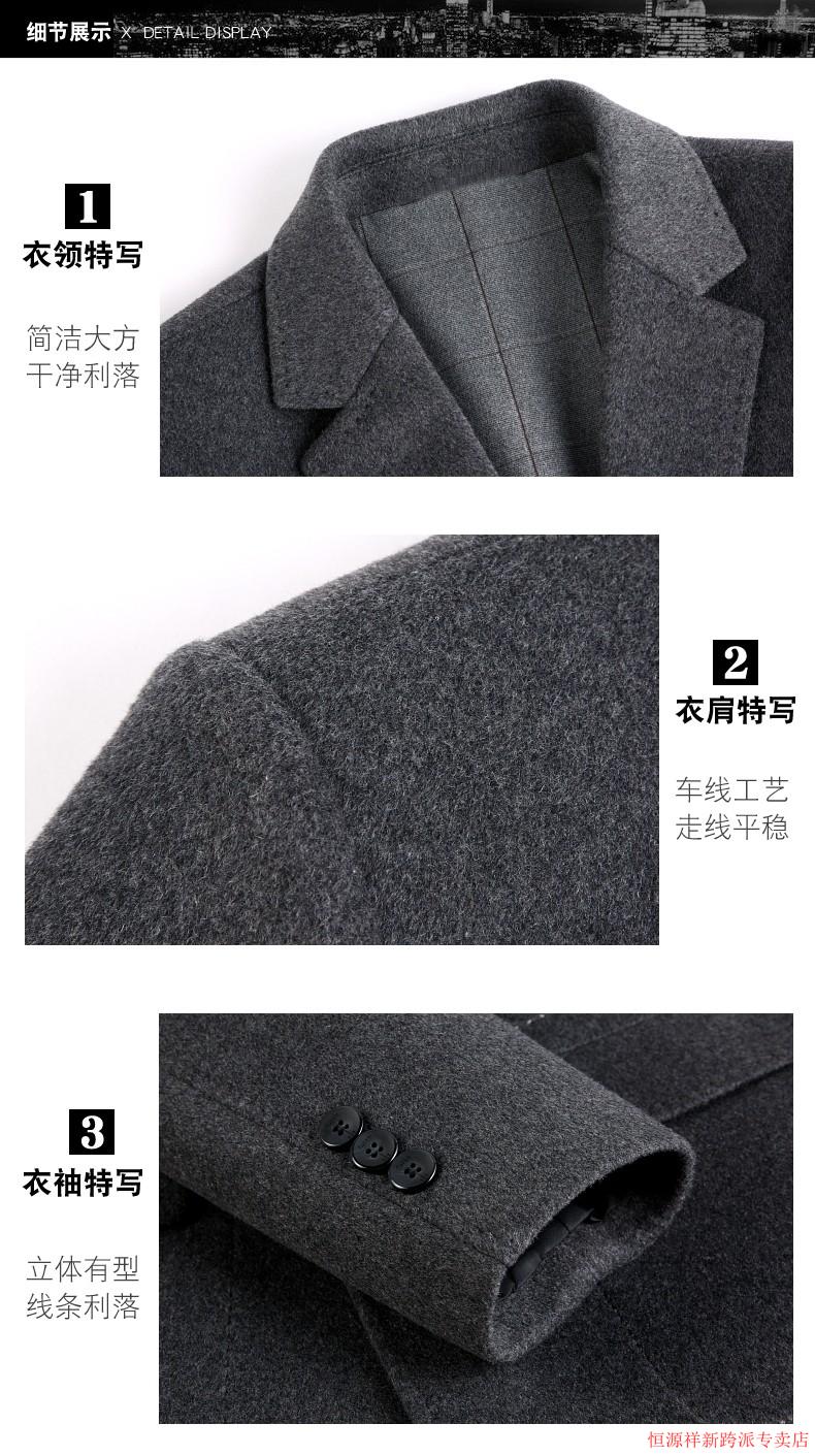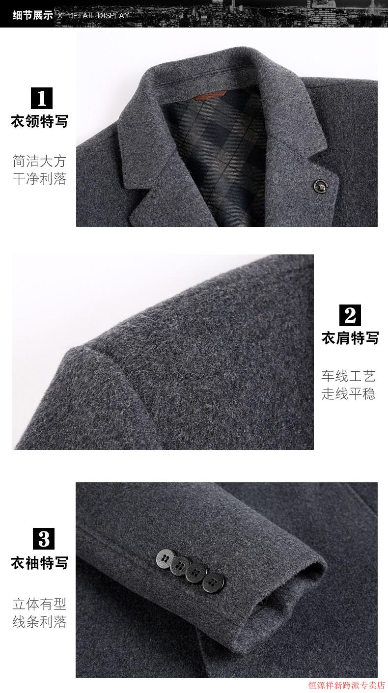 Hengyuanxiang double-sided wool coat for middle-aged men, mid-length, over the knee, middle-aged and elderly wool wool dad thickened coat, black (medium-length suit collar) L 175