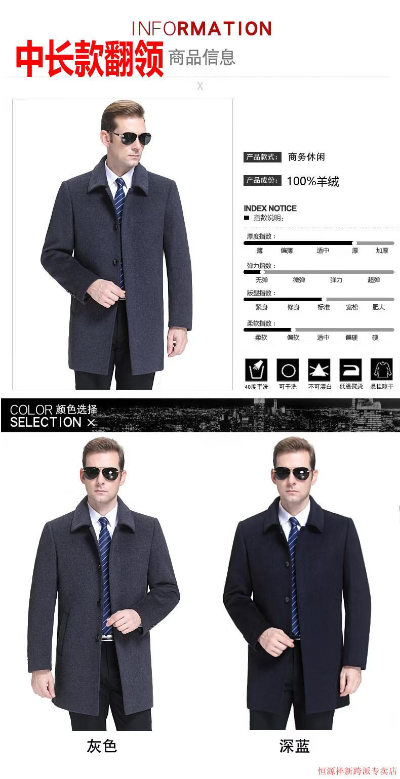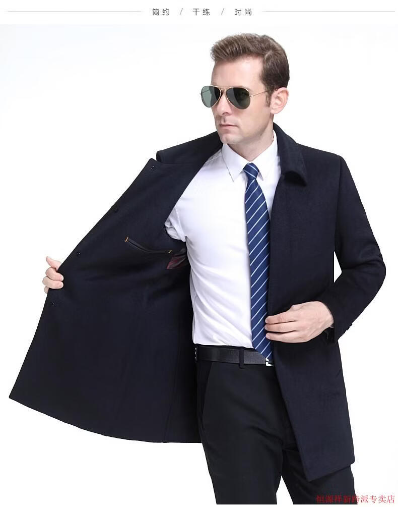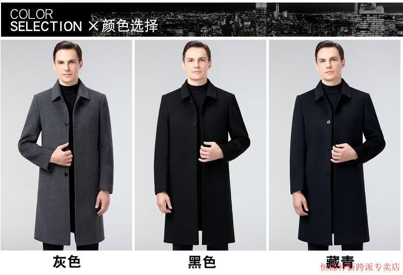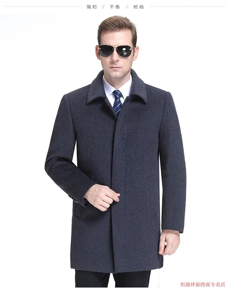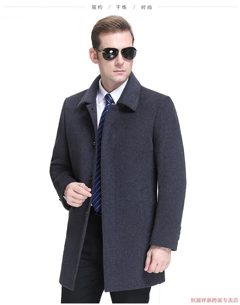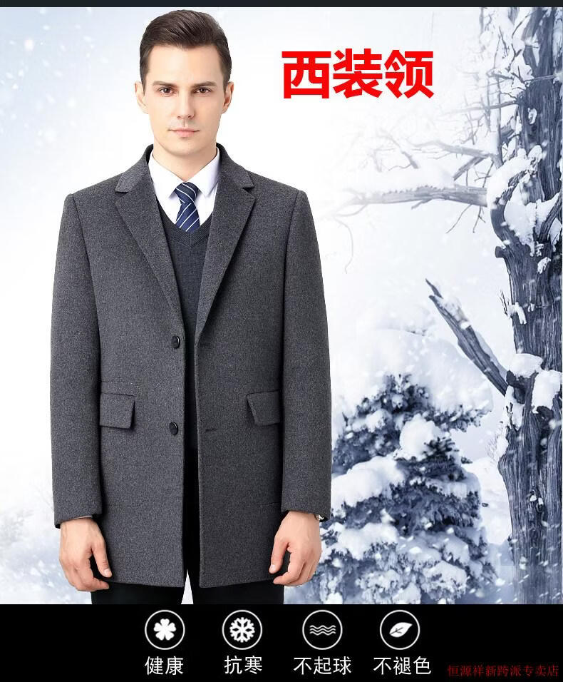 Hengyuanxiang double-sided wool coat for middle-aged men, mid-length, over the knee, middle-aged and elderly wool wool dad thickened coat, black (medium-length suit collar) L 175