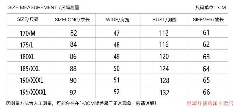 China (cm) 165 / 88-90 170 / 96-98 175 / 108-110 180 / 118-122 185 / 126-130