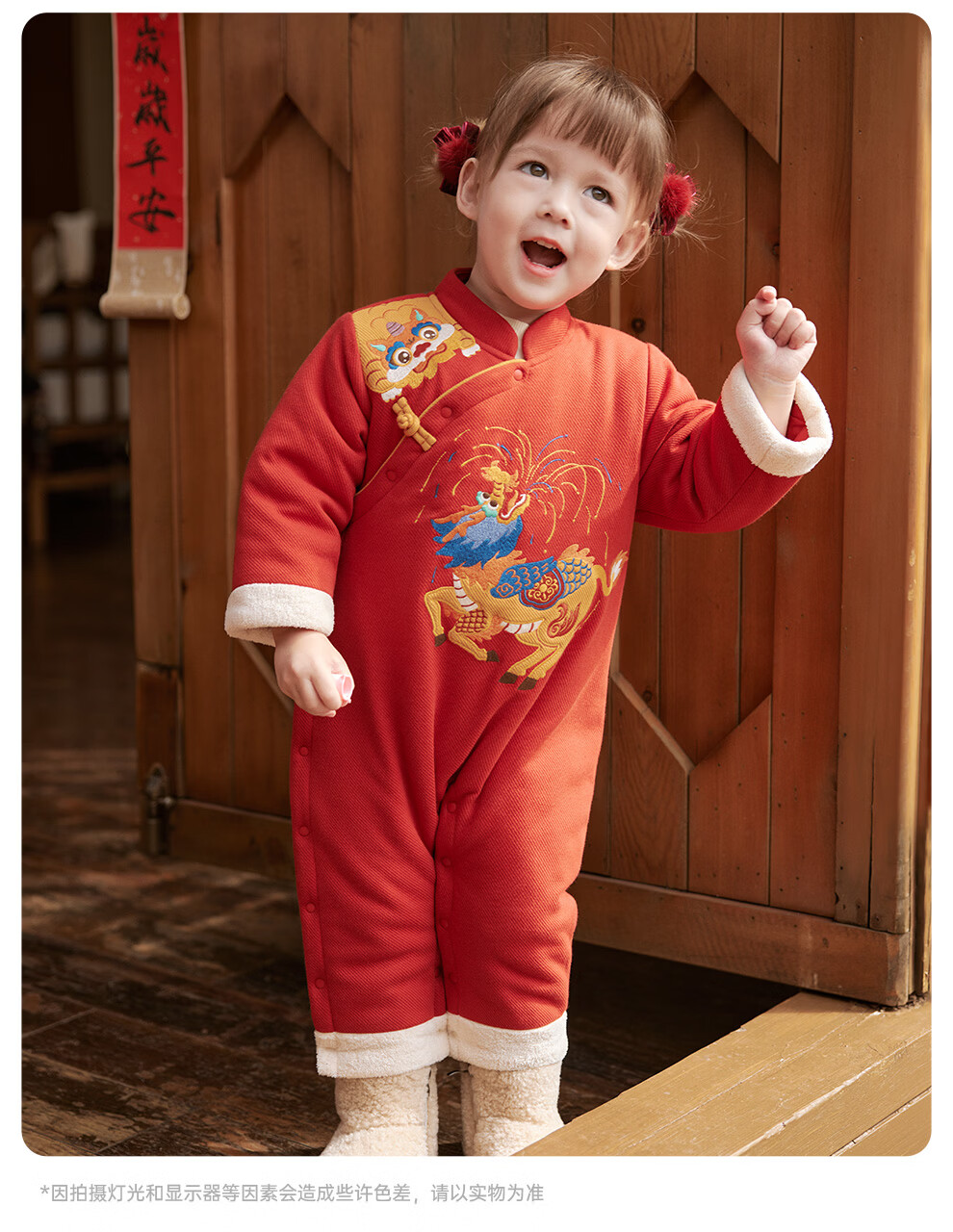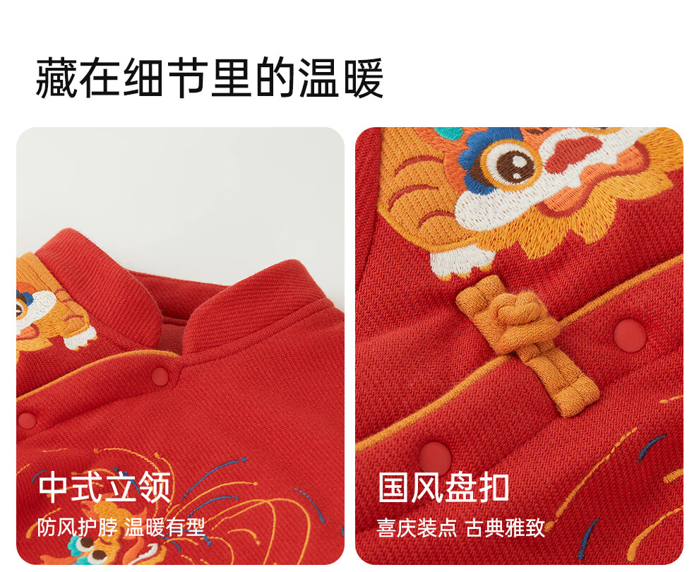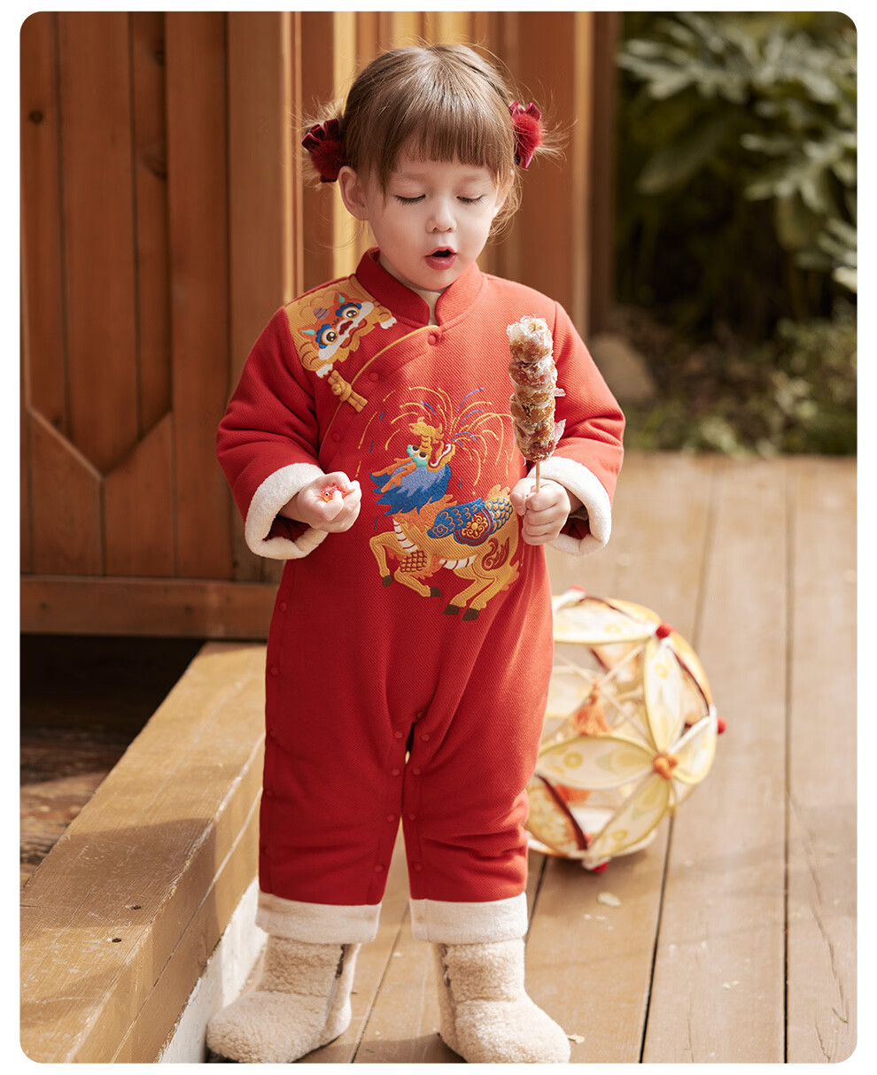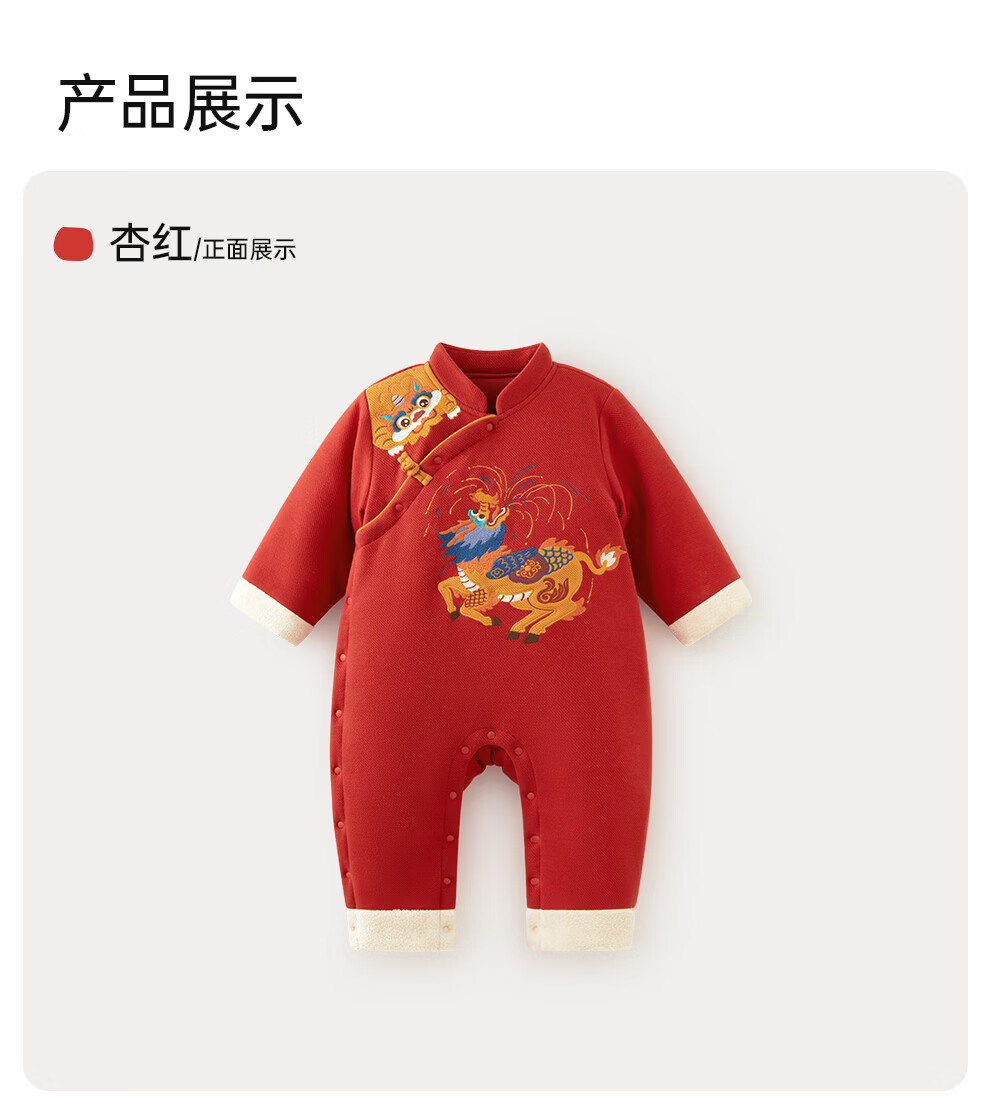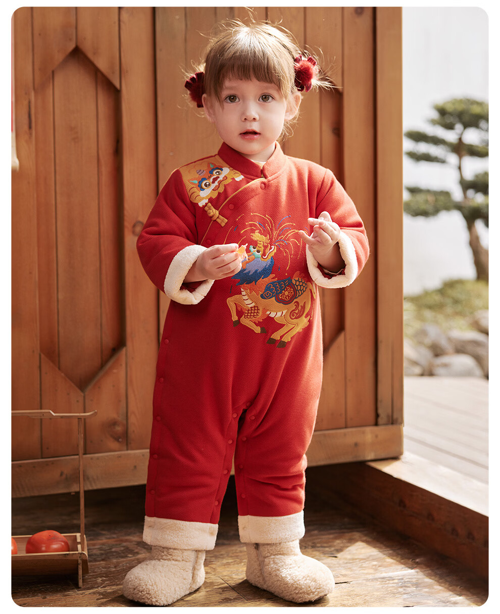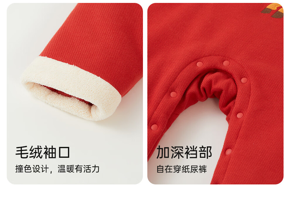 Wei Shi Muni baby quilted jumpsuit warm baby red festive New Year clothes new Chinese style autumn and winter harem apricot red 73cm
