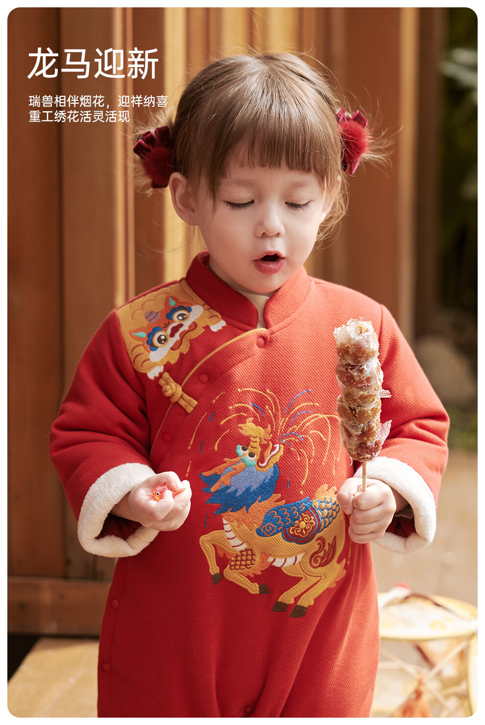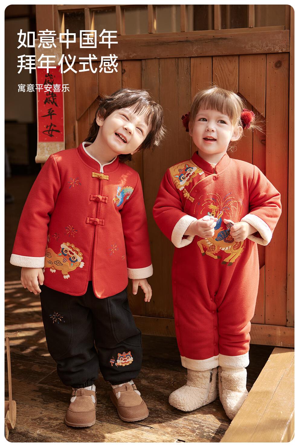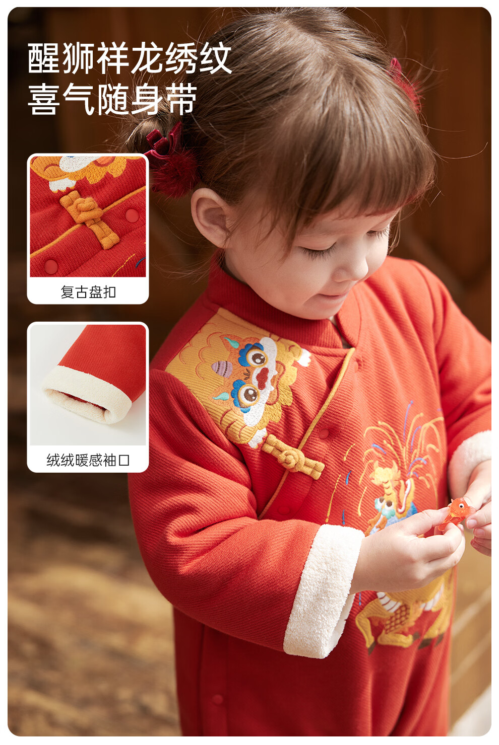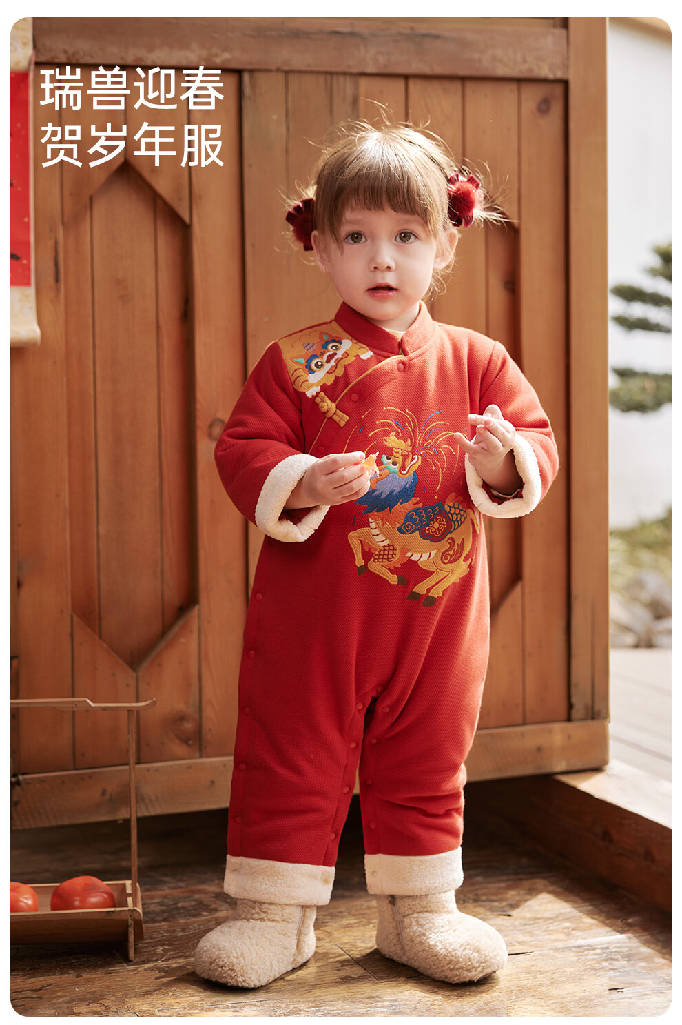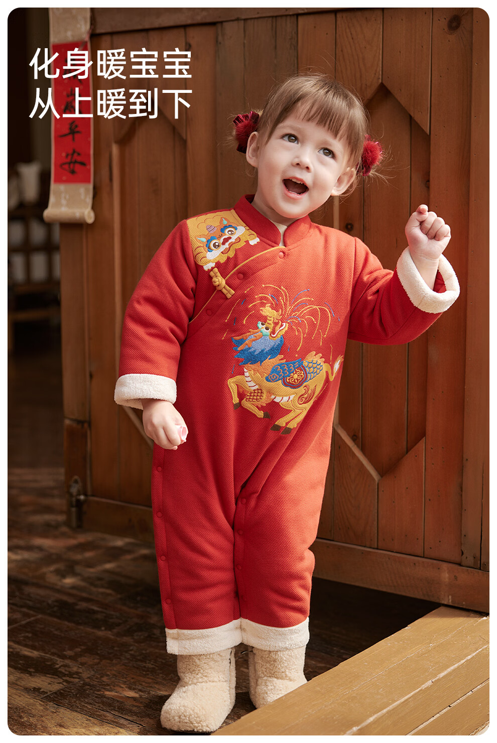 Wei Shi Muni baby quilted jumpsuit warm baby red festive New Year clothes new Chinese style autumn and winter harem apricot red 73cm