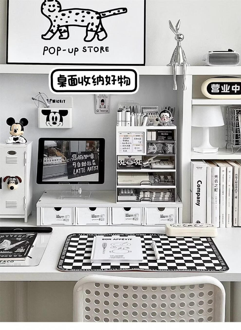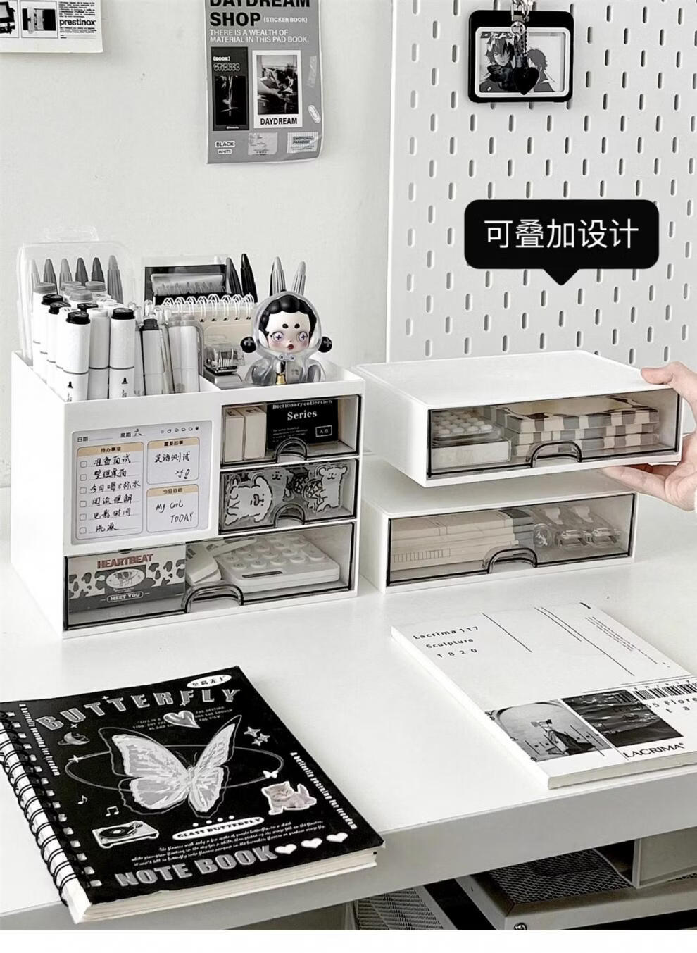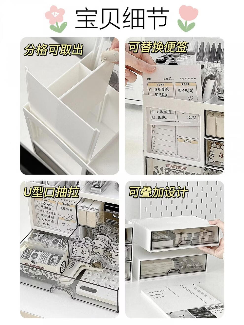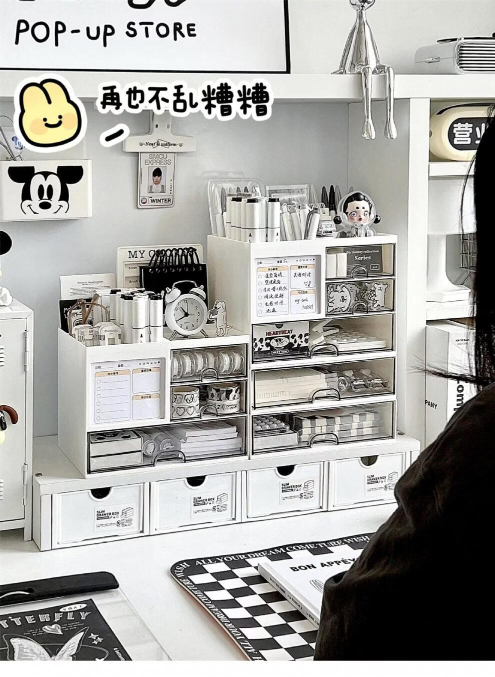 Shijanu Genuine Desktop Storage Box Drawer-Type Student Pen Holder Office Work Position Rack Acrylic Desk Text Vertical Stripe Multi-Function Pen Holder * Rotating Pen Holder_Cream