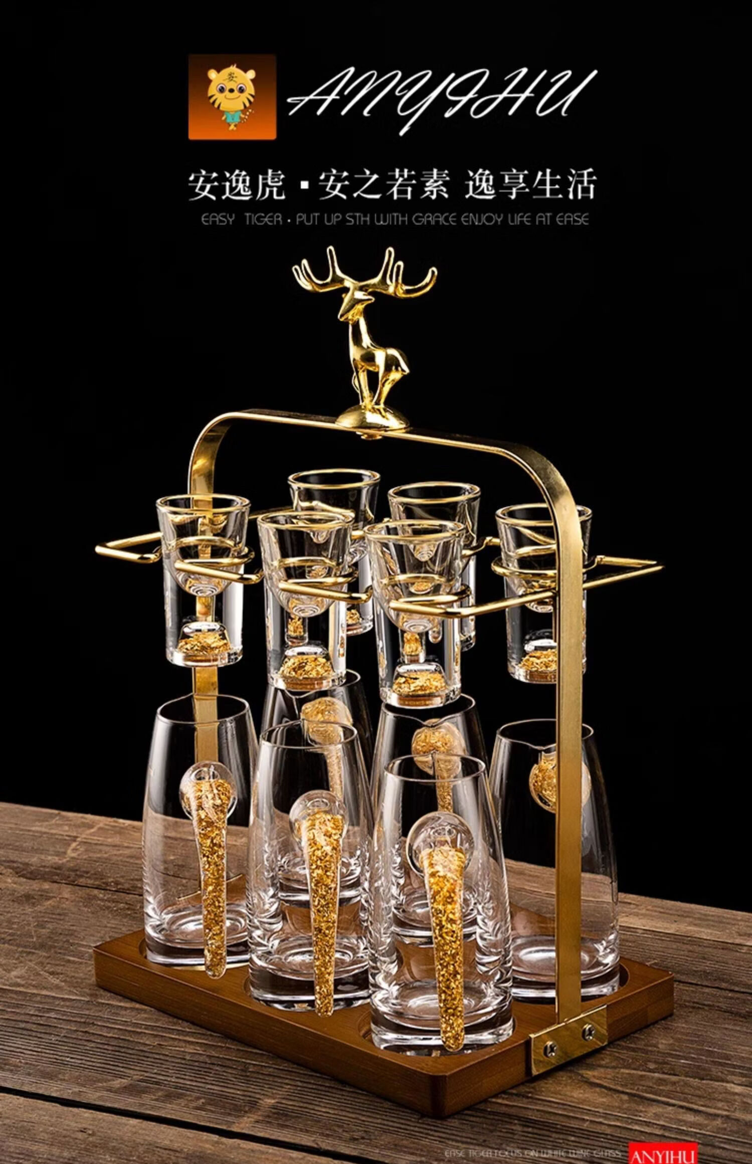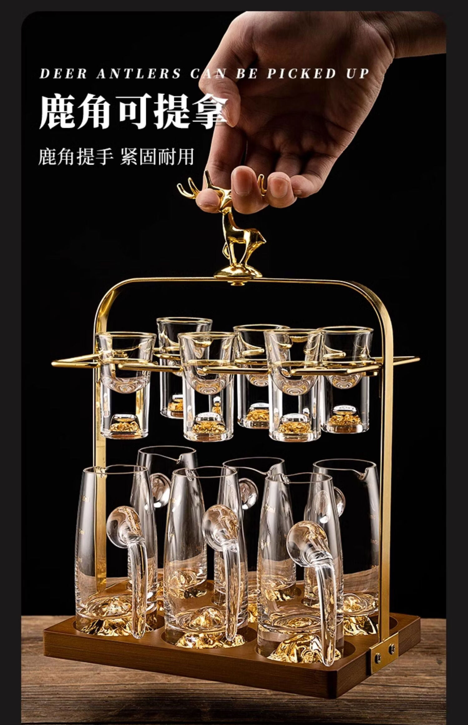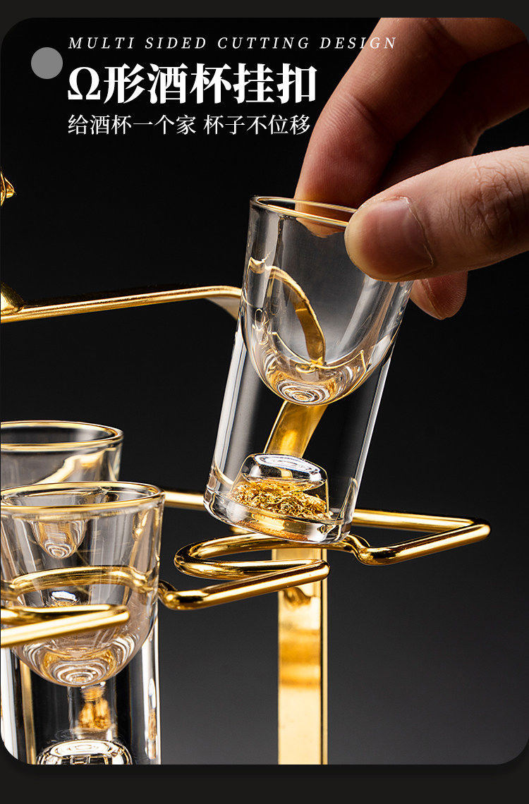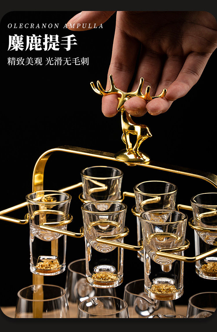 Light luxury crystal glass white wine glass set for home use Chinese-style one-cup small wine glass two-quarter wine set transparent handleless 10 pots 10 cups + golden deer cup holder
