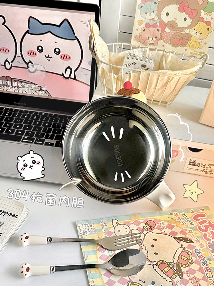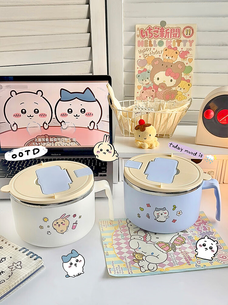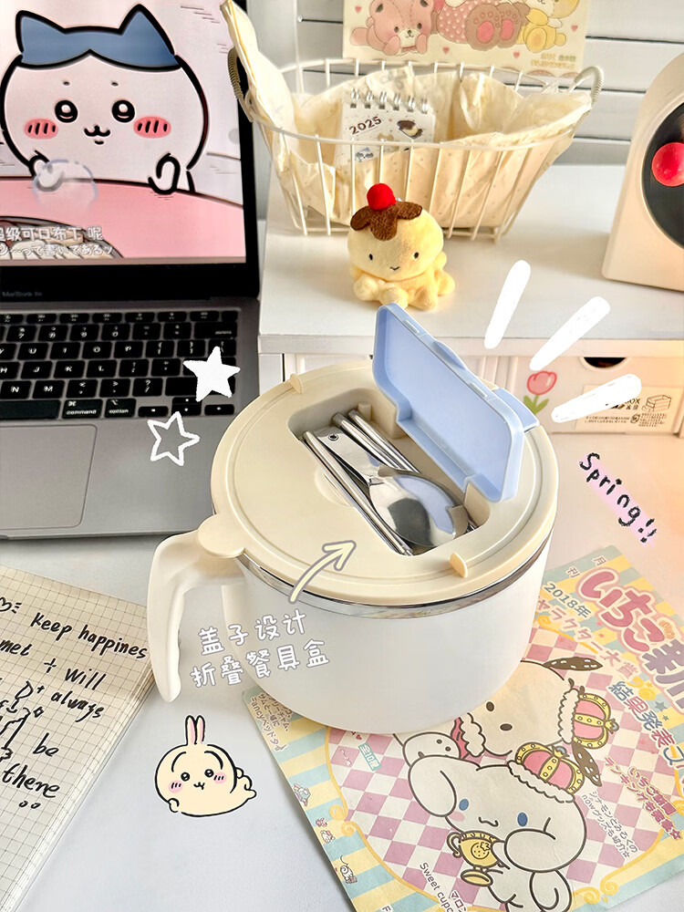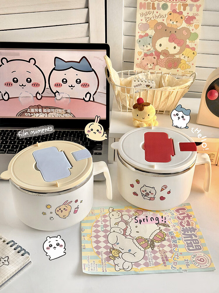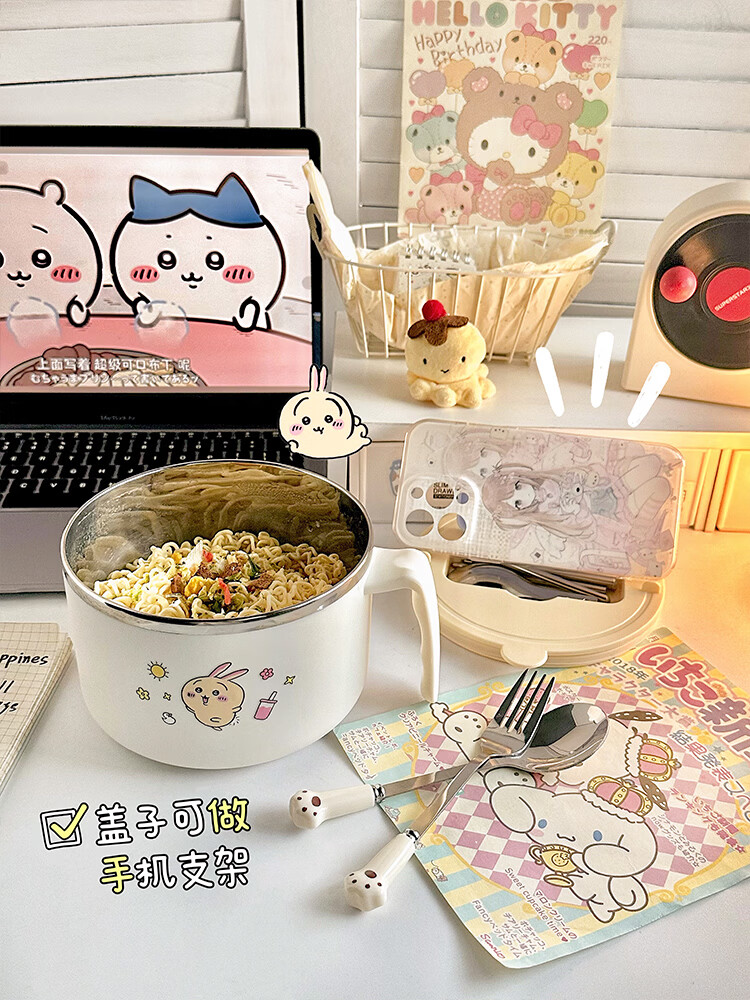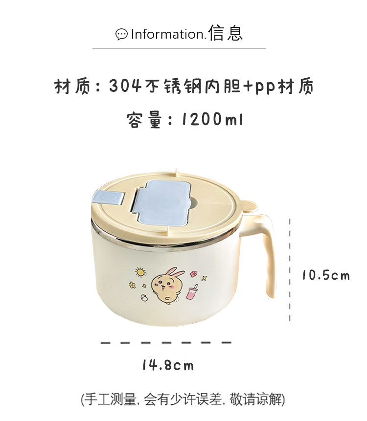 He Jiagong student instant noodle bowl 537 baby stainless steel dormitory Xiaoba lunch box drainable instant noodle bowl Jiyi nie-1200ml 304 antibacterial liner