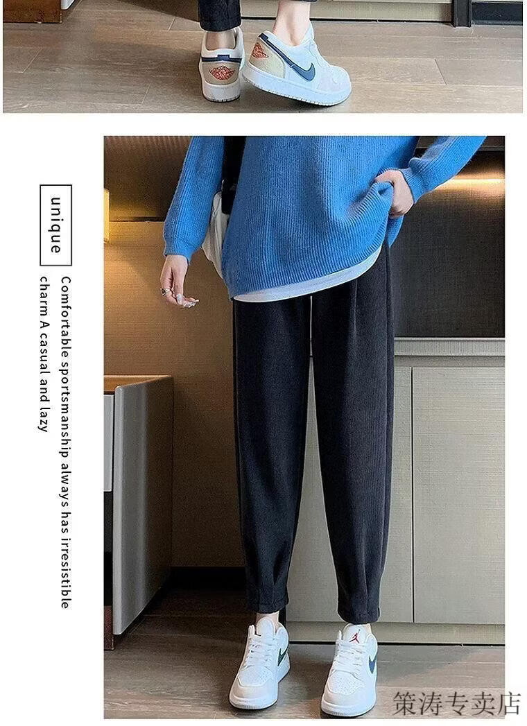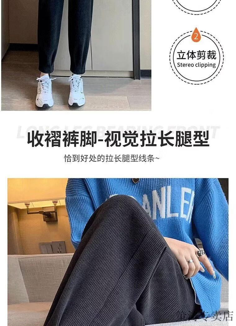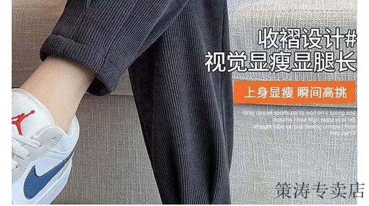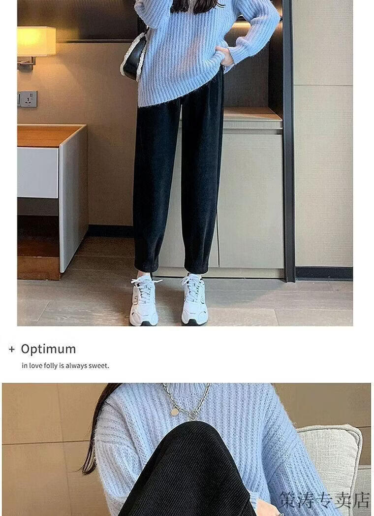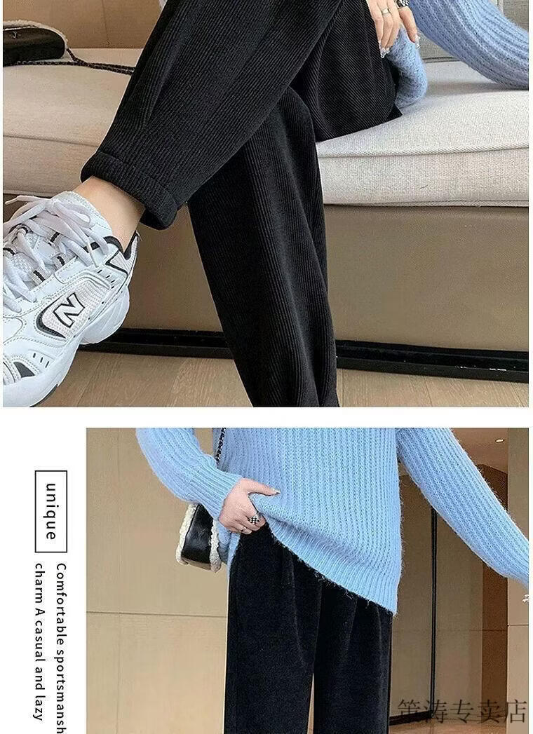 Hengyuanxiang women's velvet pants with leggings 2025 autumn and winter style velvet thickening high waist loose slimming nine-point harem casual pants black-regular style velvet style S recommended 80-95Jin Jin is equal to 0.5 kg