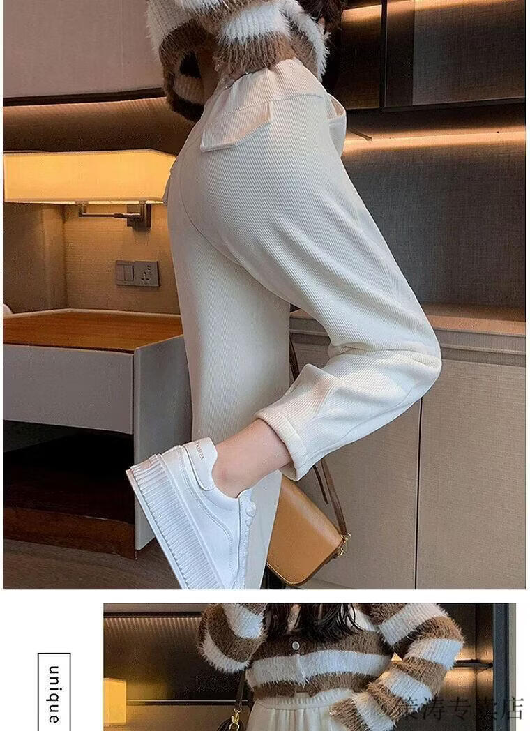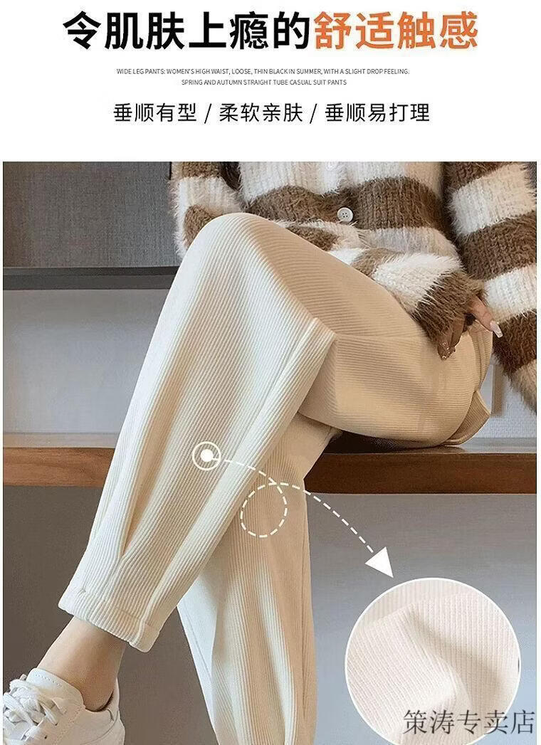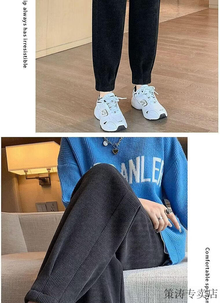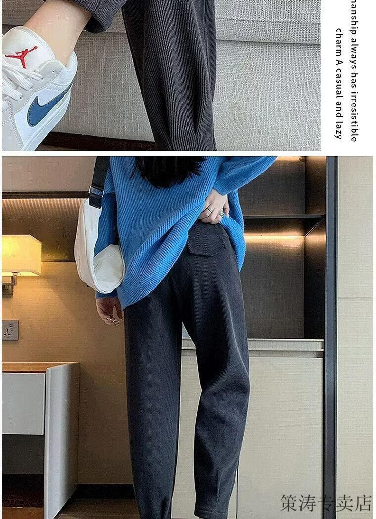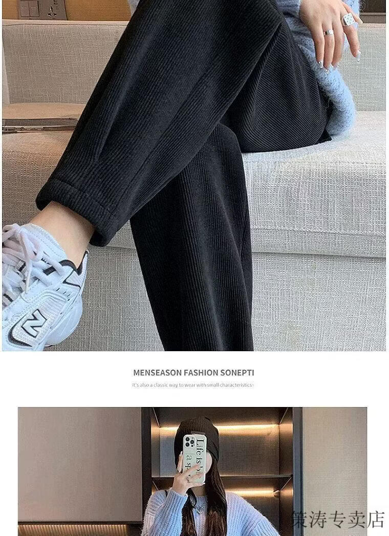 Hengyuanxiang women's velvet pants with leggings 2025 autumn and winter style velvet thickening high waist loose slimming nine-point harem casual pants black-regular style velvet style S recommended 80-95Jin Jin is equal to 0.5 kg