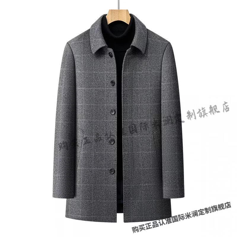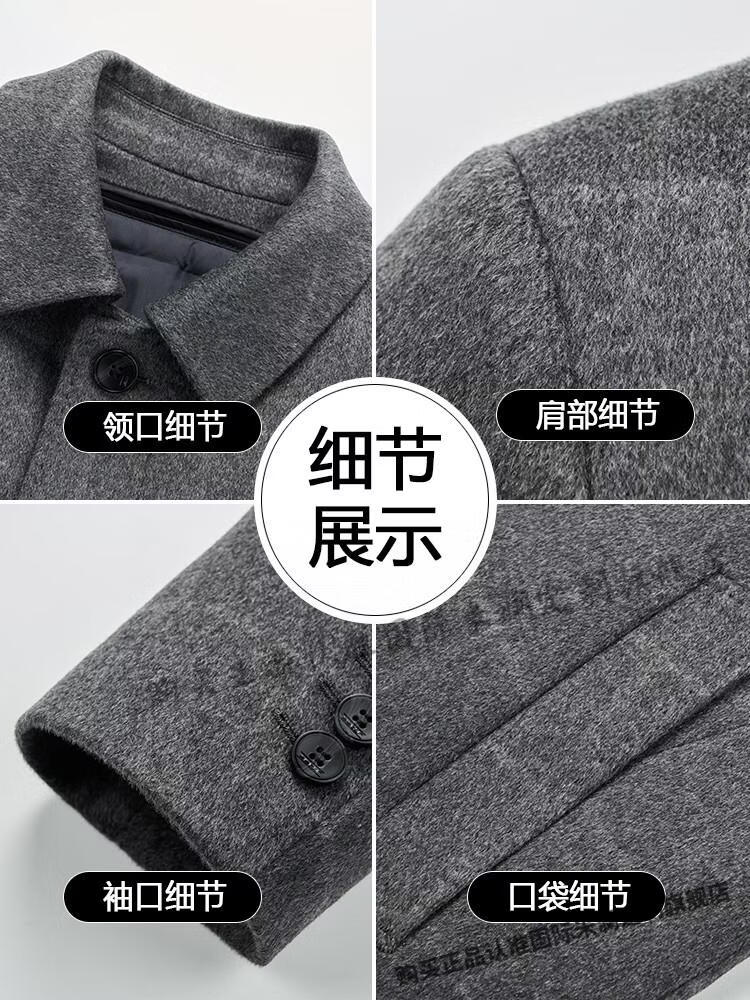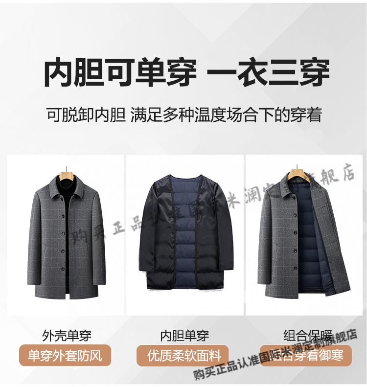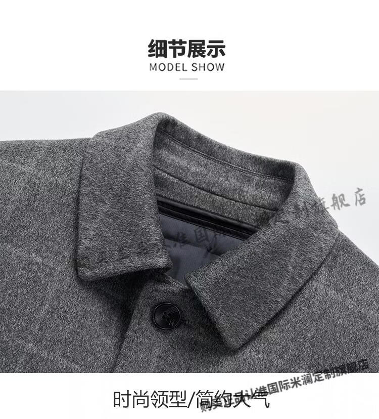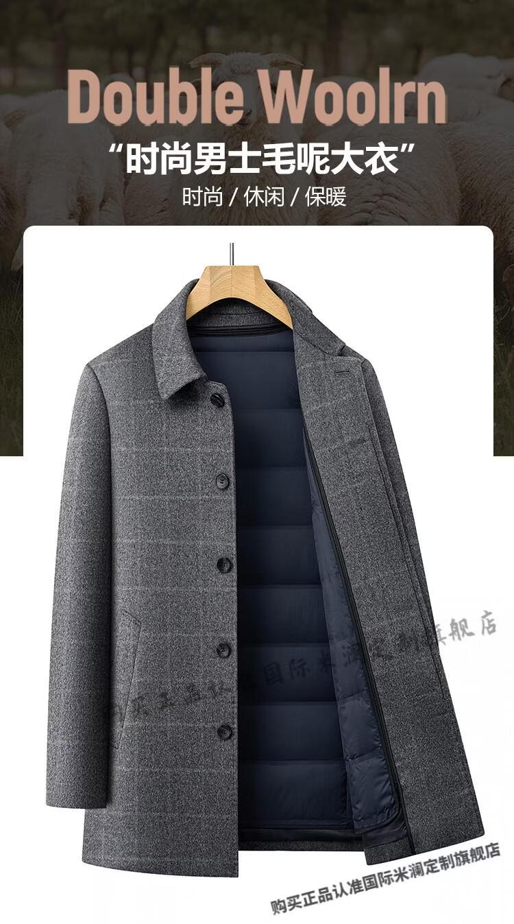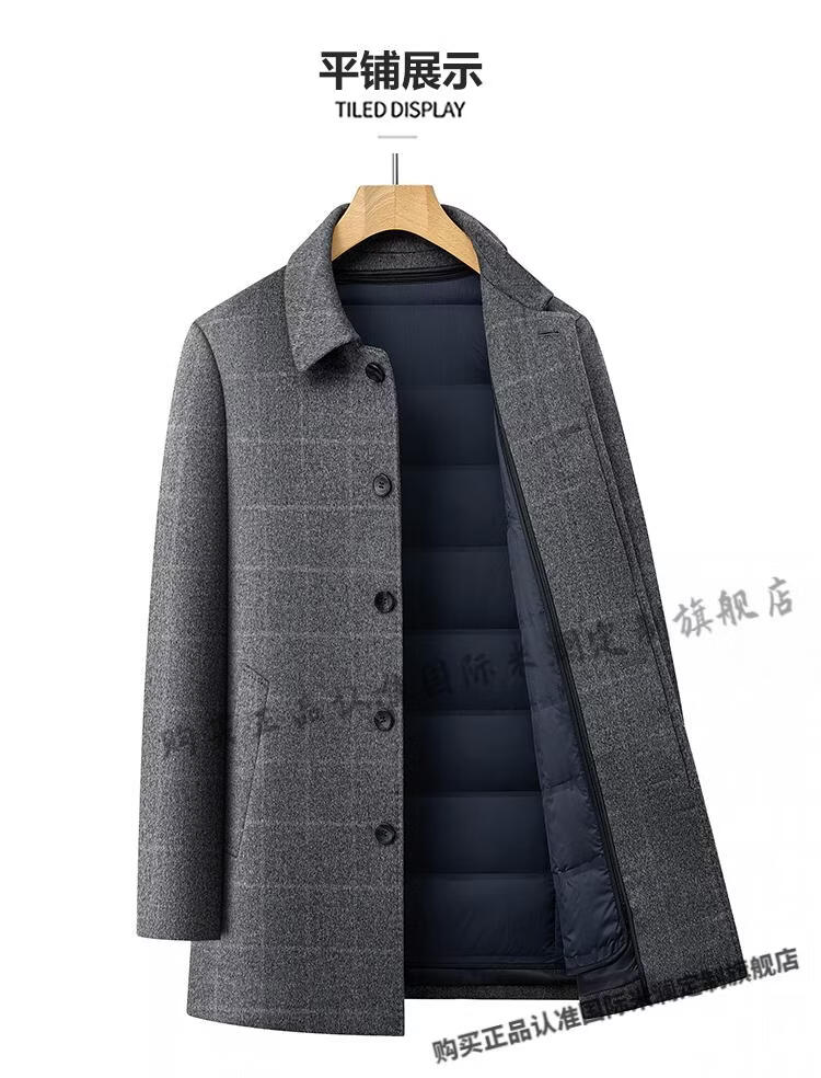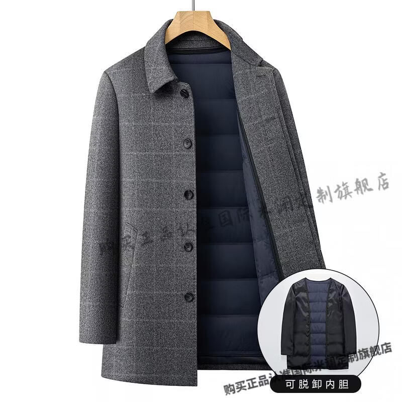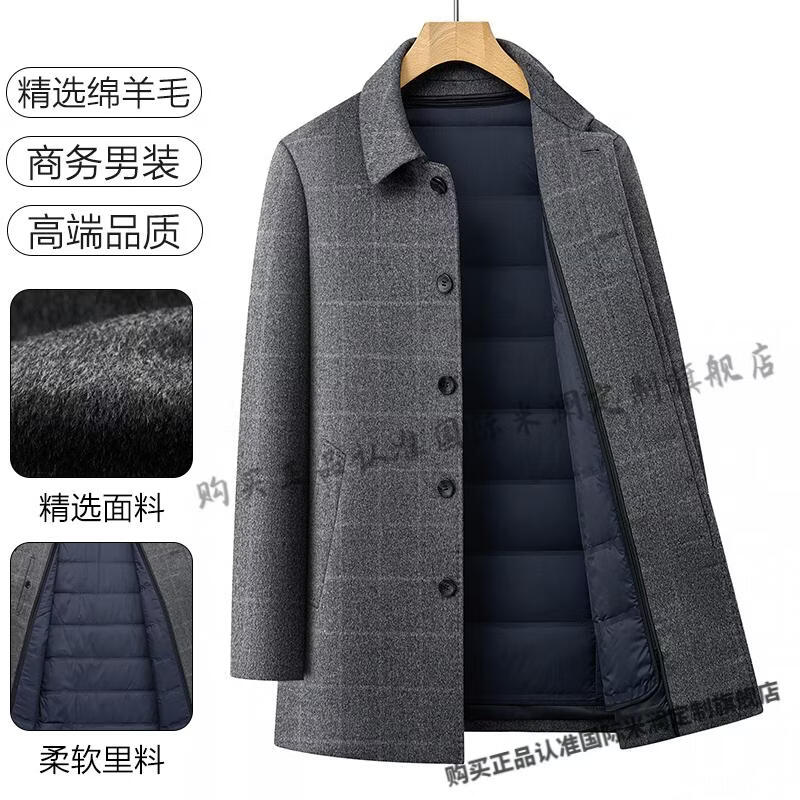 国际米澜品牌双面羊绒大衣男中长款秋冬季白鹅绒内胆可脱卸羊毛呢大衣男装 单排扣-灰色【山羊绒+绵羊毛+桑蚕丝+85鹅绒】 XL 180码-建议【130-155斤】