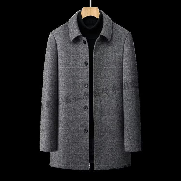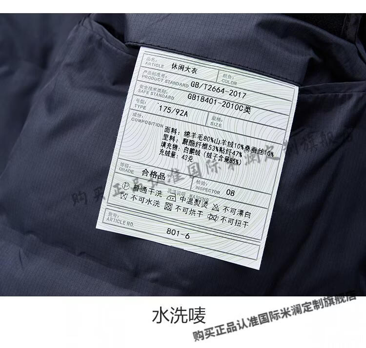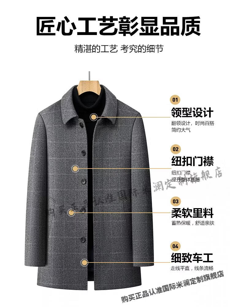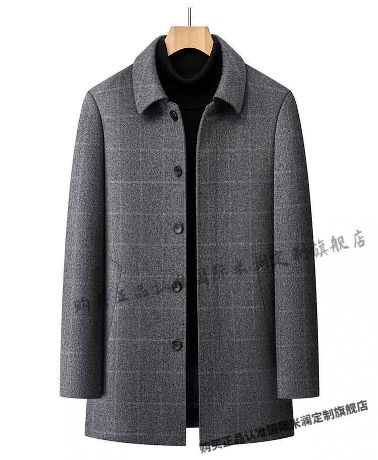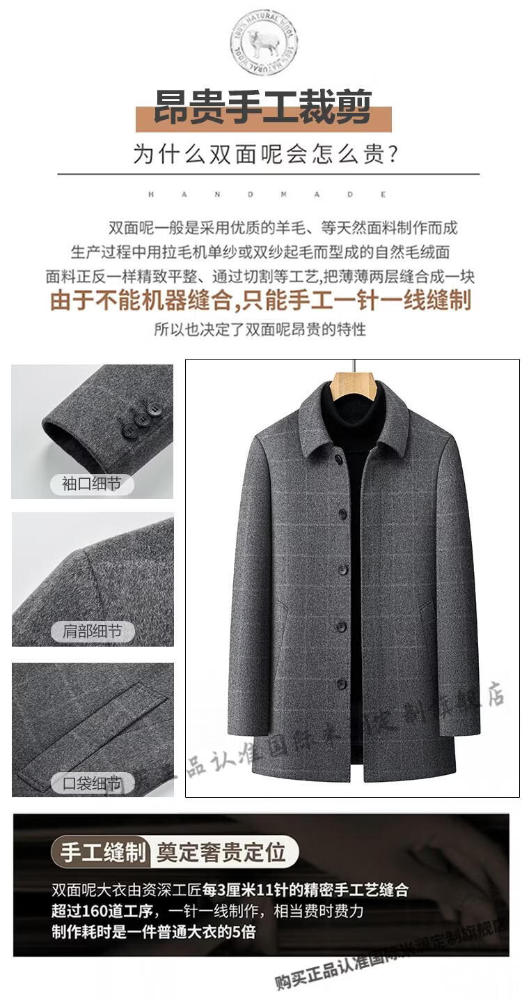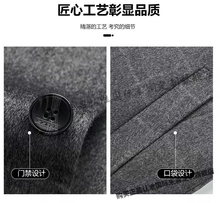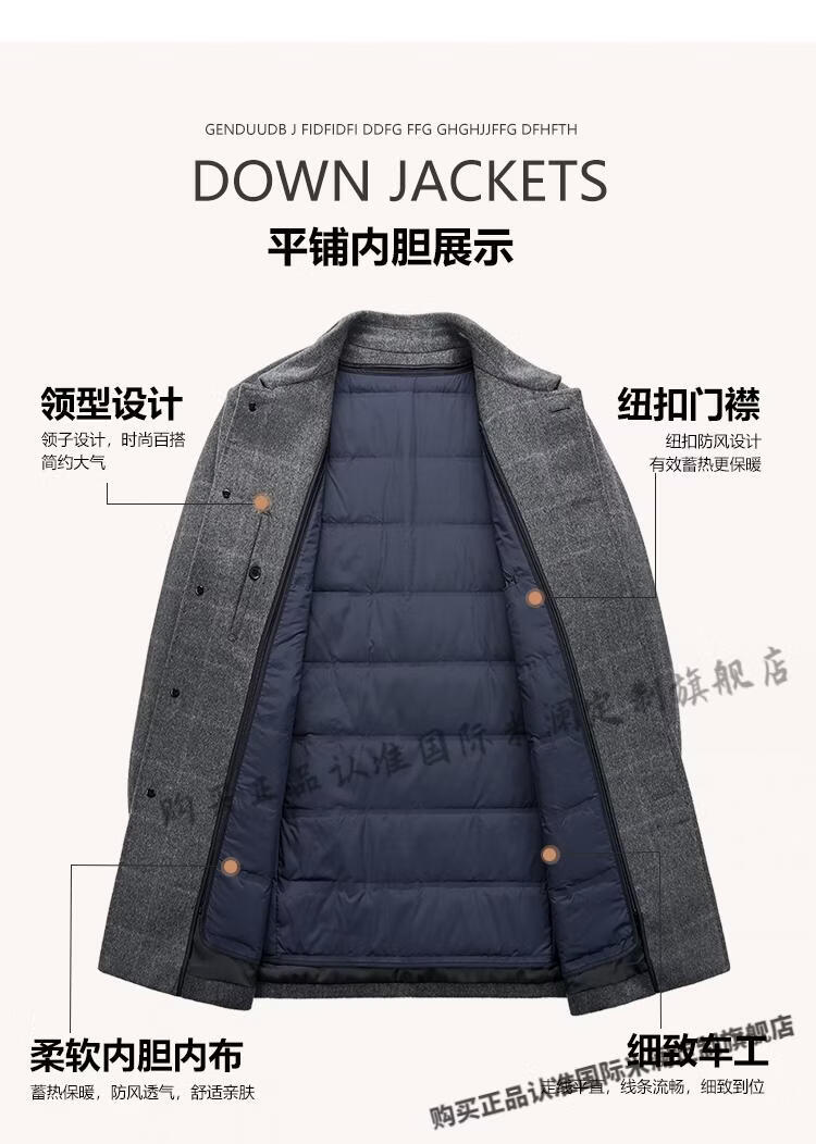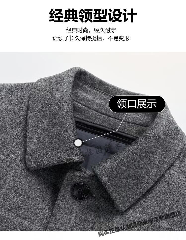 国际米澜品牌双面羊绒大衣男中长款秋冬季白鹅绒内胆可脱卸羊毛呢大衣男装 单排扣-灰色【山羊绒+绵羊毛+桑蚕丝+85鹅绒】 XL 180码-建议【130-155斤】