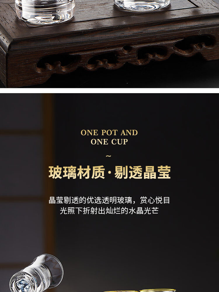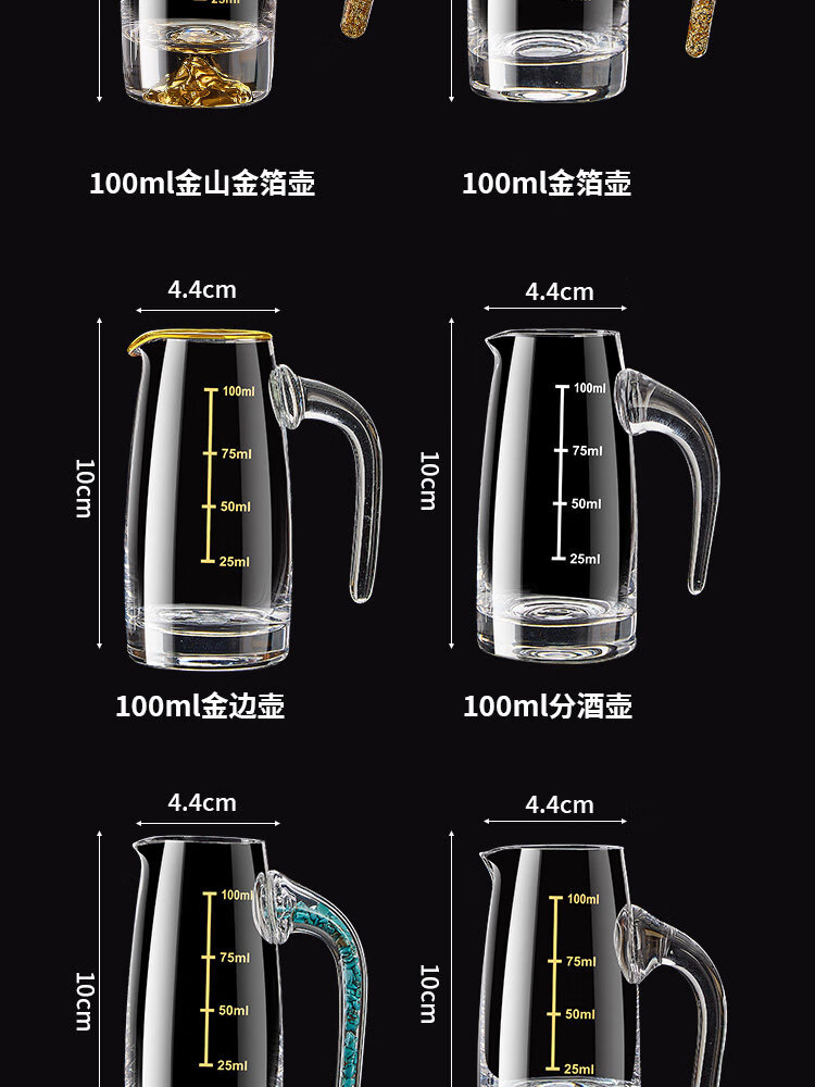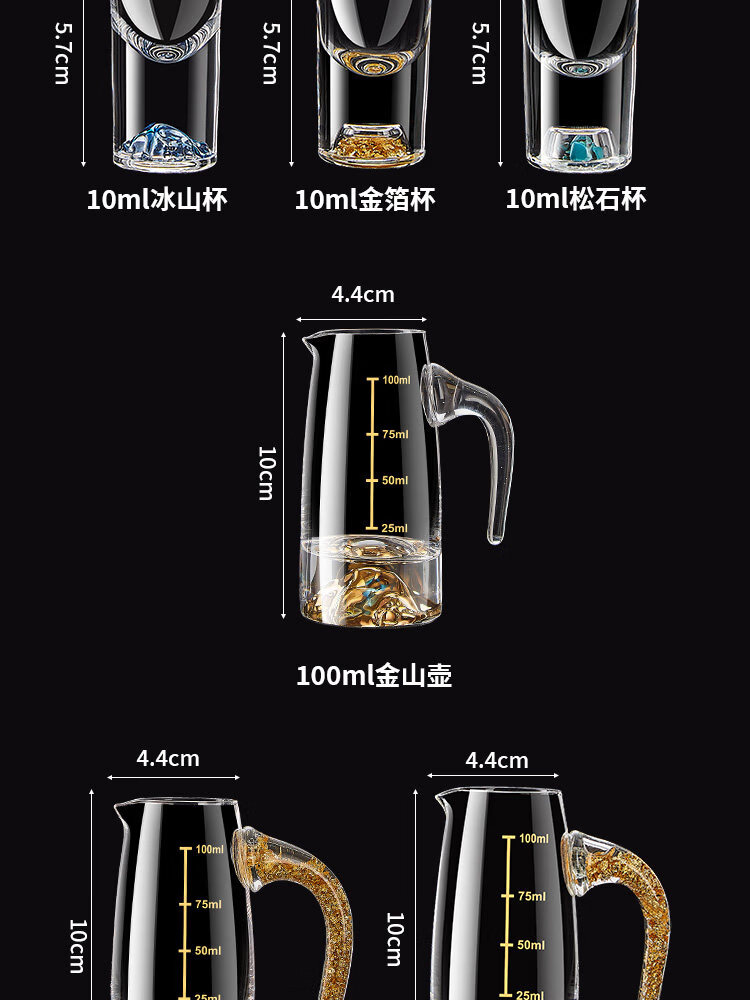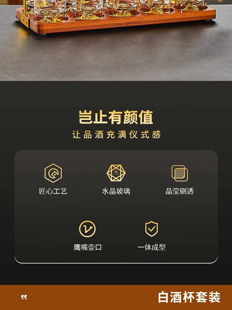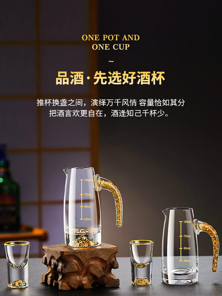 Jingyan gold foil high-end liquor cup set, household high-end two-two-point wine vessel, light luxury high-end wineware, bullet cup, one-cup cup, transparent style, small tall cup/10 pots, 10 cups + golden deer cup