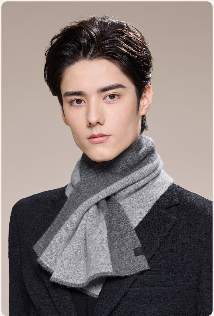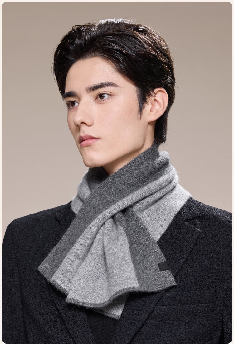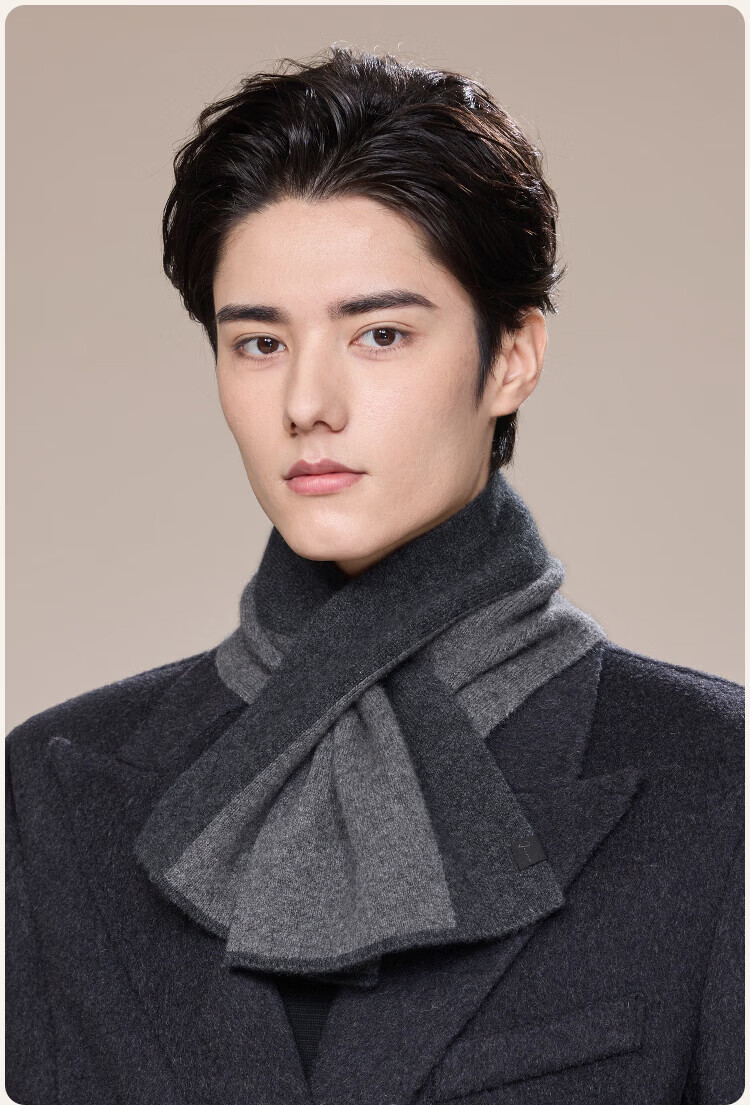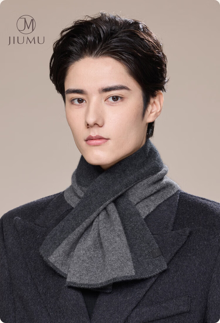 JIUMU 100% Cashmere Small Scarf Men's Autumn and Winter Warm Scarf Short Scarf for Boys Birthday Gift Gift Box Dark Gray