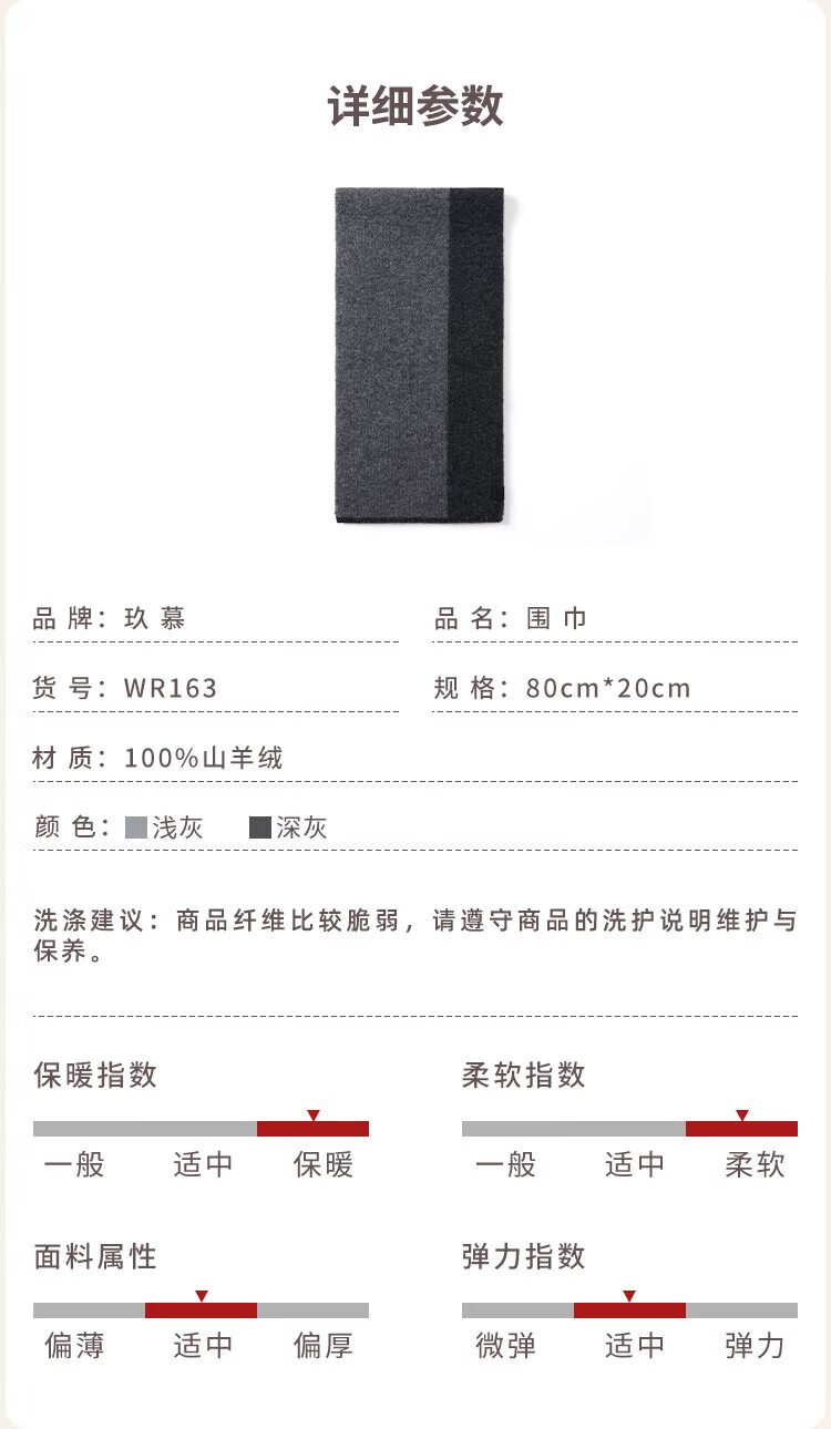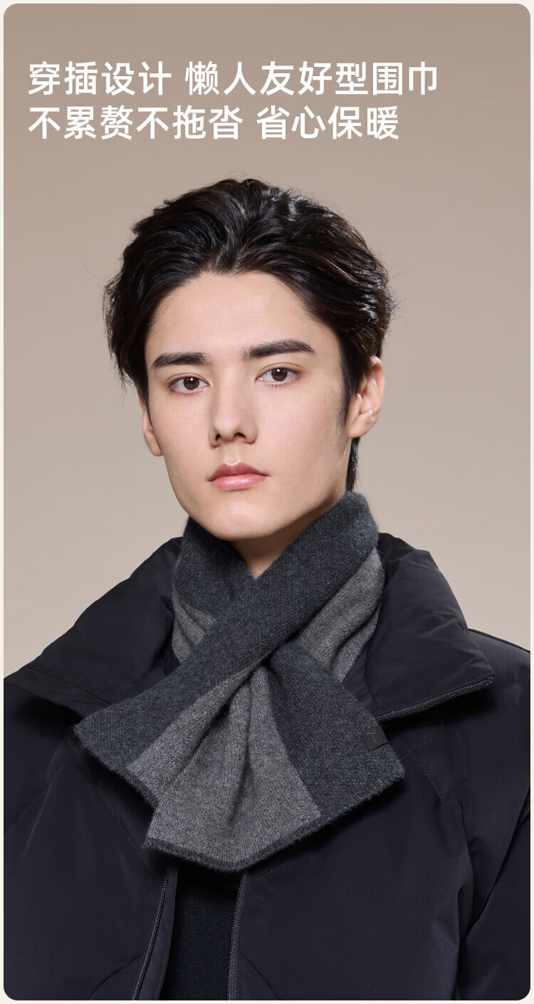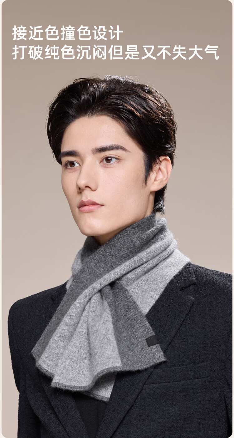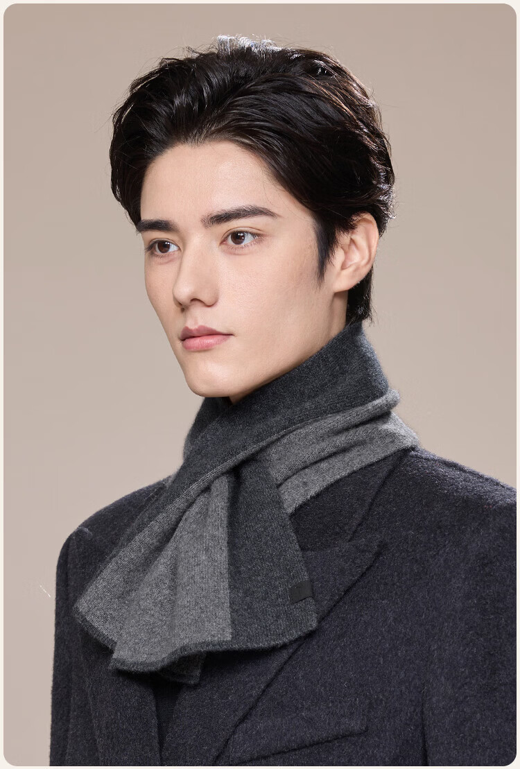 JIUMU 100% Cashmere Small Scarf Men's Autumn and Winter Warm Scarf Short Scarf for Boys Birthday Gift Gift Box Dark Gray