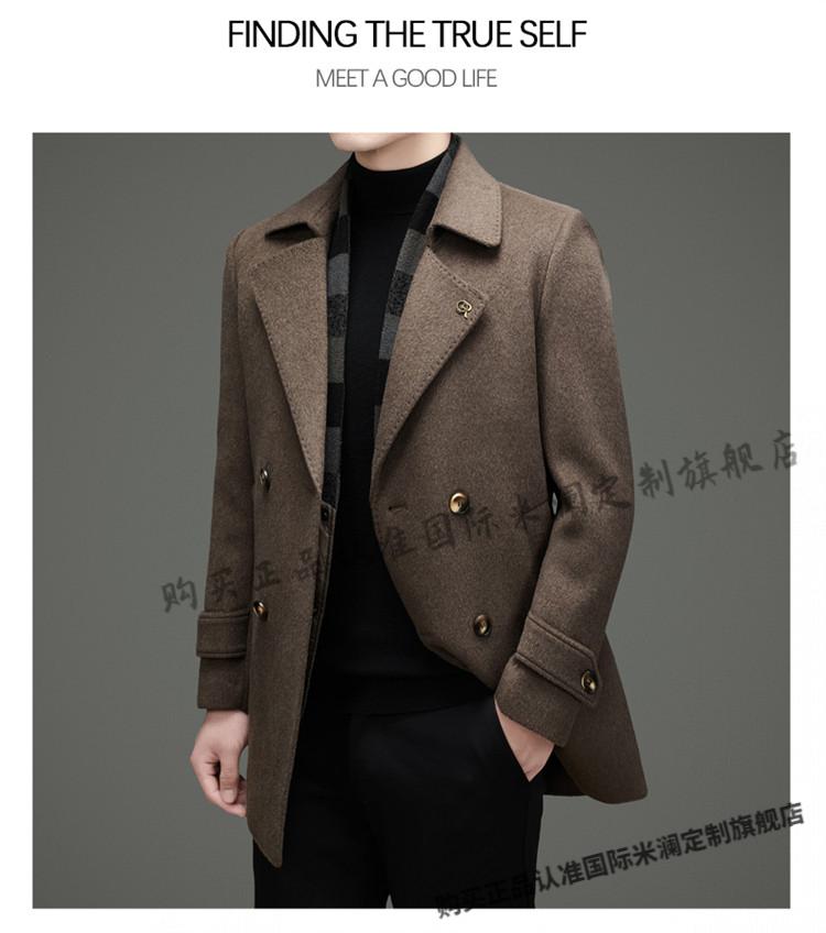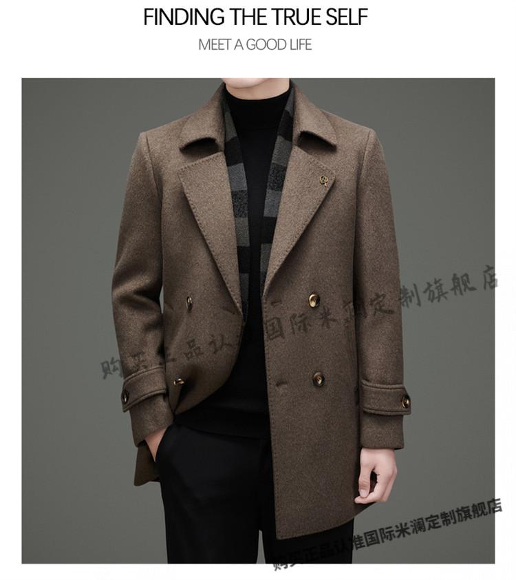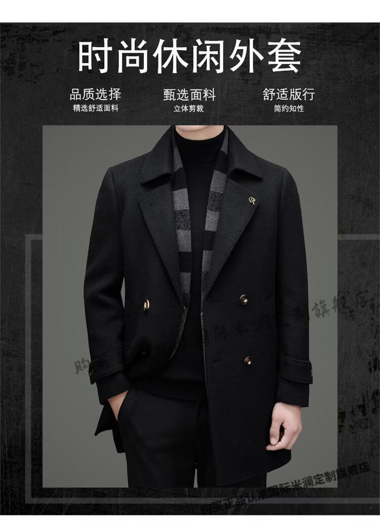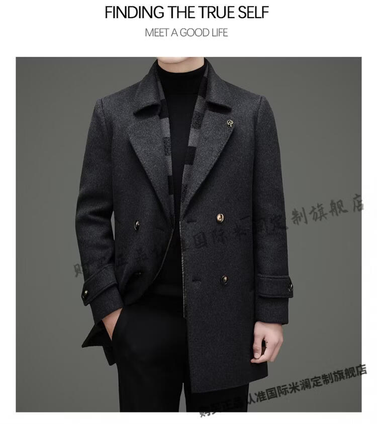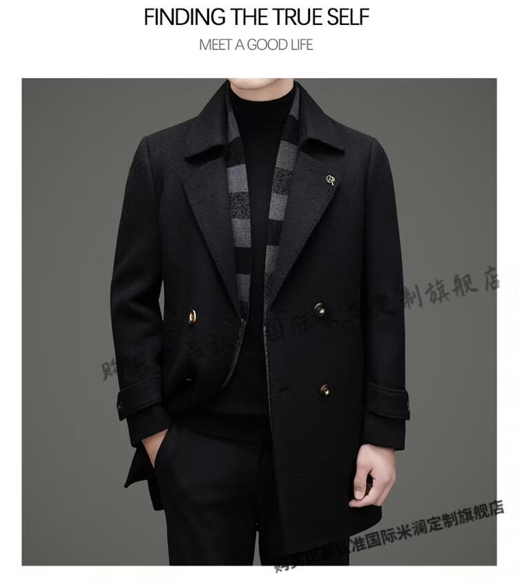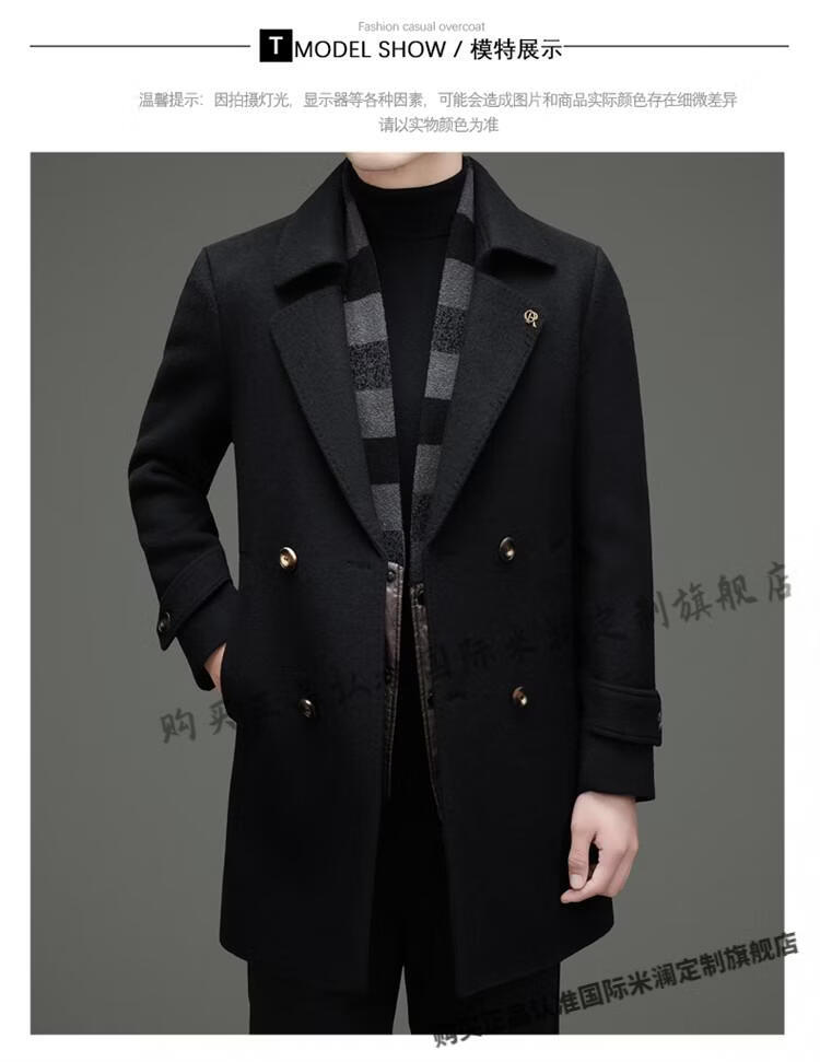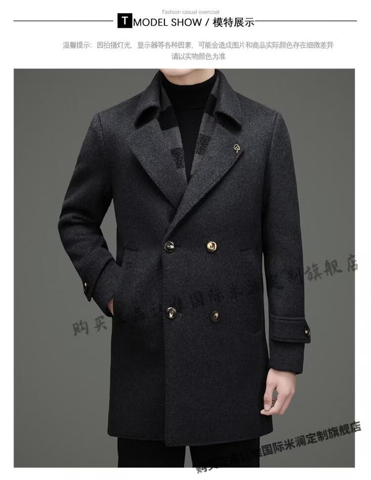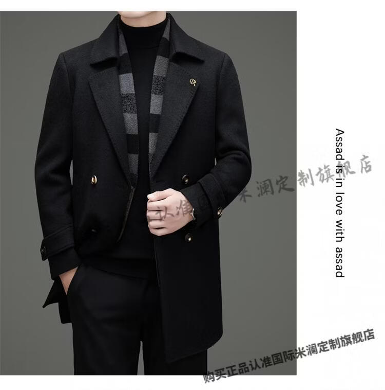 International Milan mid-length cashmere wool coat for men with removable white goose down lining, middle-aged business double-sided wool coat for men, double-breasted - black cashmere + sheep wool fabric, thickened XL 180 size - recommended 130-155 Jin Jin is equal to 0.5 kg