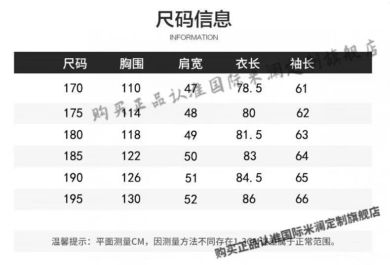 China (cm) 165 / 88-90 170 / 96-98 175 / 108-110 180 / 118-122 185 / 126-130