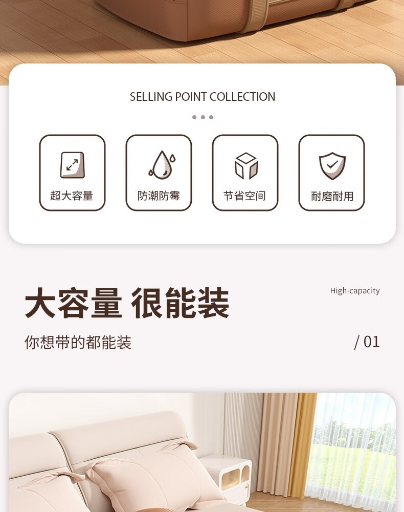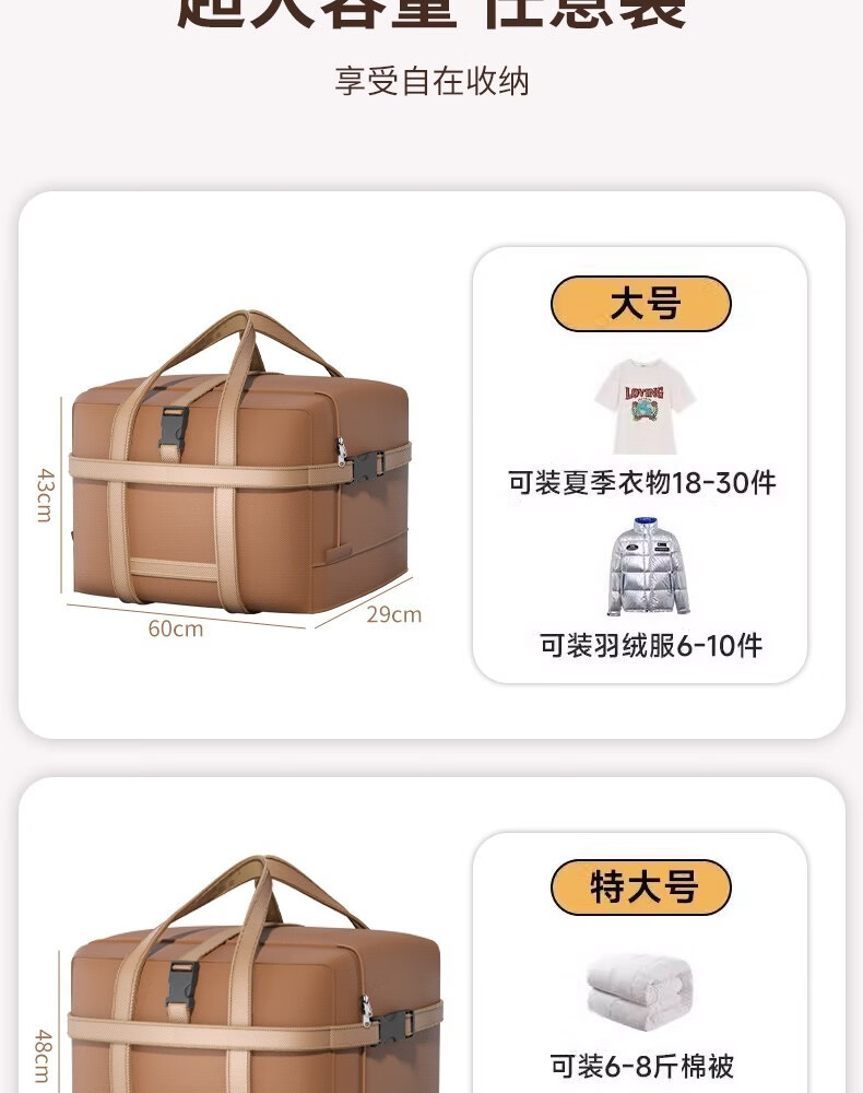 Jiebaina Moving Packing Bag Large Capacity Quilt Clothes Storage Organizing Bag Thickened Oxford Cloth Live-in School Luggage Check-in Bag Mocha Brown Large Double-layer Thickened Oxford Cloth/Lock Reinforced
