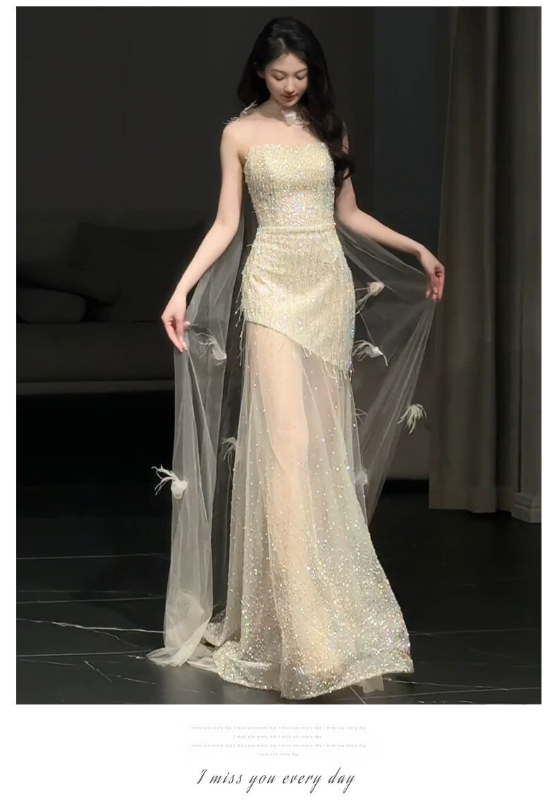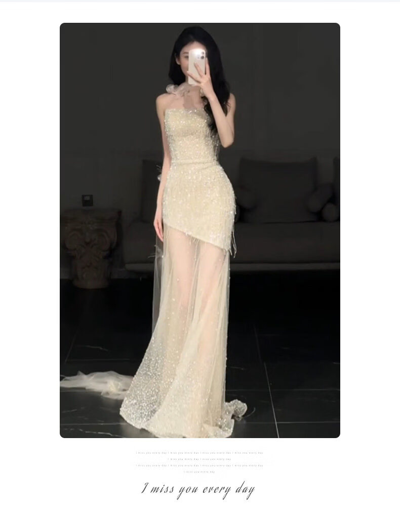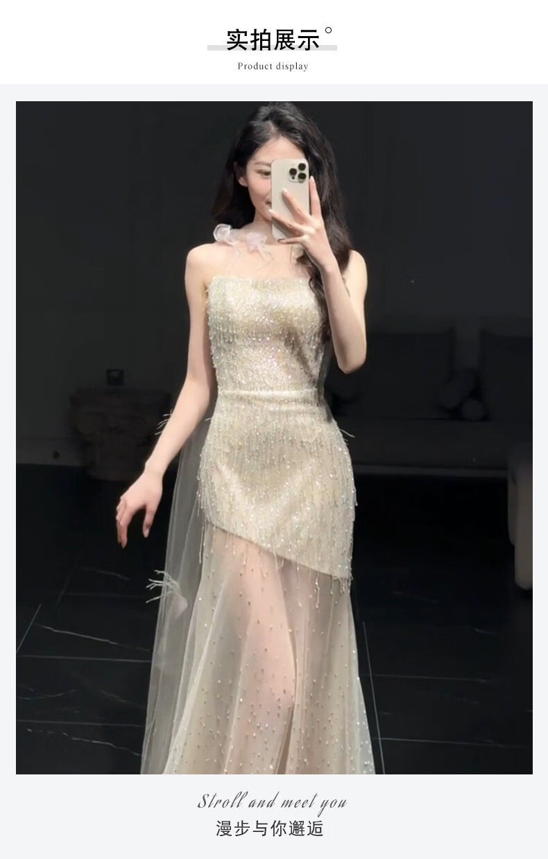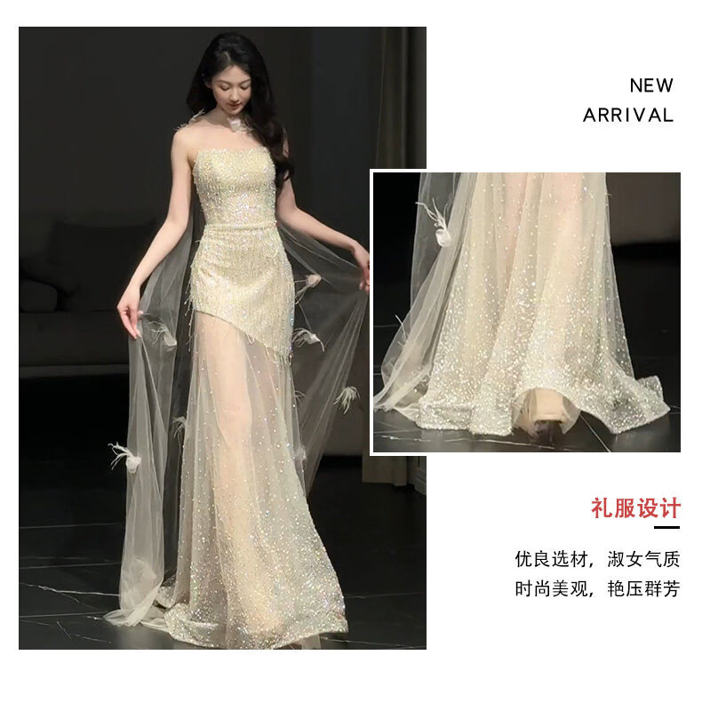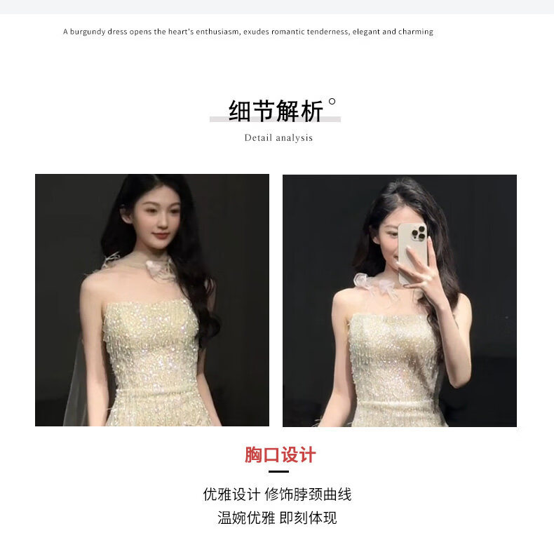 Chuangjingyi selects high sense party dress fishtail slim temperament host dinner toast dress bride female engagement dress picture color 2XL