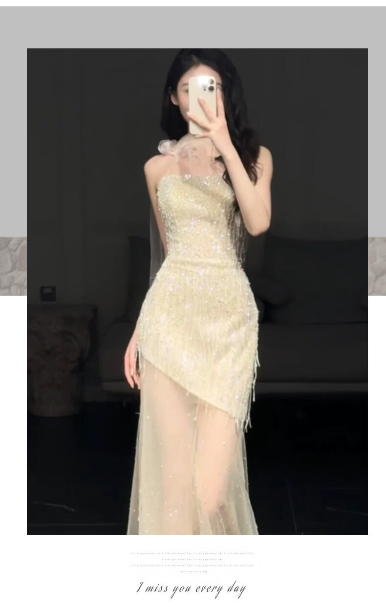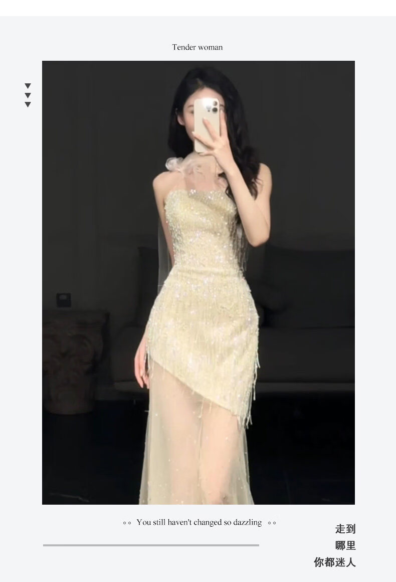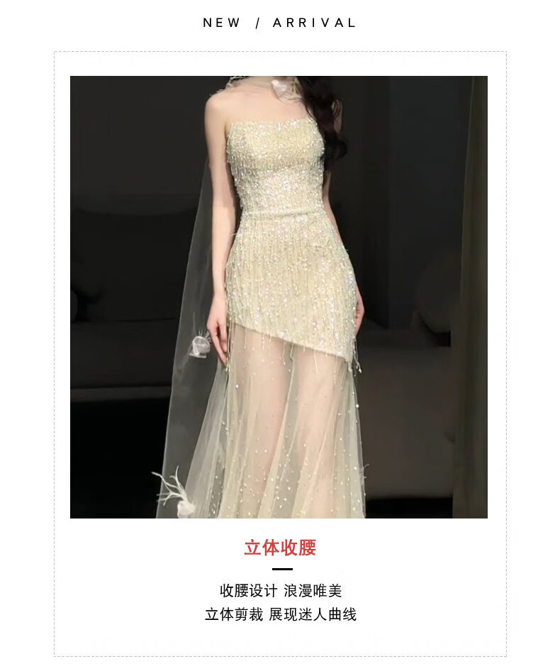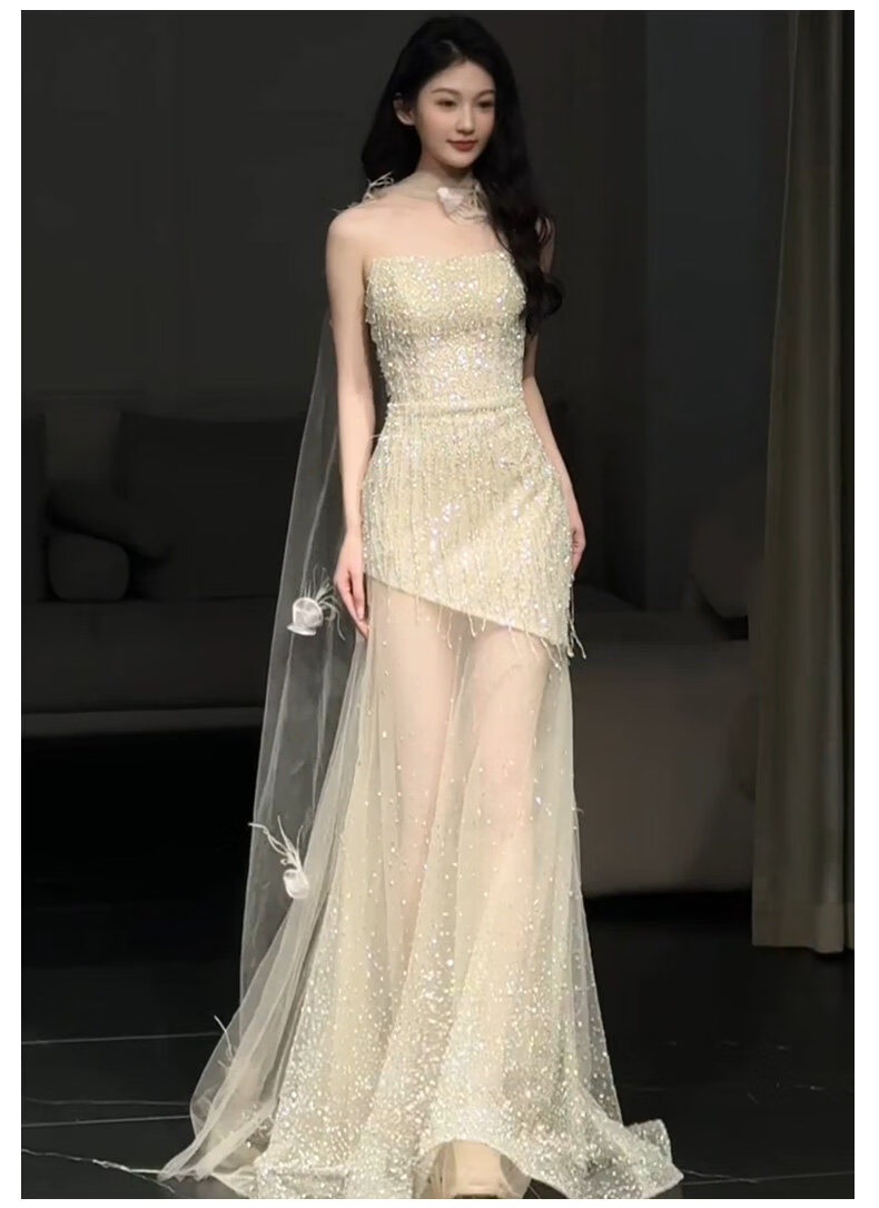 Chuangjingyi selects high sense party dress fishtail slim temperament host dinner toast dress bride female engagement dress picture color 2XL