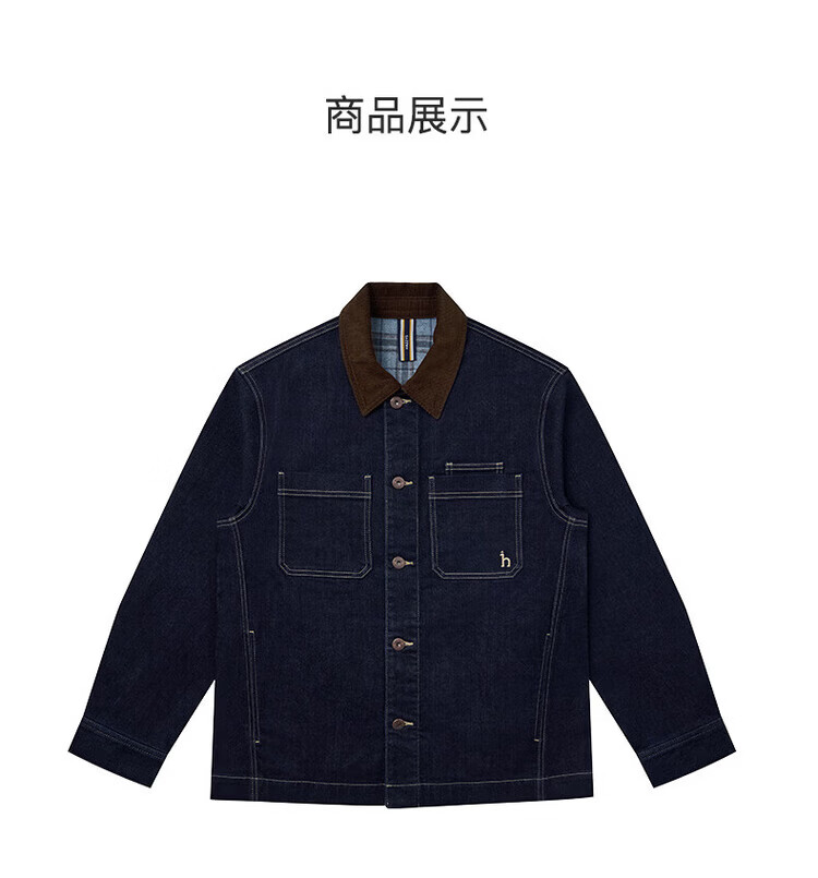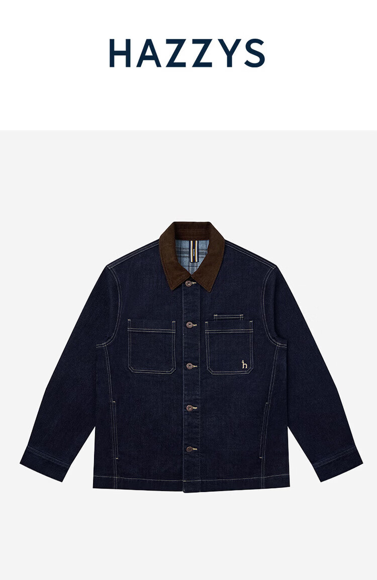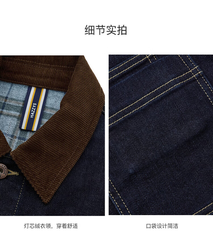 HAZZYS Men's 2025 Autumn and Winter New Jacket Corduroy Collar Plaid Lined Denim Jacket Men ASVZU0CDU14 M170/92A46