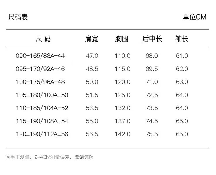 China (cm) 160-165/84-86 165-170 / 88-90 167-172 / 92-96 168-173 / 98-102 170-176 / 106-110