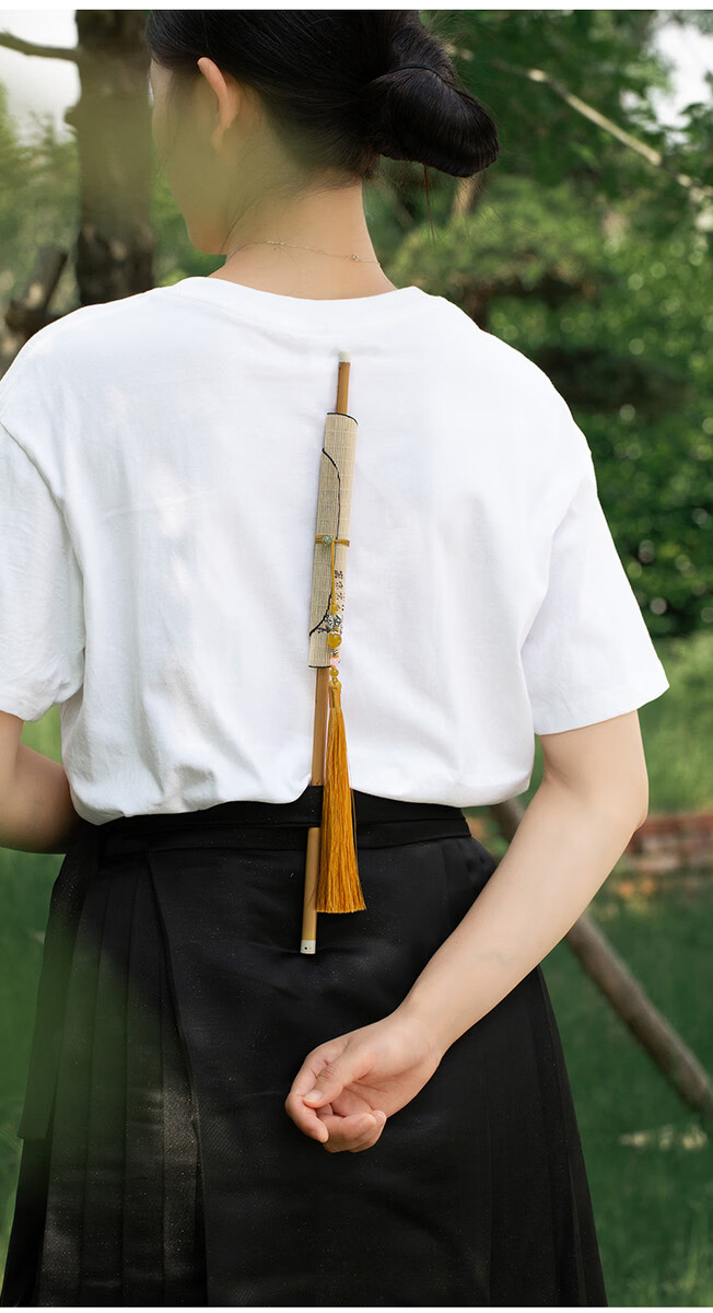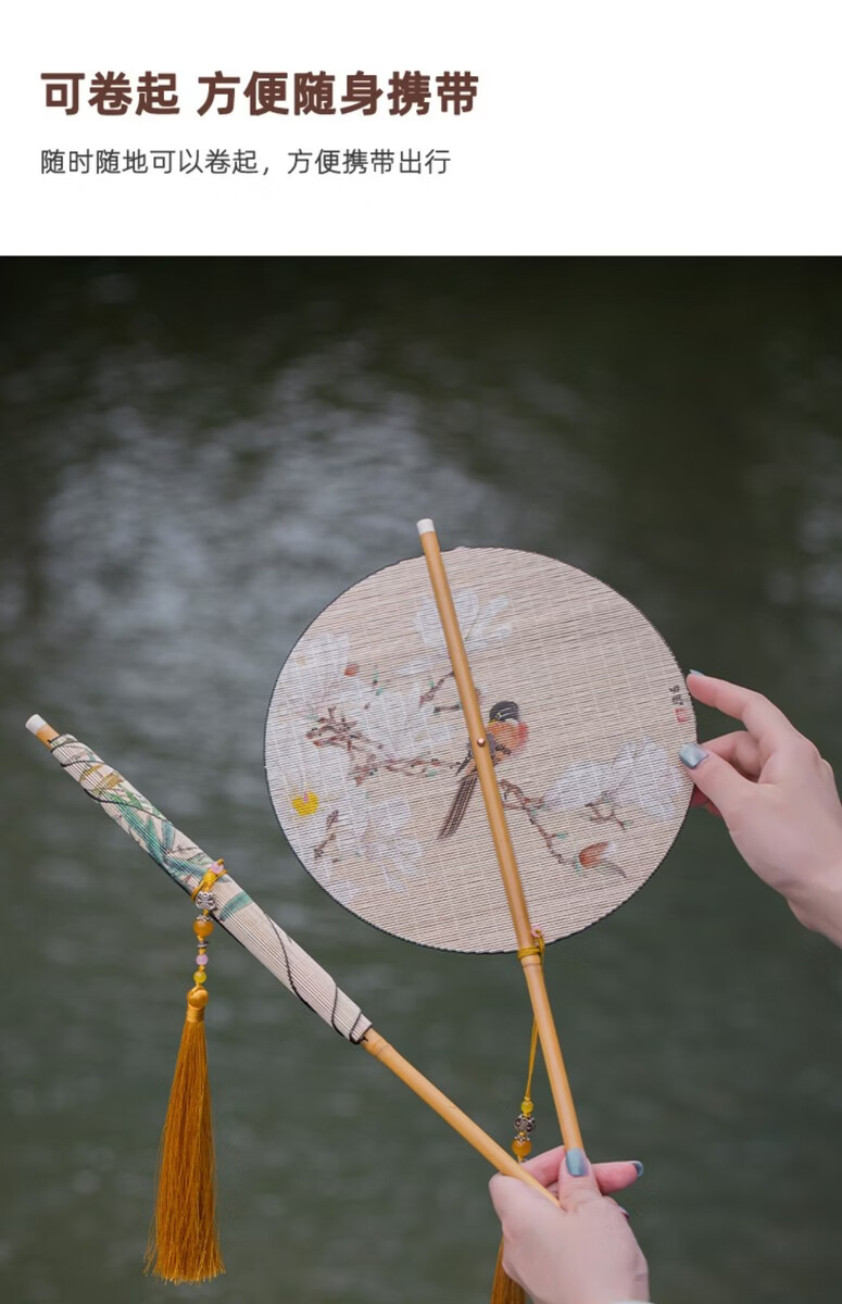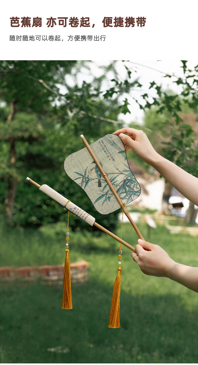 Fantasy ancient style folding bamboo intangible cultural heritage tassel waist fan, rollable banana fan, dance fan, jade bamboo folding fan, portable cattail fan, fan box plus 13 yuan, fan style remarks, intangible cultural heritage handmade fan