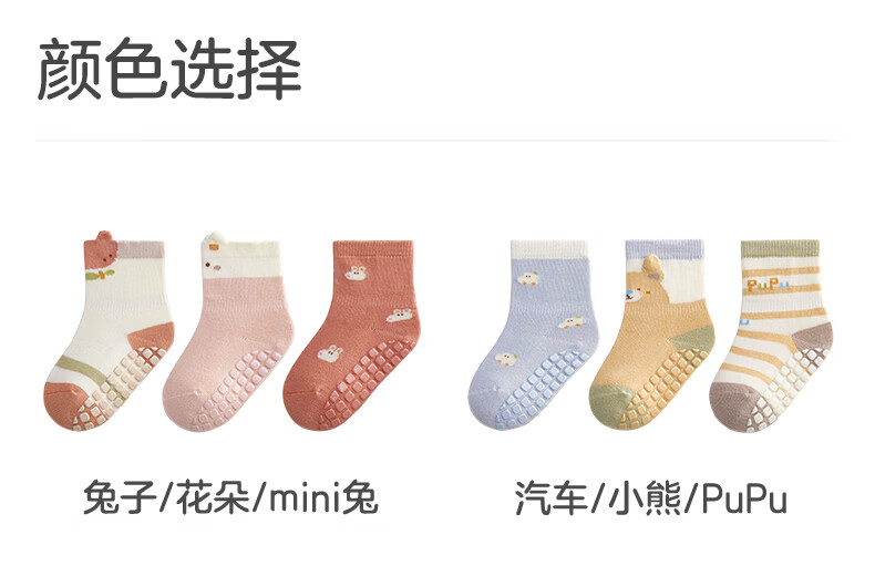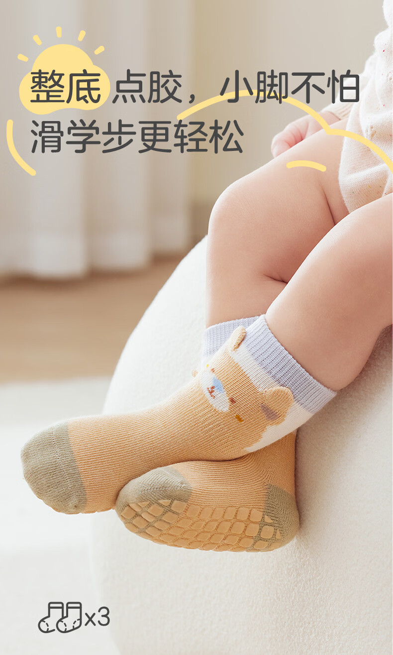 October Crystal Sunshine Baby Floor Socks Four Seasons Socks Children's Non-Slip Socks Indoor Baby Cooling Toddler Socks Rabbit/Flower/Mini Rabbit 3 Pairs Toddler Non-Slip 3-12 Months Suitable for Feet Length 10-12cm