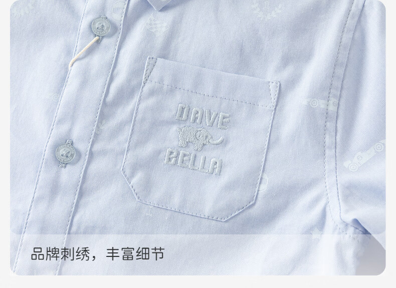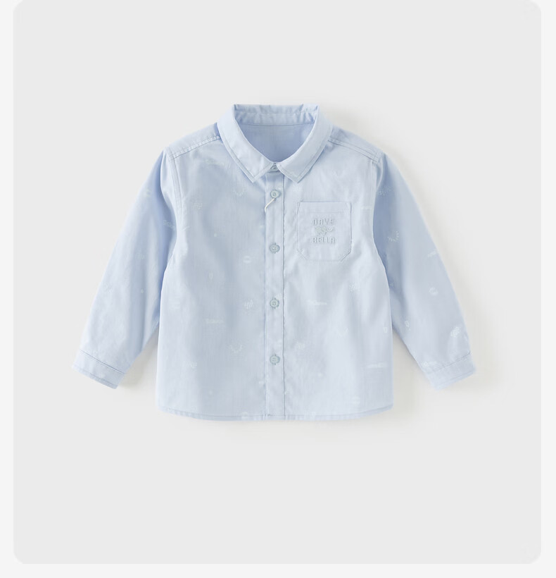 DAVE&BELLA 2026 Spring New Cotton Children's Shirts Western Style Boys Casual Long Sleeve Tops Baby Clothes Children's Shirts Light Blue Ready in Stock 110 cm (Recommended Height 100-110cm)