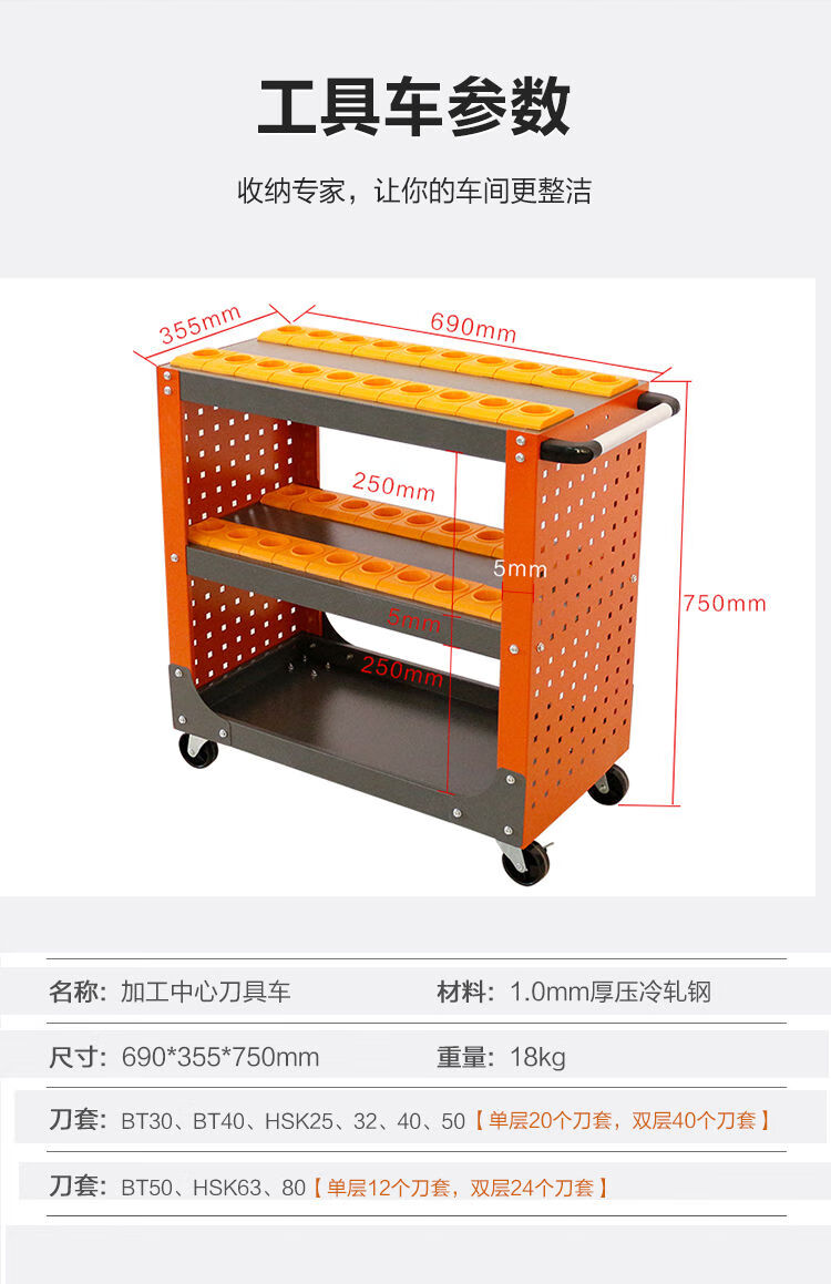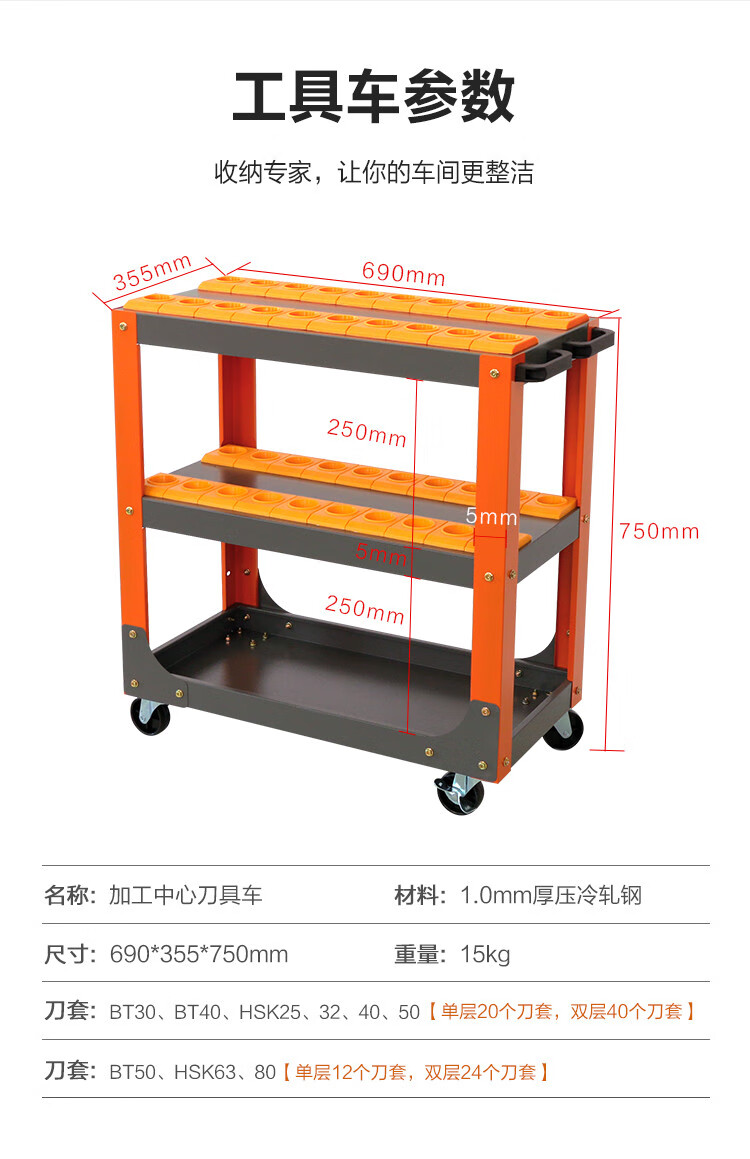 Sailoto CNC tool cart machining center C5C6 cart BT3040 handle cart HSK63 CNC rack management C5-0 single layer gray orange tool cart