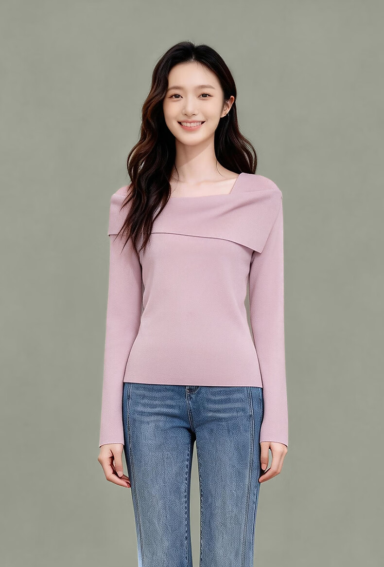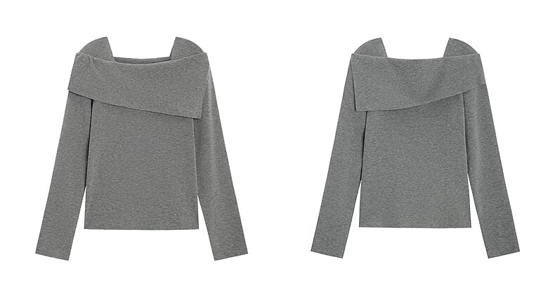 Fragment (dribs&drabs) wool sweater for women 2026 spring new style elegant simple slim fit niche fashion one-shoulder top gray L