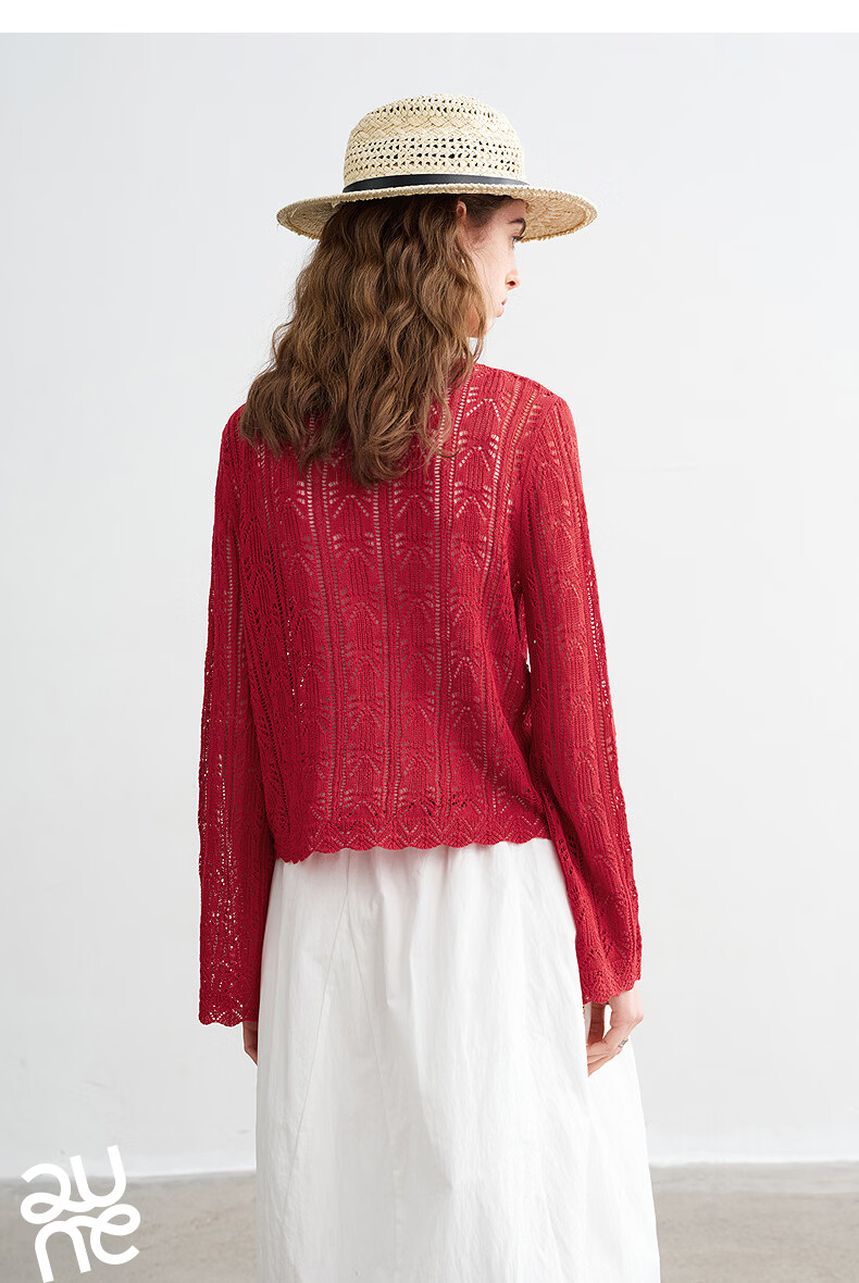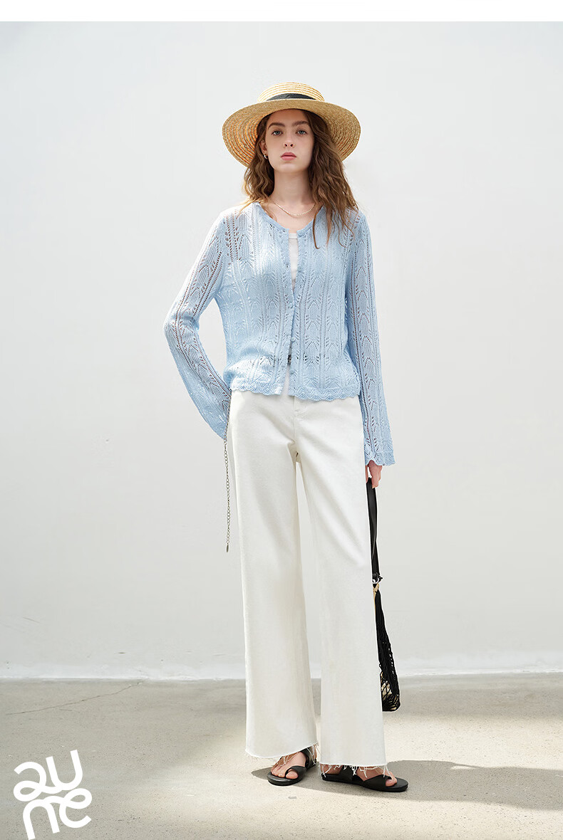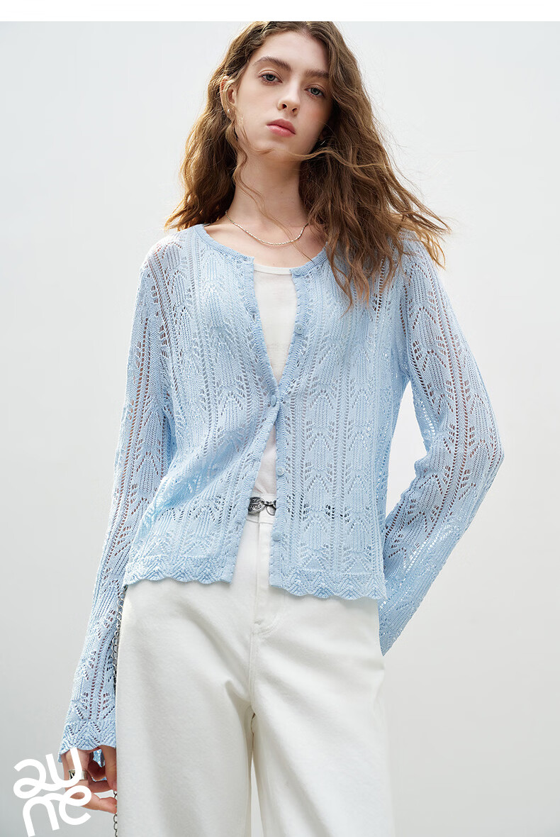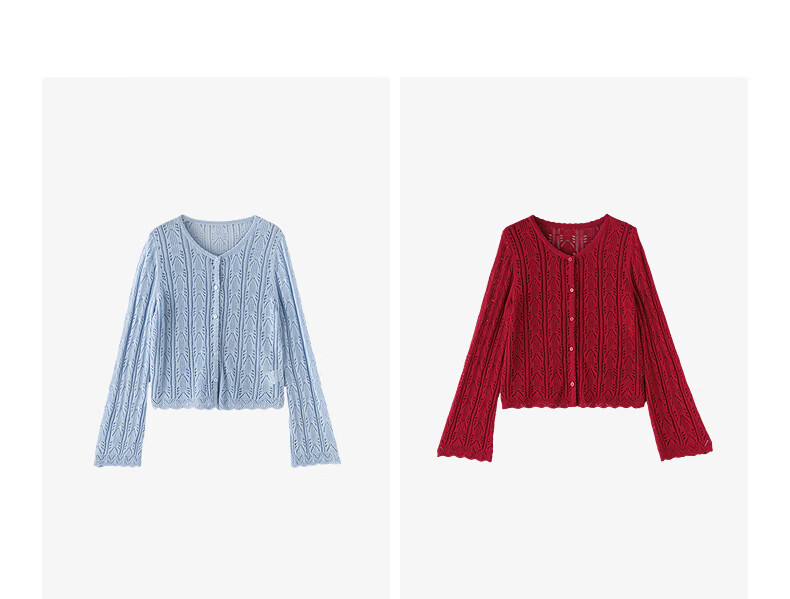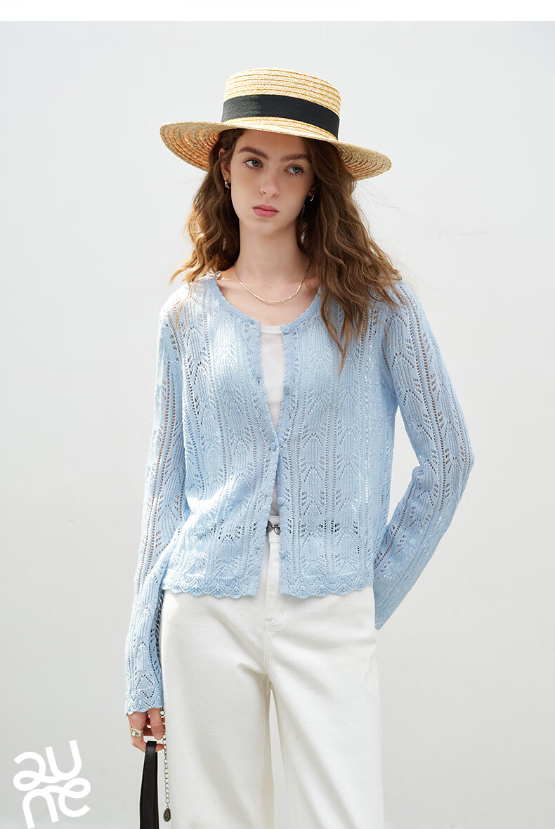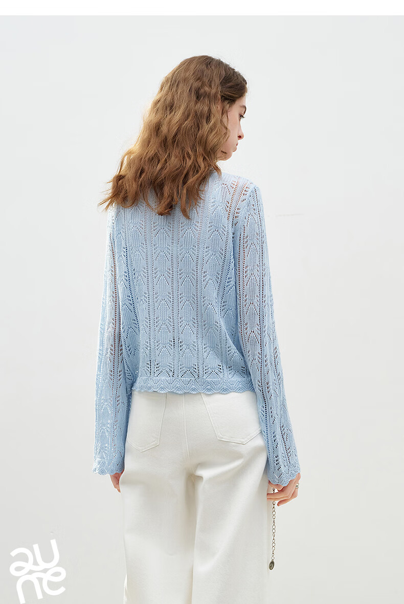 Chuyu Lyocell Linen Sweater Women's 2026 Spring New Hollow Retro Romantic Bell Sleeve Top Light Blue S