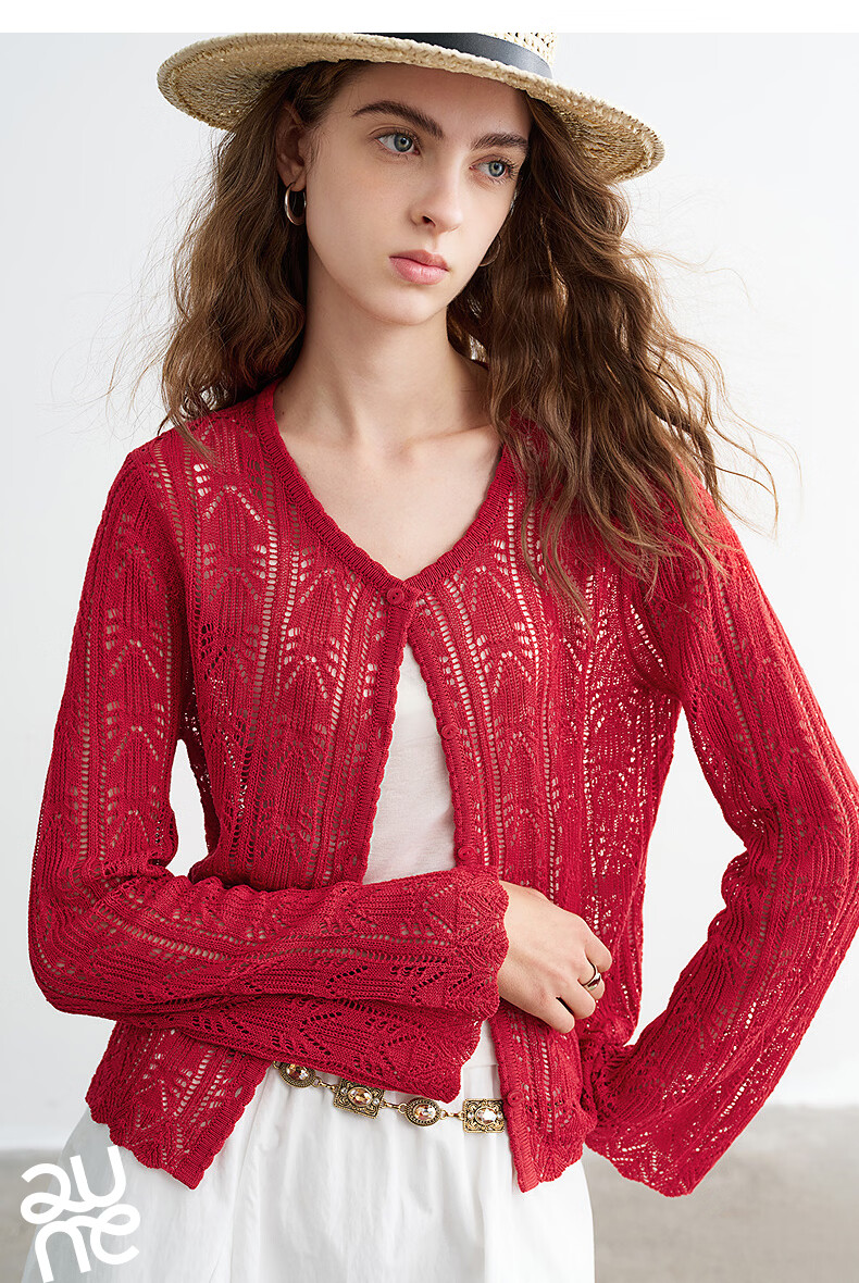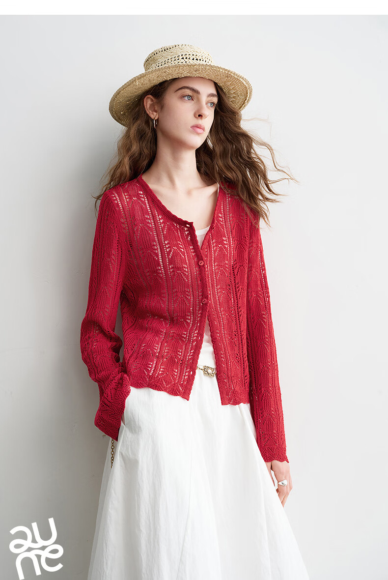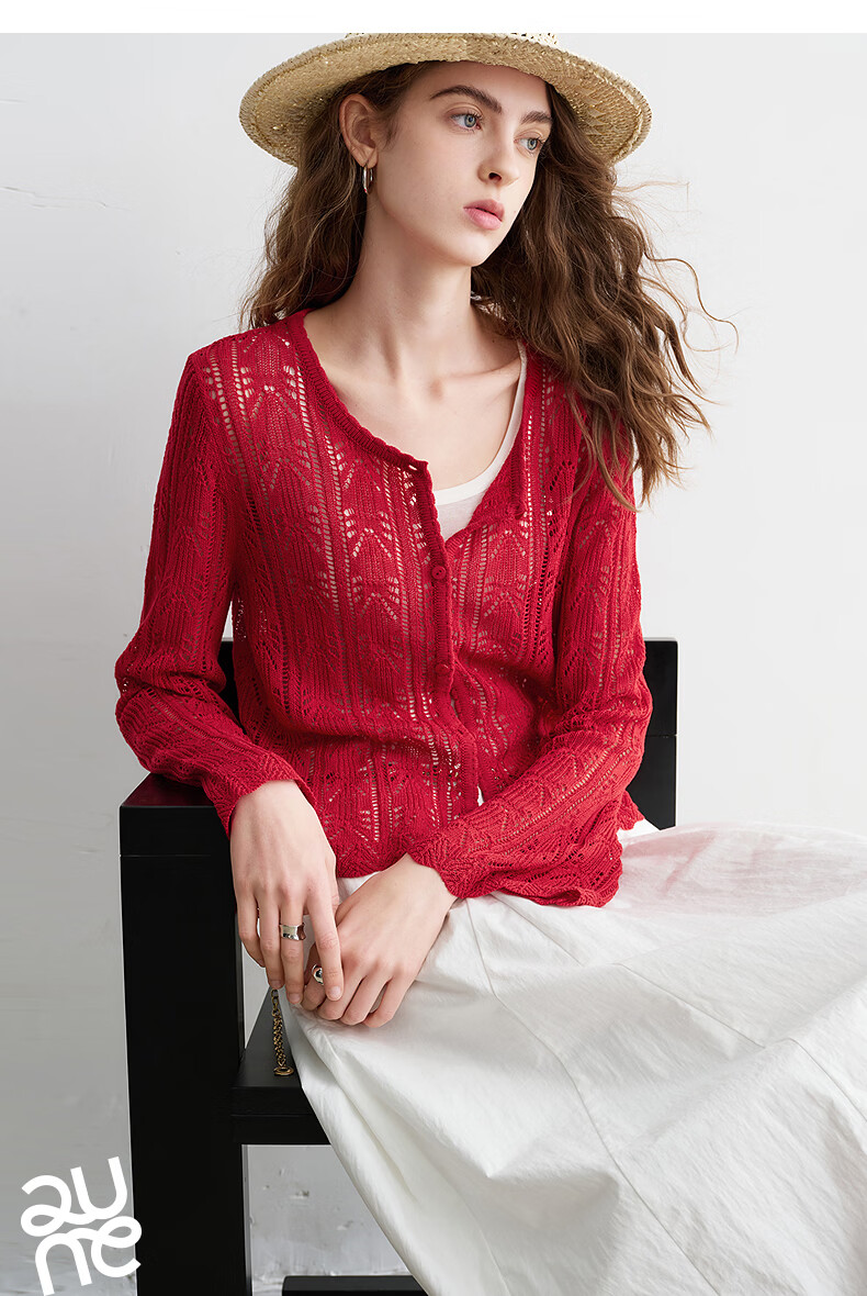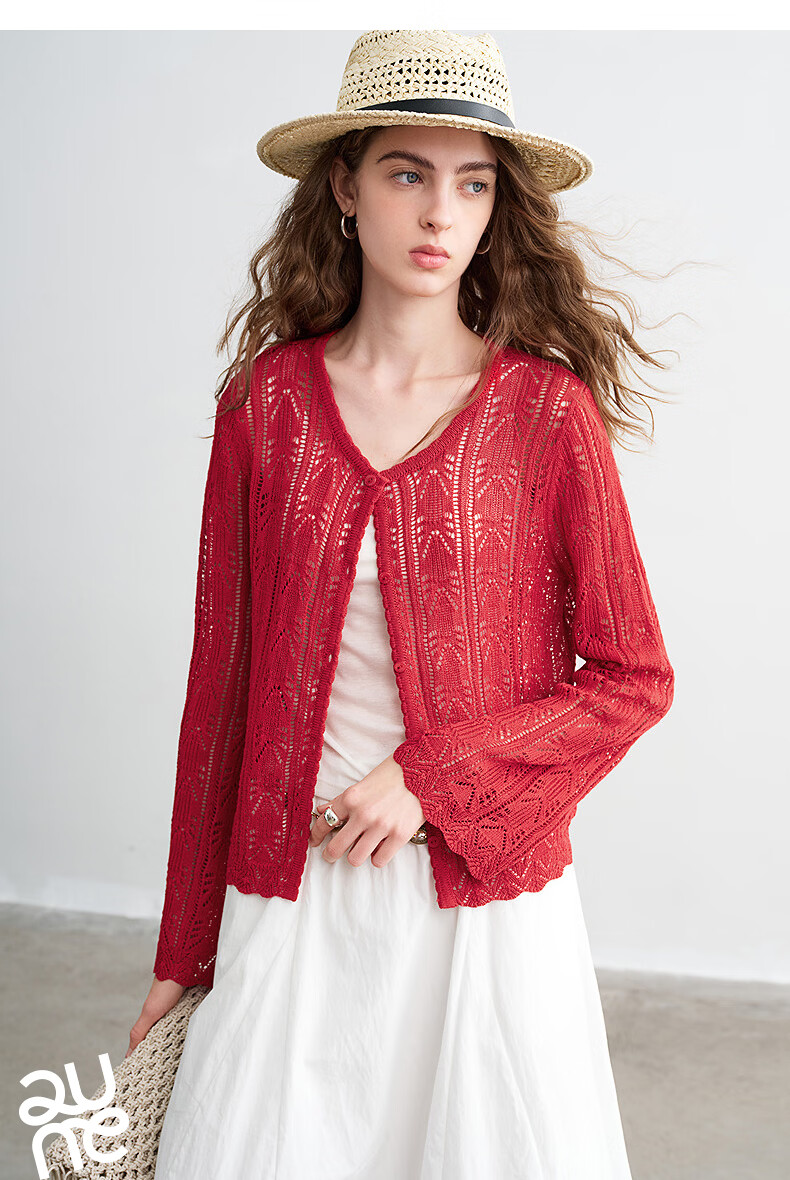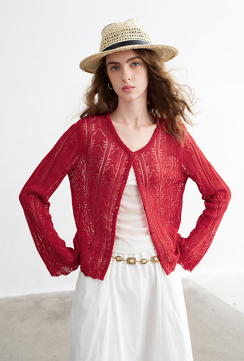 Chuyu Lyocell Linen Sweater Women's 2026 Spring New Hollow Retro Romantic Bell Sleeve Top Light Blue S