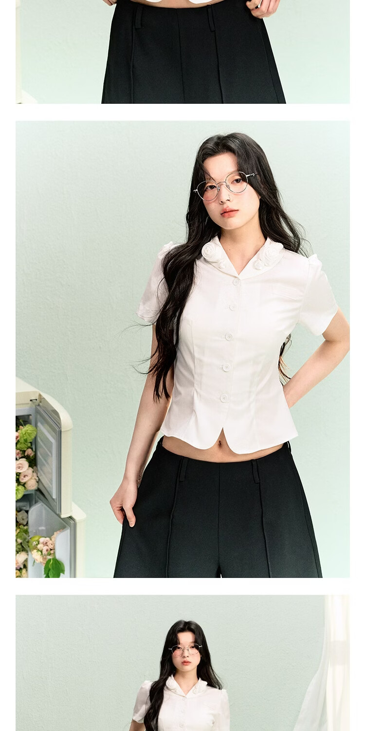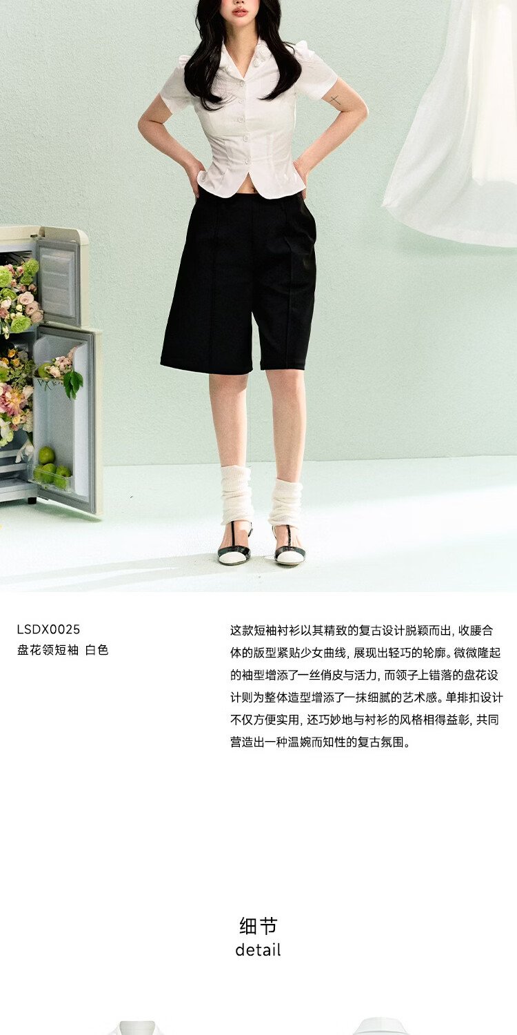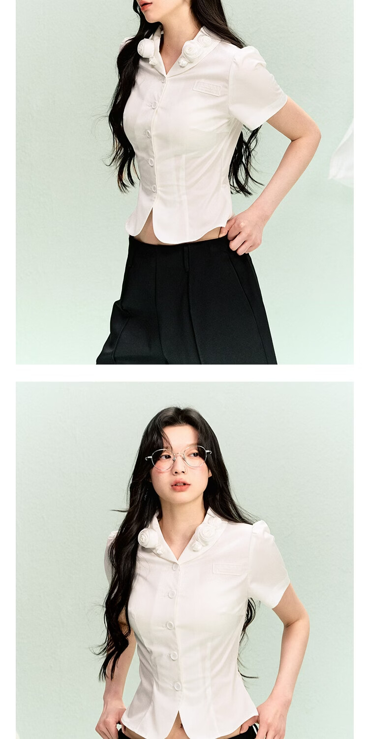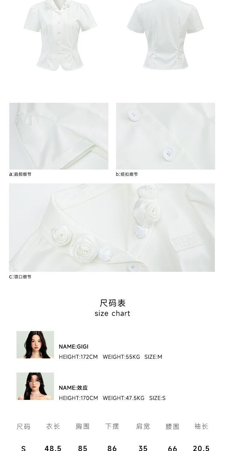 LA LUNE DU CIEL French retro floral collar short-sleeved shirt for women, summer temperament, waist-cinching, versatile top, white, in stock S