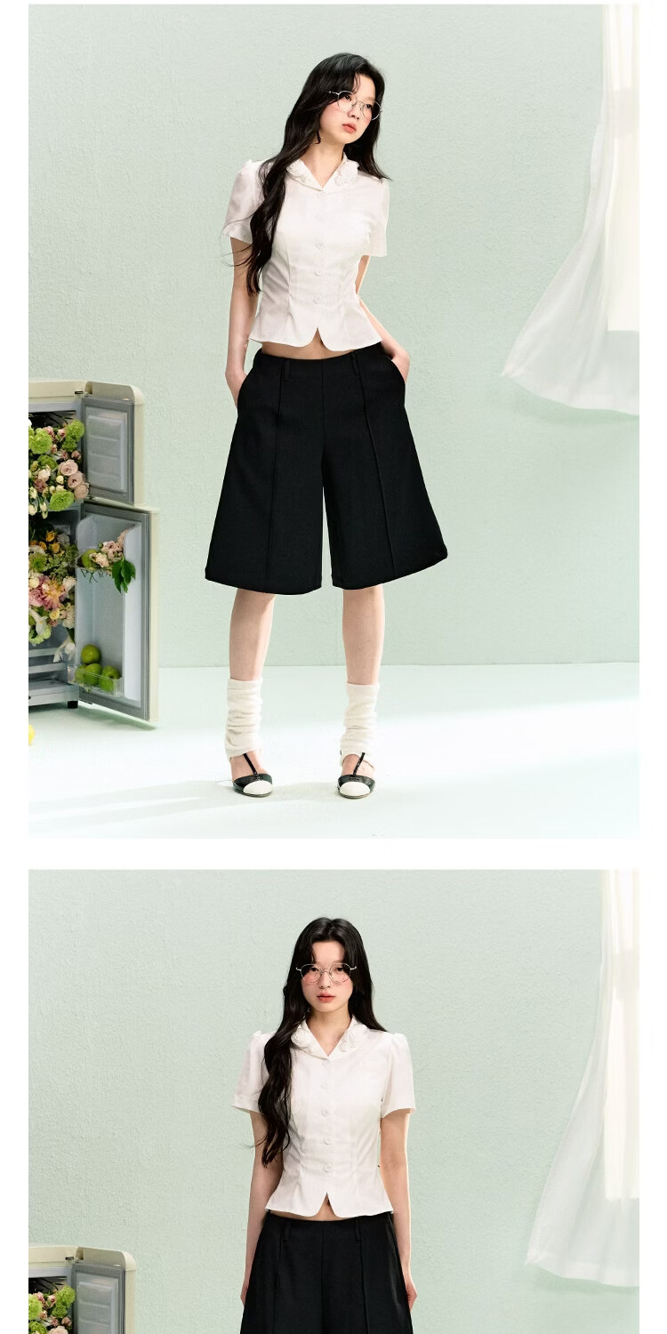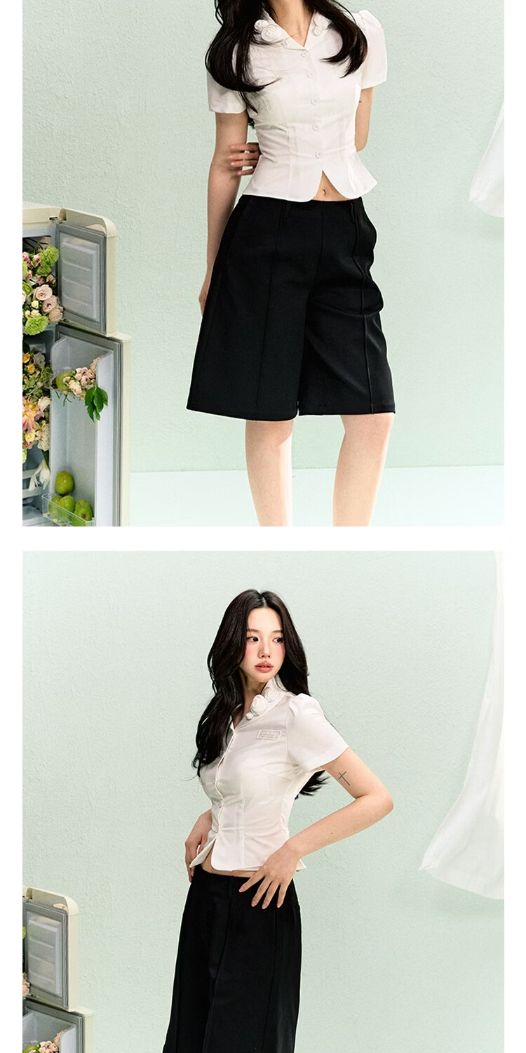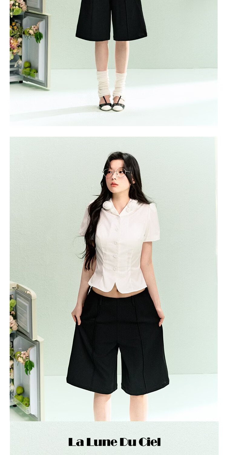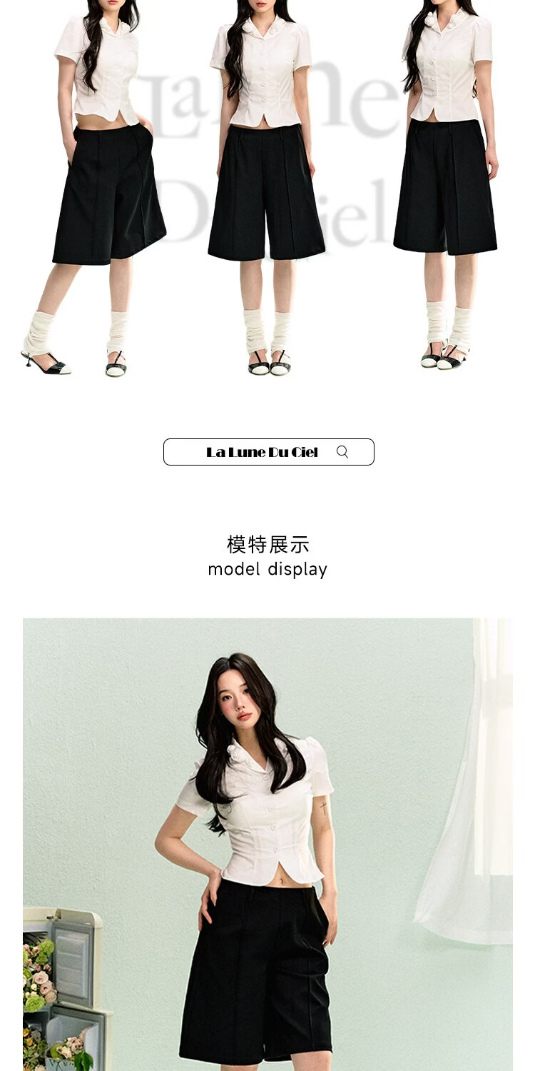 LA LUNE DU CIEL French retro floral collar short-sleeved shirt for women, summer temperament, waist-cinching, versatile top, white, in stock S