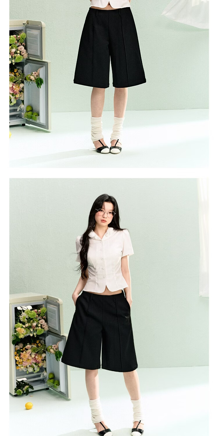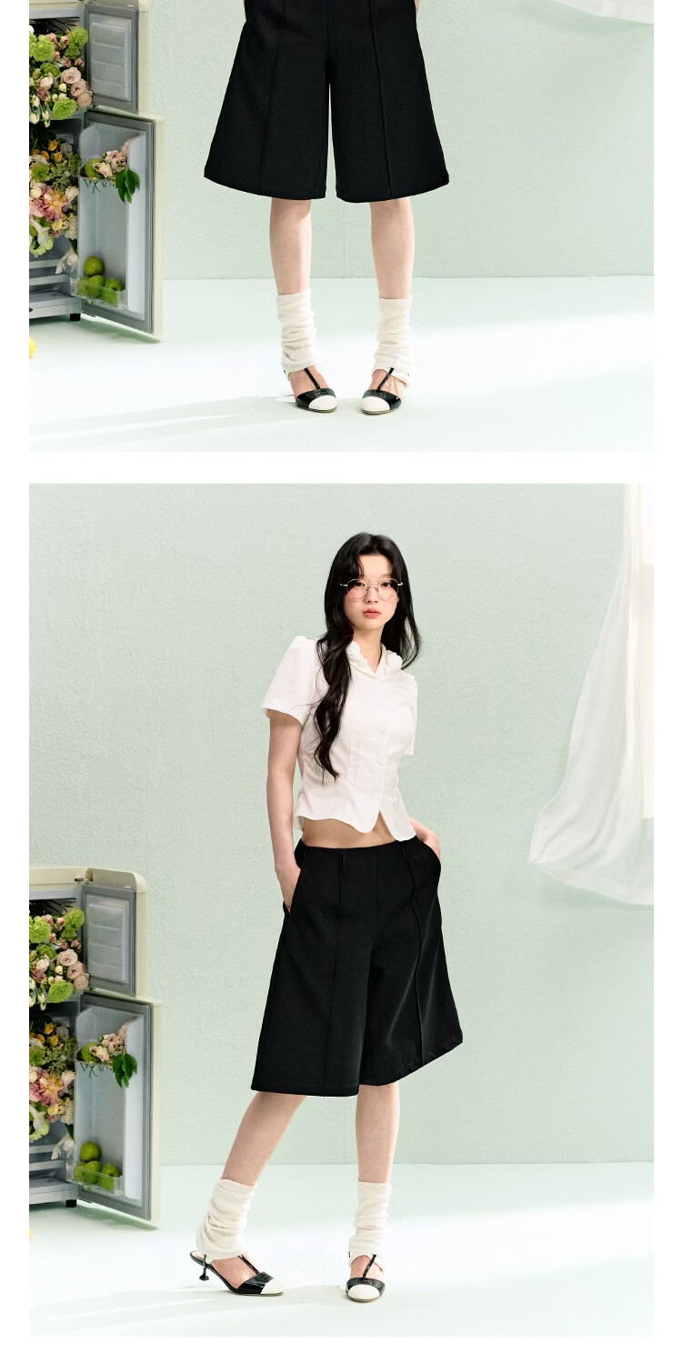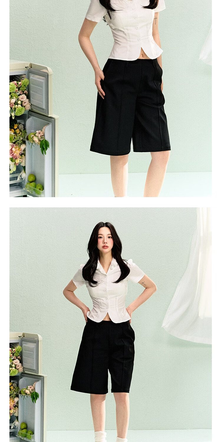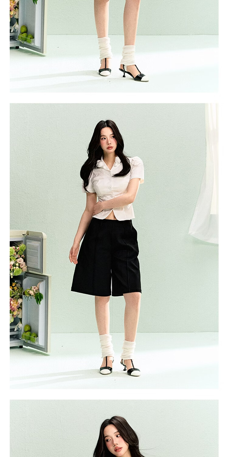LA LUNE DU CIEL French retro floral collar short-sleeved shirt for women, summer temperament, waist-cinching, versatile top, white, in stock S