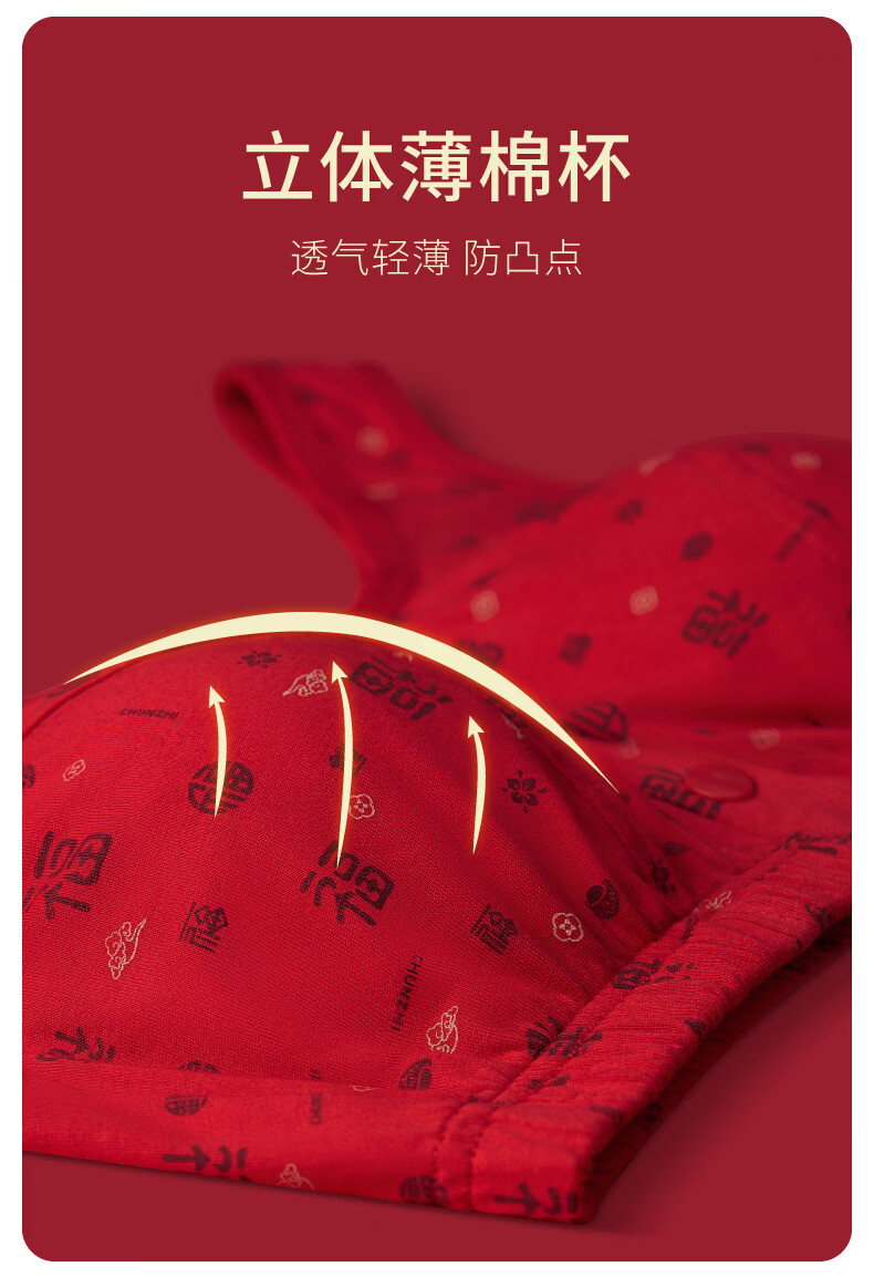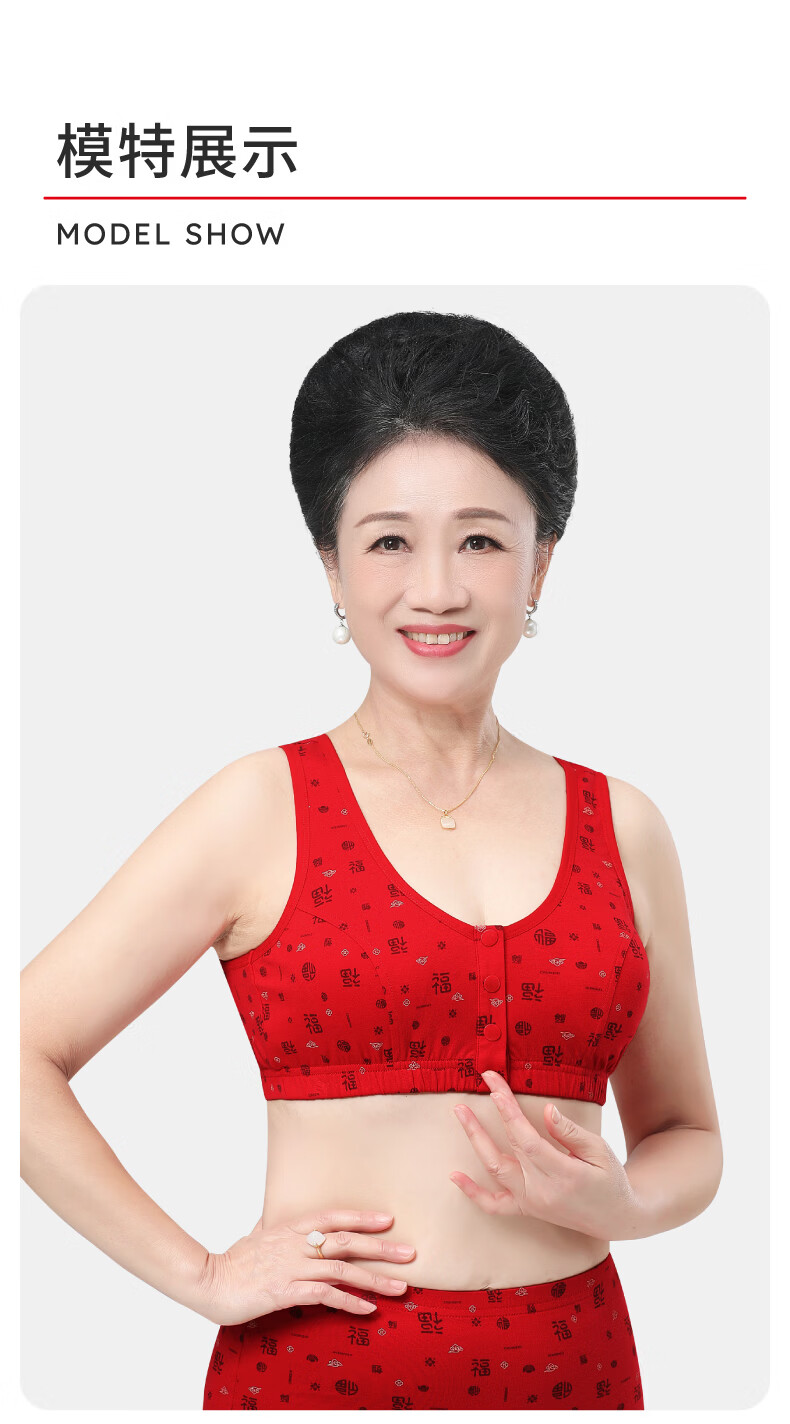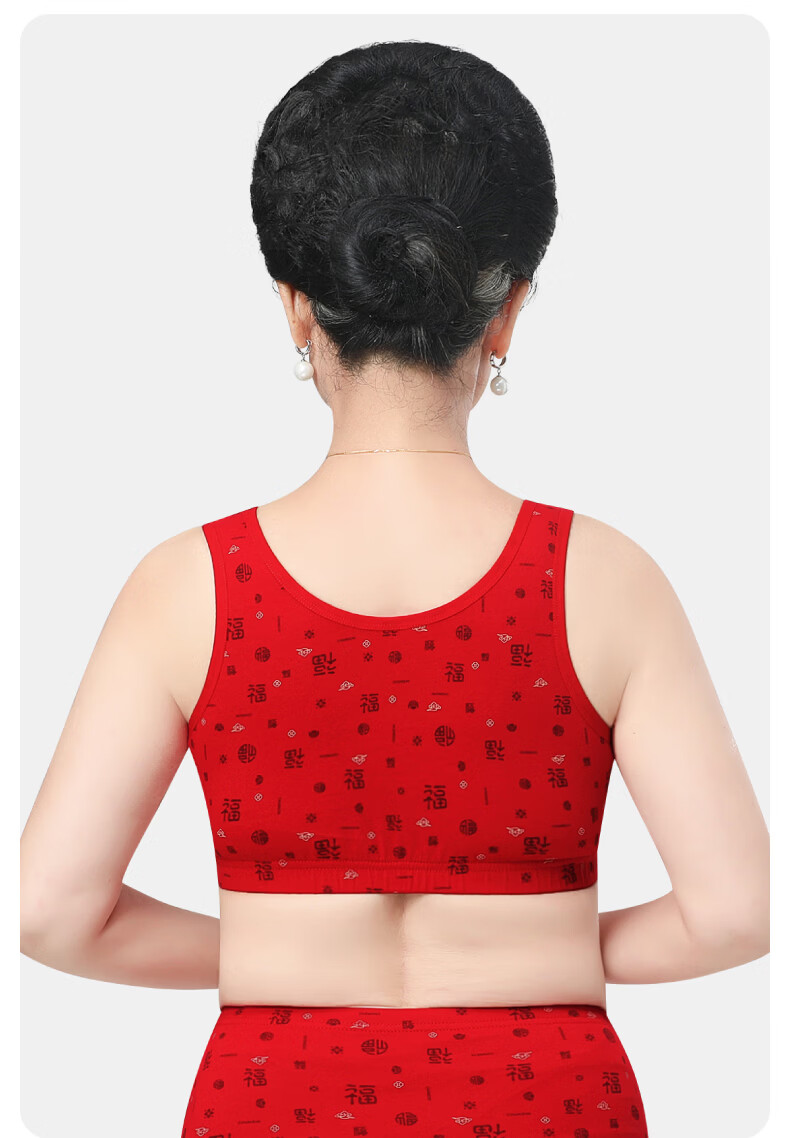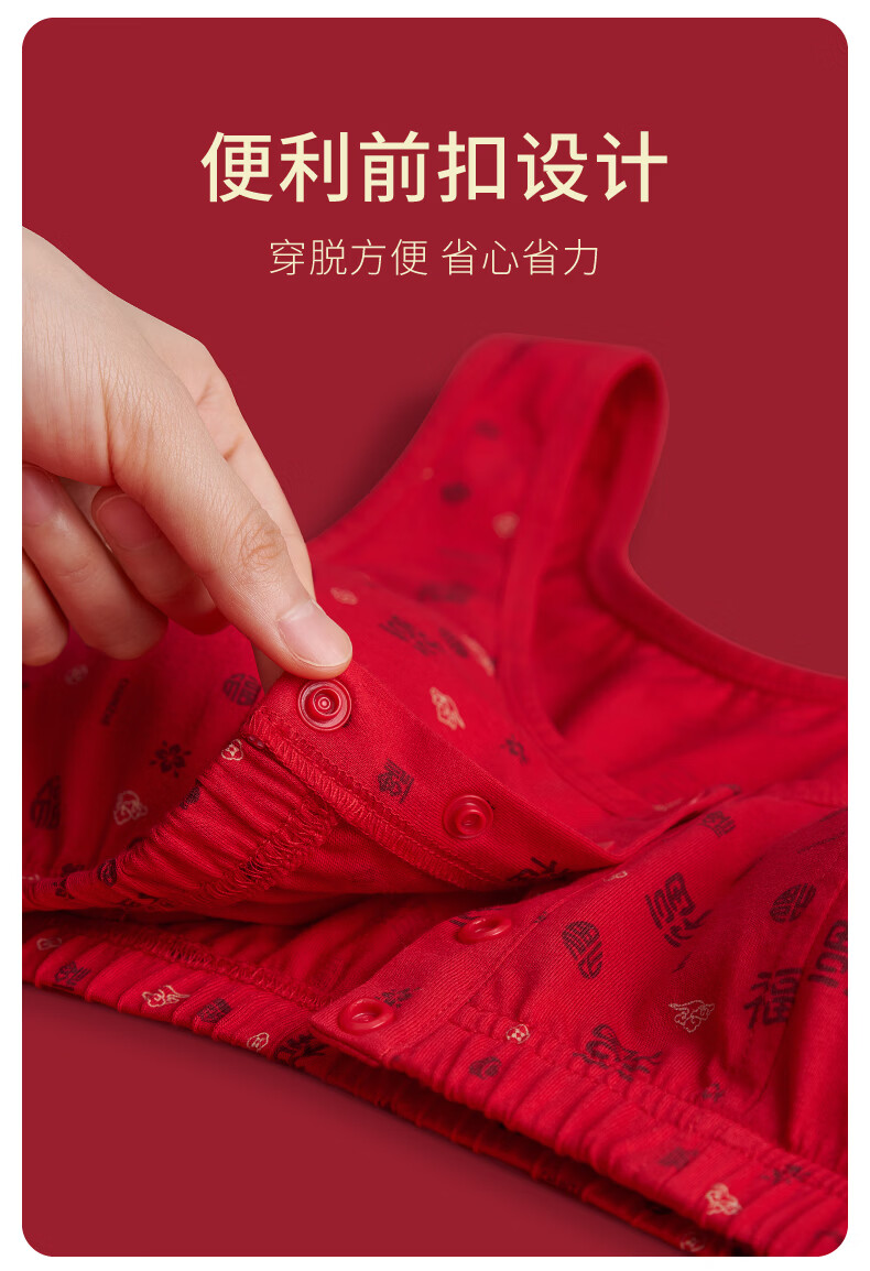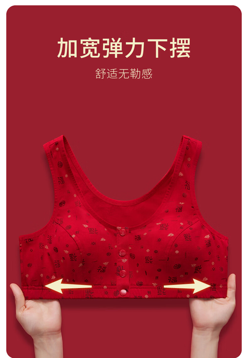 Chunwei women's front button bra set pure cotton zodiac year of the horse with big red blessing characters breathable bra for mom, grandma and the elderly Yunfu bra New Year's gift bag mid-calf socks set 2XL