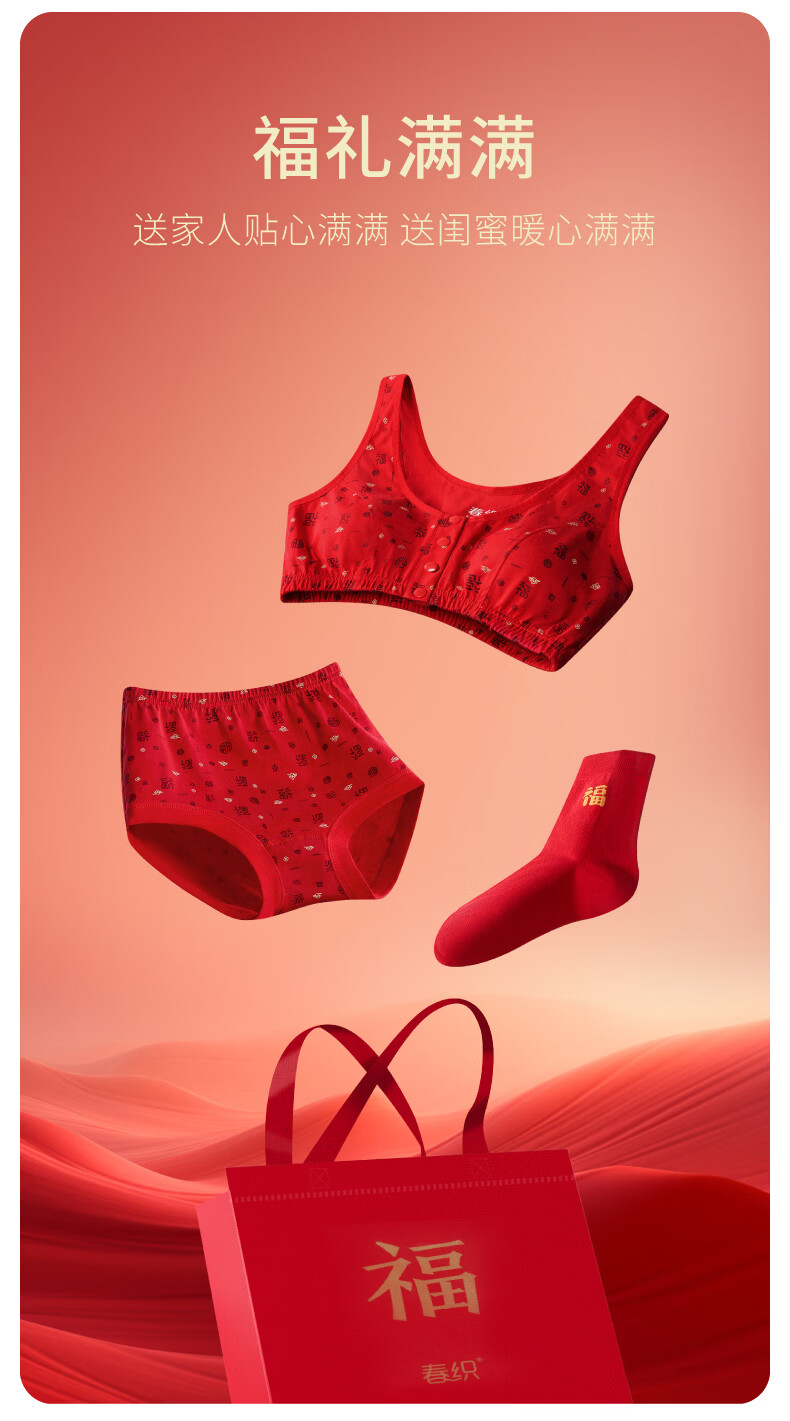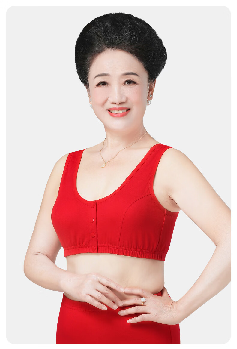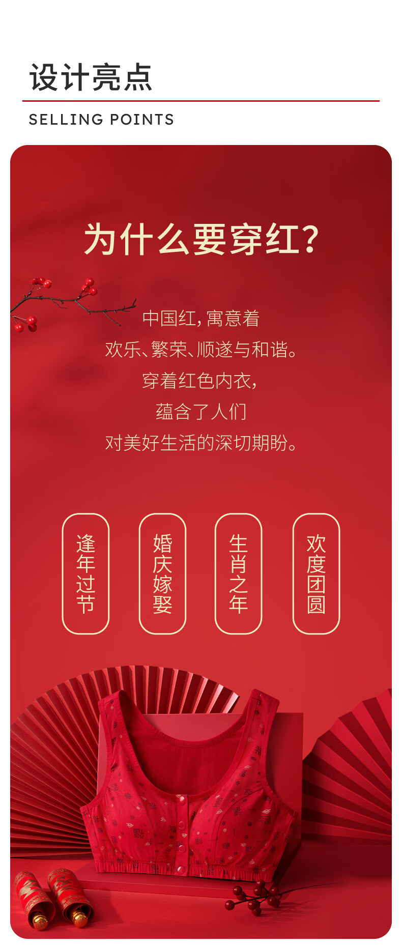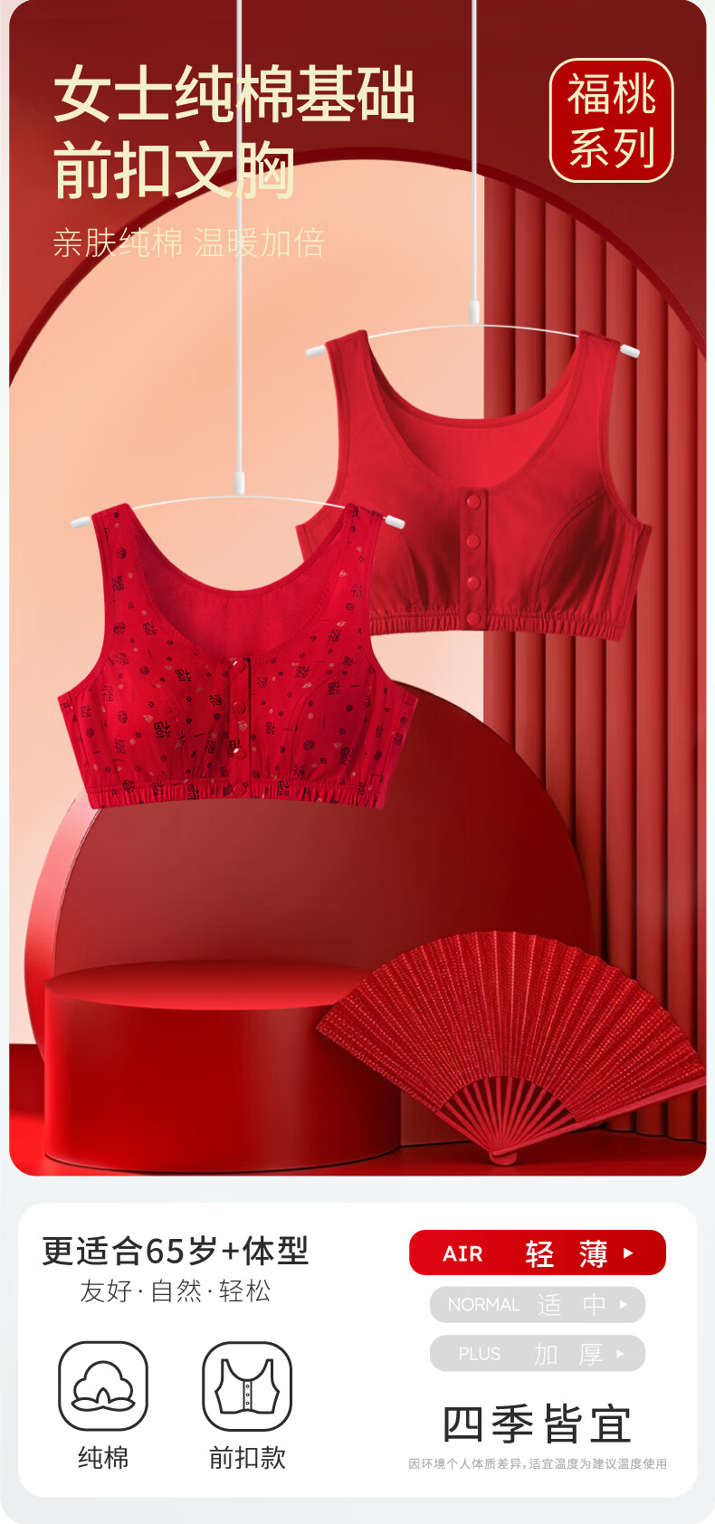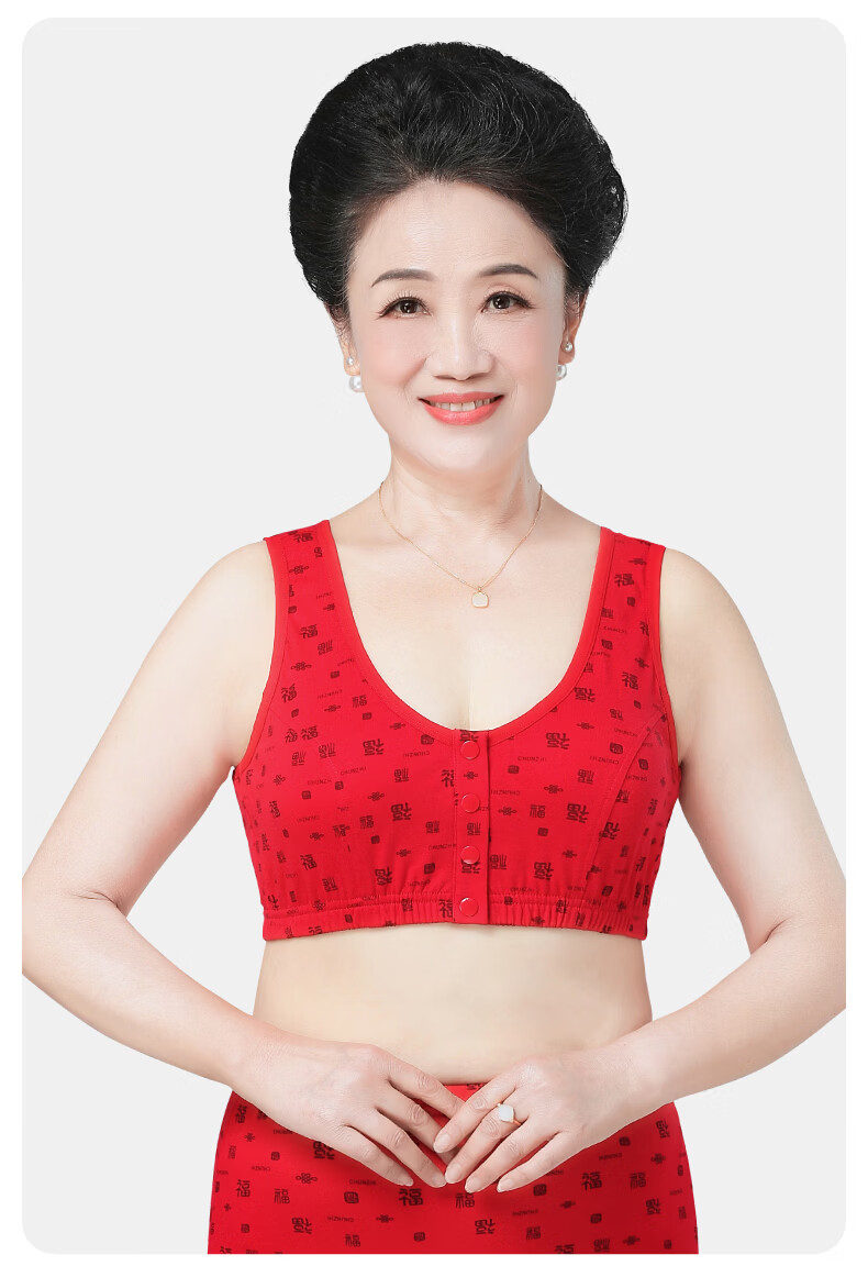 Chunwei women's front button bra set pure cotton zodiac year of the horse with big red blessing characters breathable bra for mom, grandma and the elderly Yunfu bra New Year's gift bag mid-calf socks set 2XL