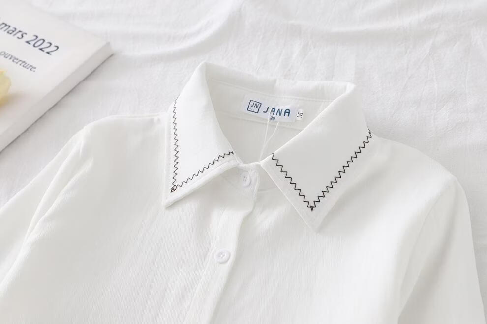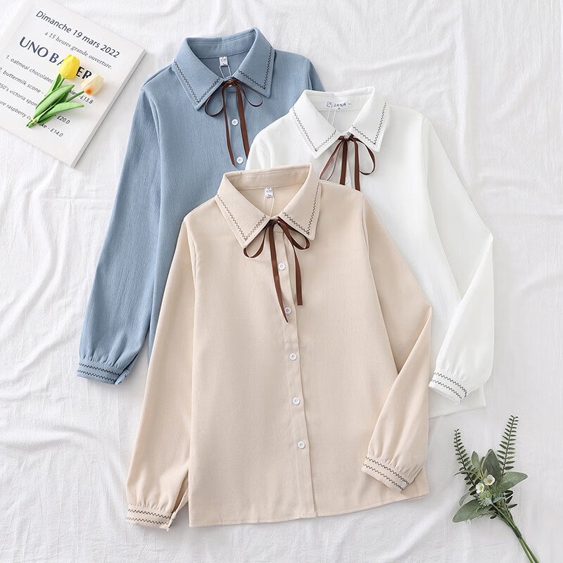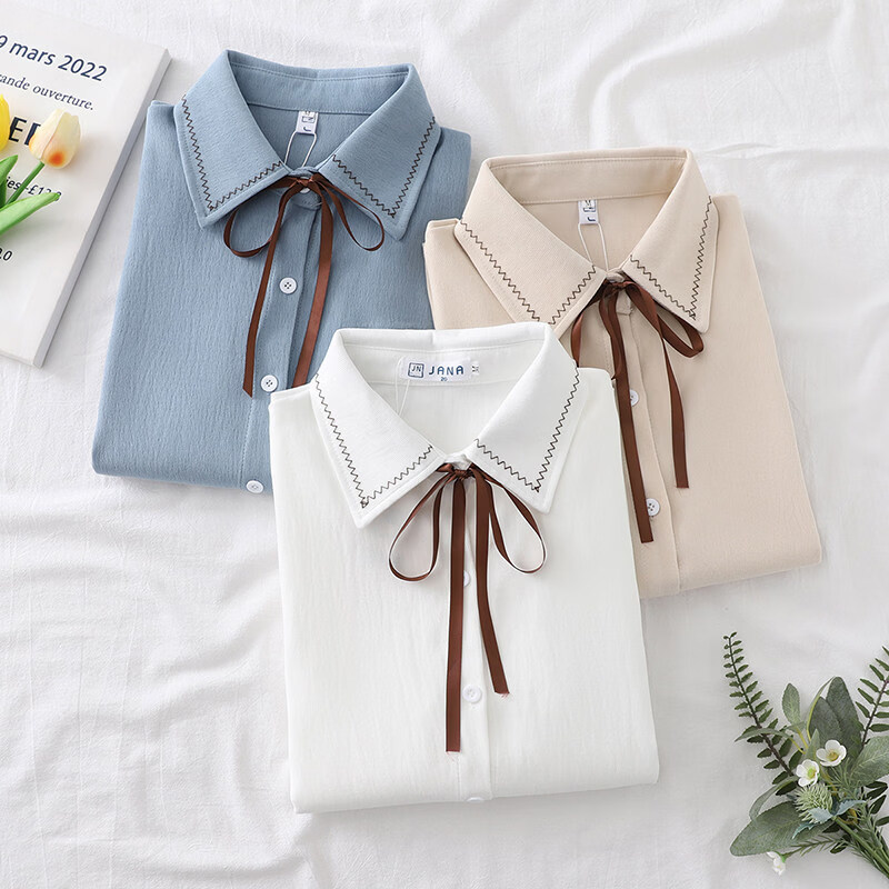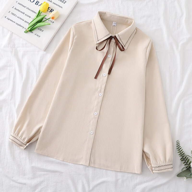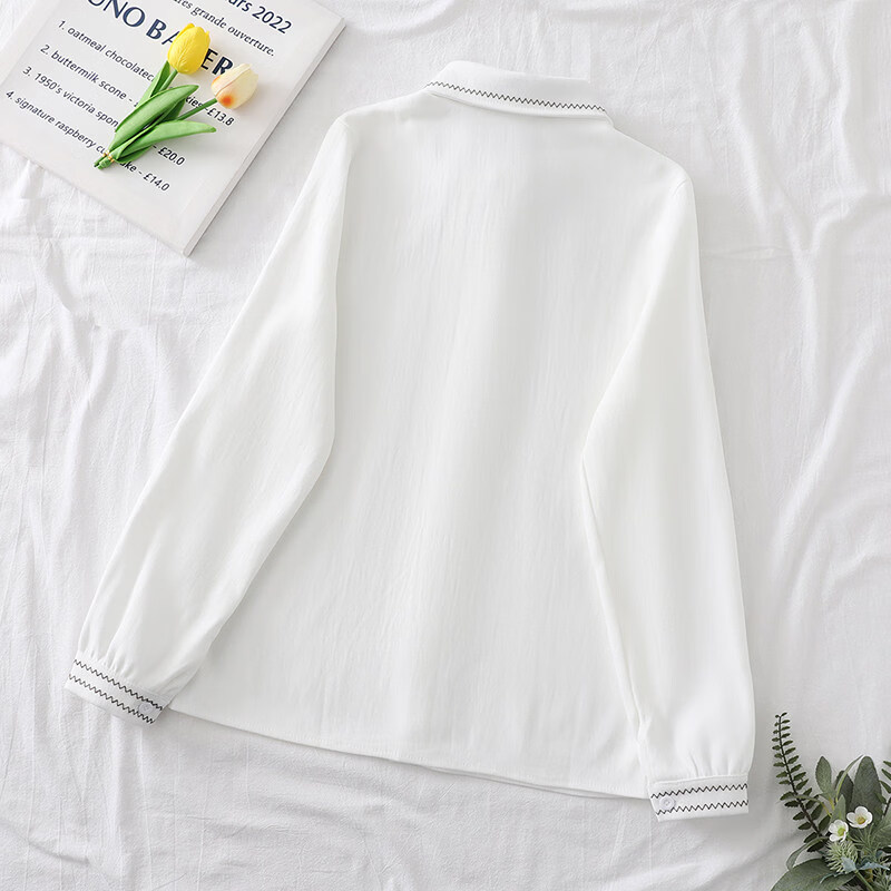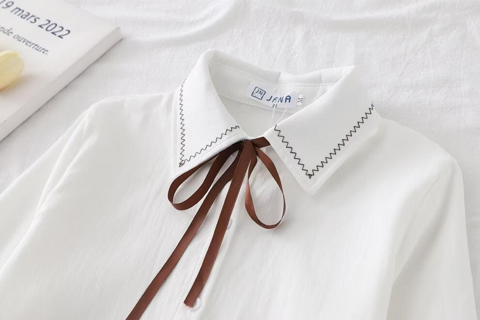 Woodpecker autumn and winter new style plus velvet, thickened and warm, commuting basic shirt for women to wear inside, niche long-sleeved top, trendy, white + brown laces, regular version, S collection, priority delivery