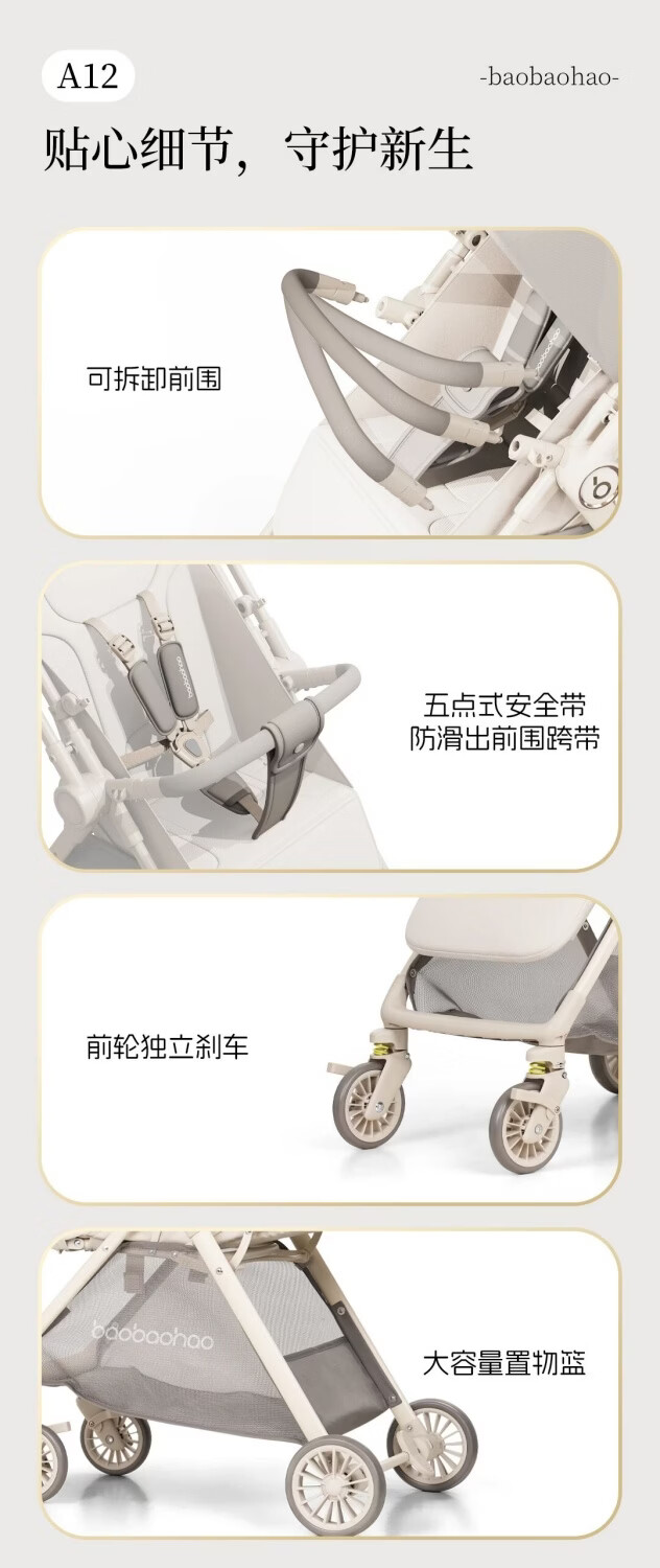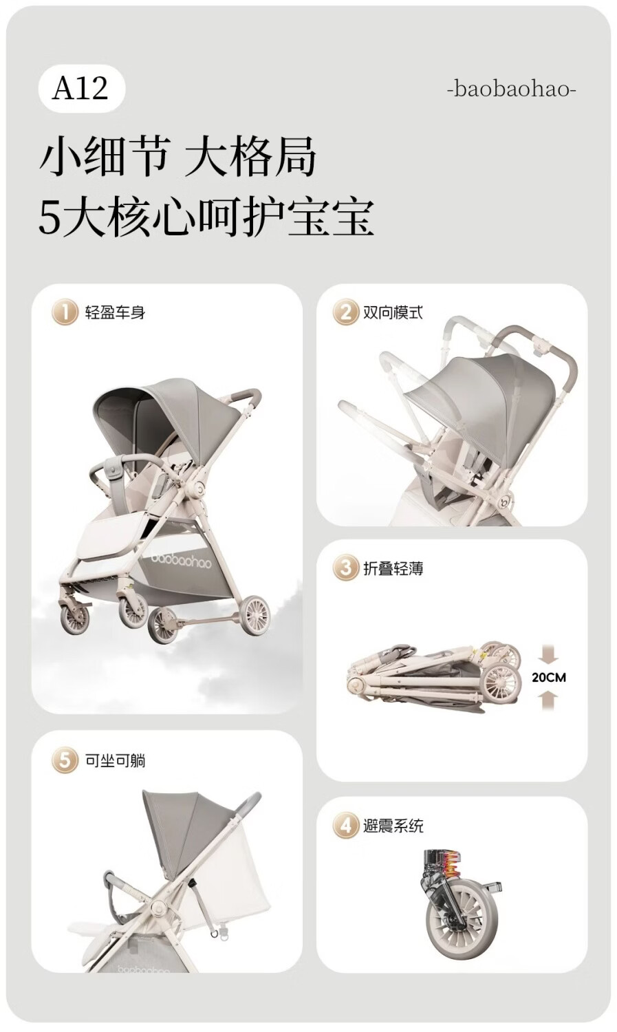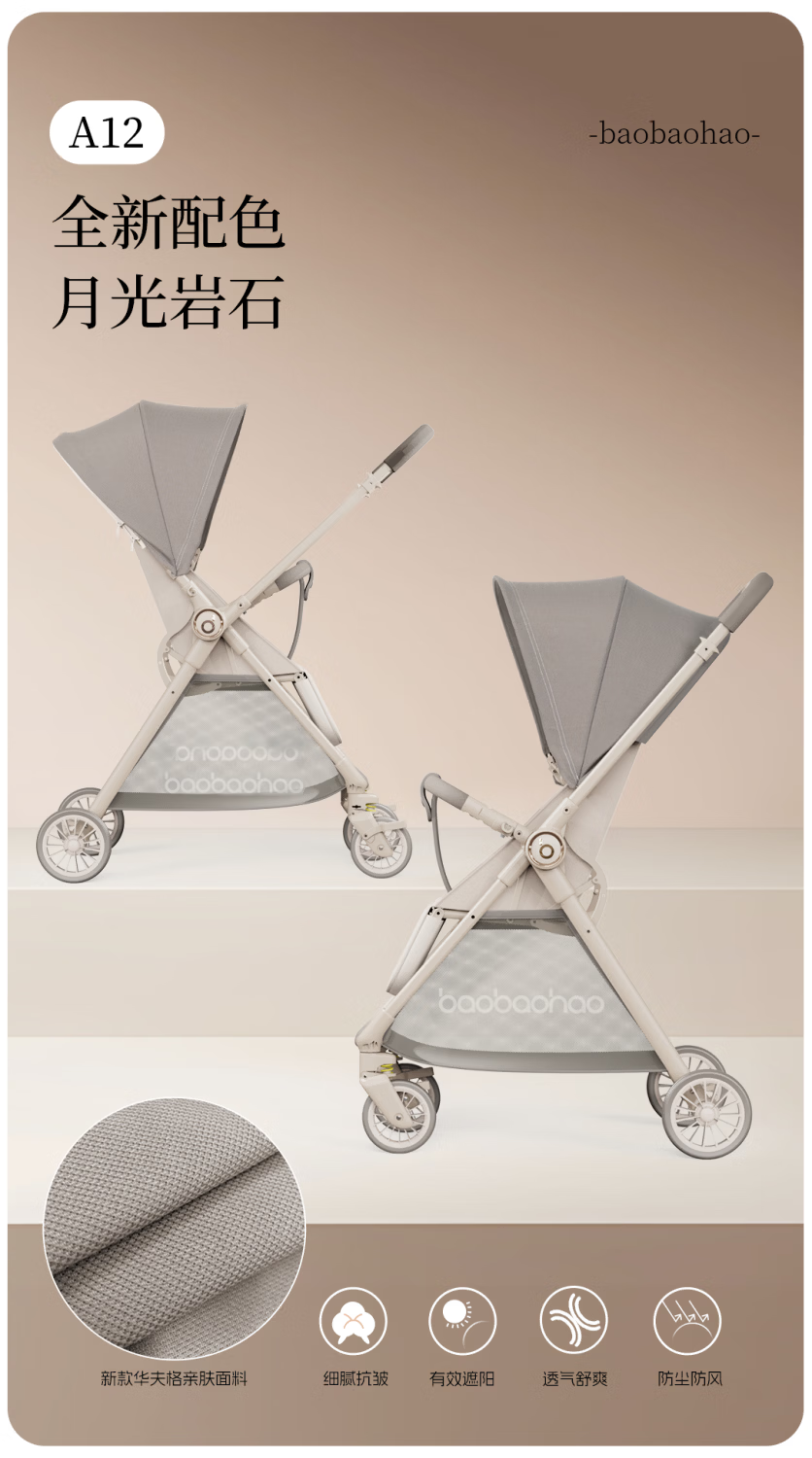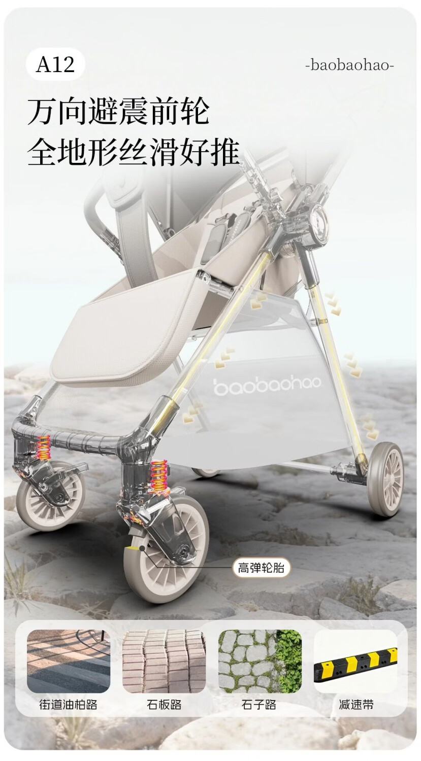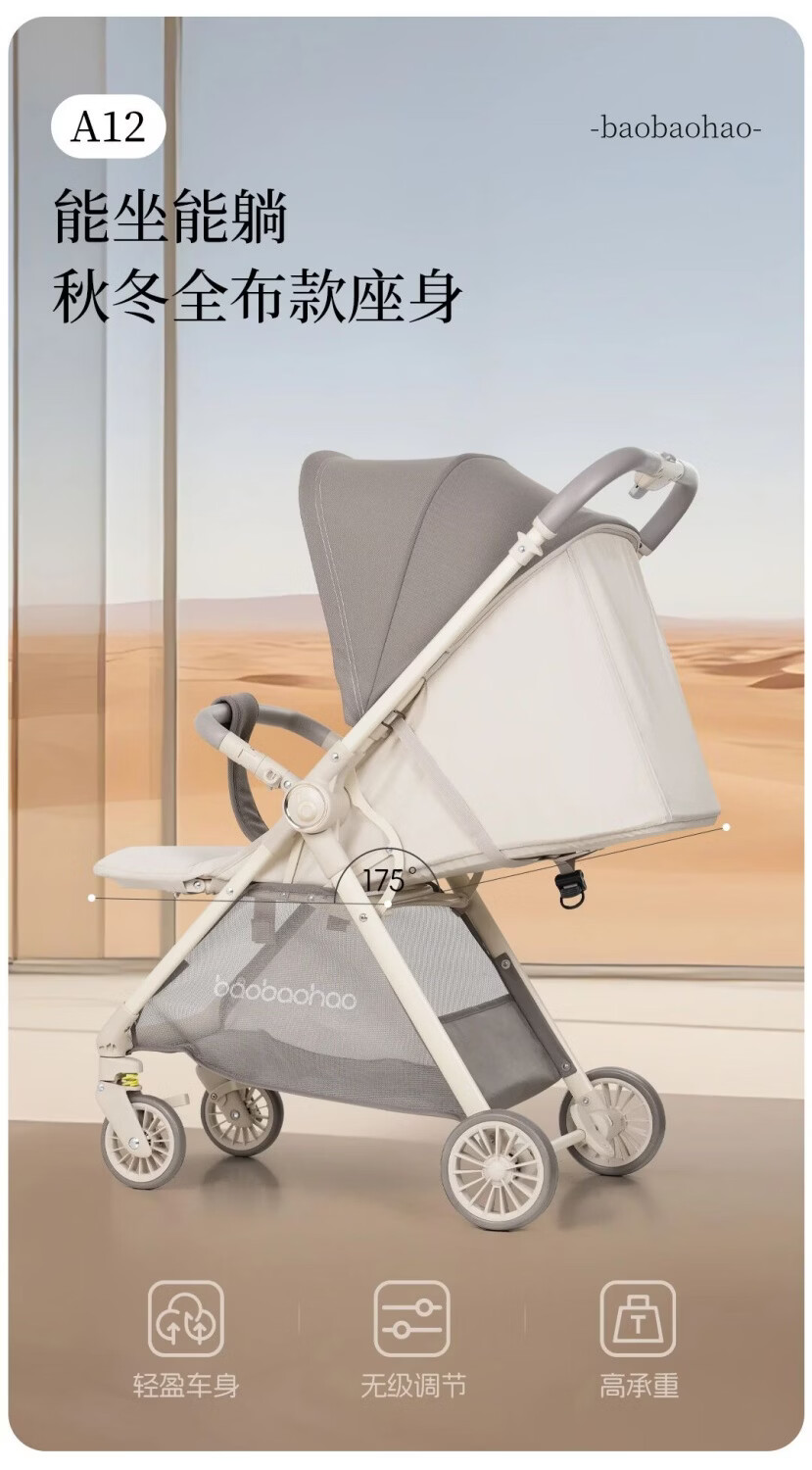 Baby Hao A12 stroller for 0-3 years old, foldable, sitable, reclineable, shock-absorbing, lightweight pocket stroller, two-way stroller A12 Moonlight Rock | two-way promotion + luxury gift pack