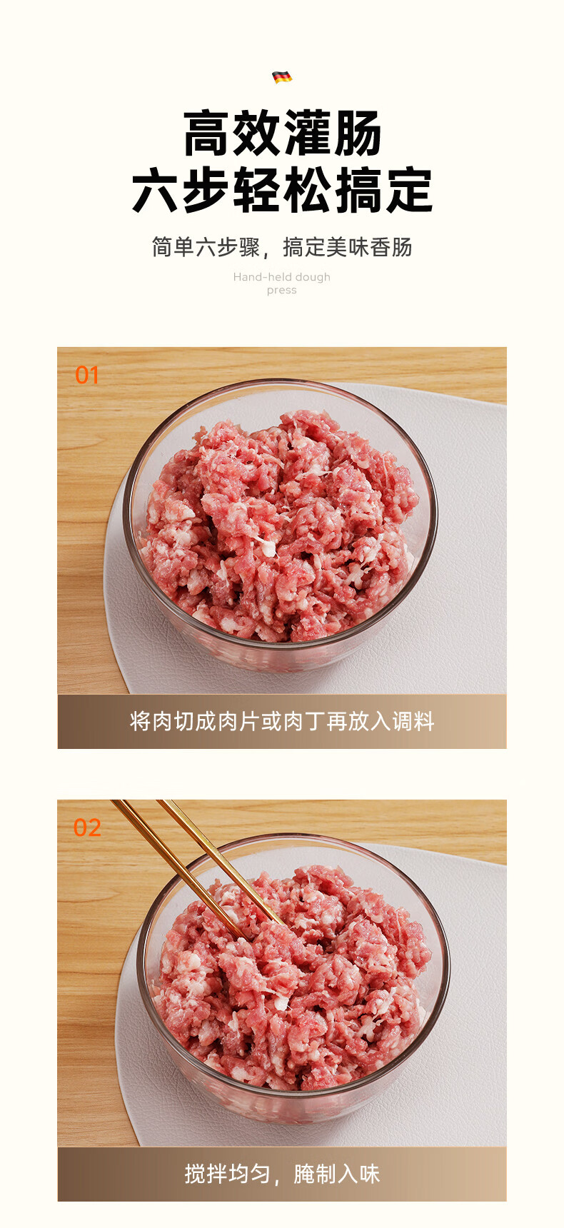 Jingga Sausage Enema Machine Household Manual Sausage Machine Sausage Machine Jar Meat Sausage Casing Sausage Stuffing Tool Sausage Thickened Hand Push Model + Cotton Thread + Gloves 100 only to get 4 enema tubes