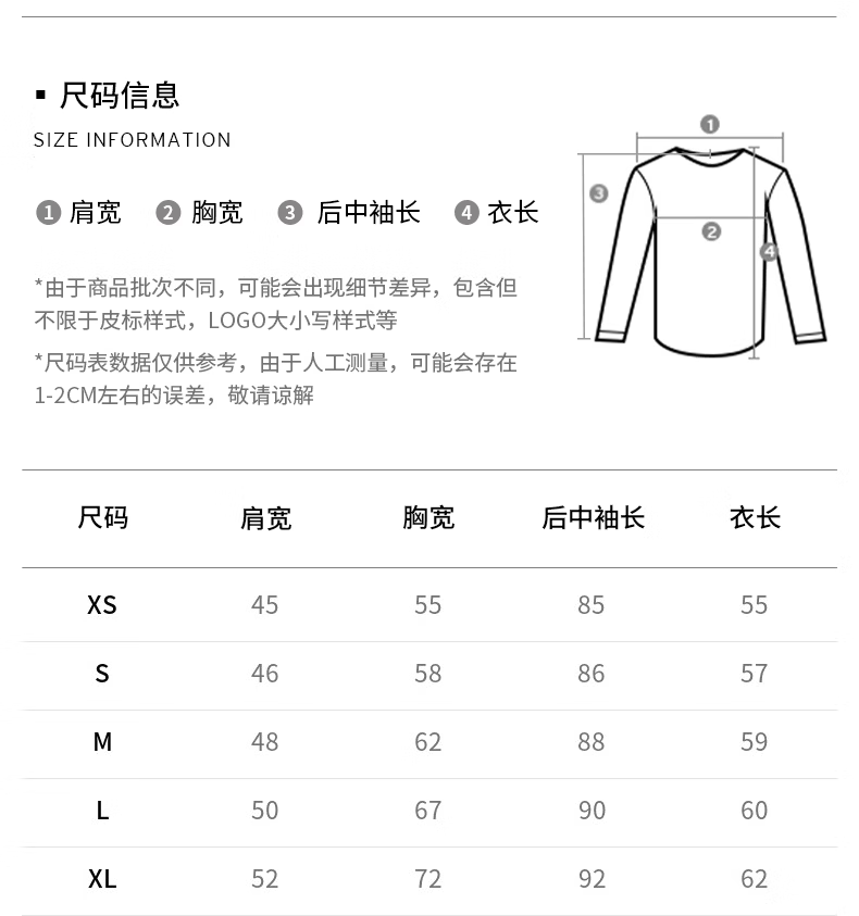 Size (cm) 42 44 46 48 50